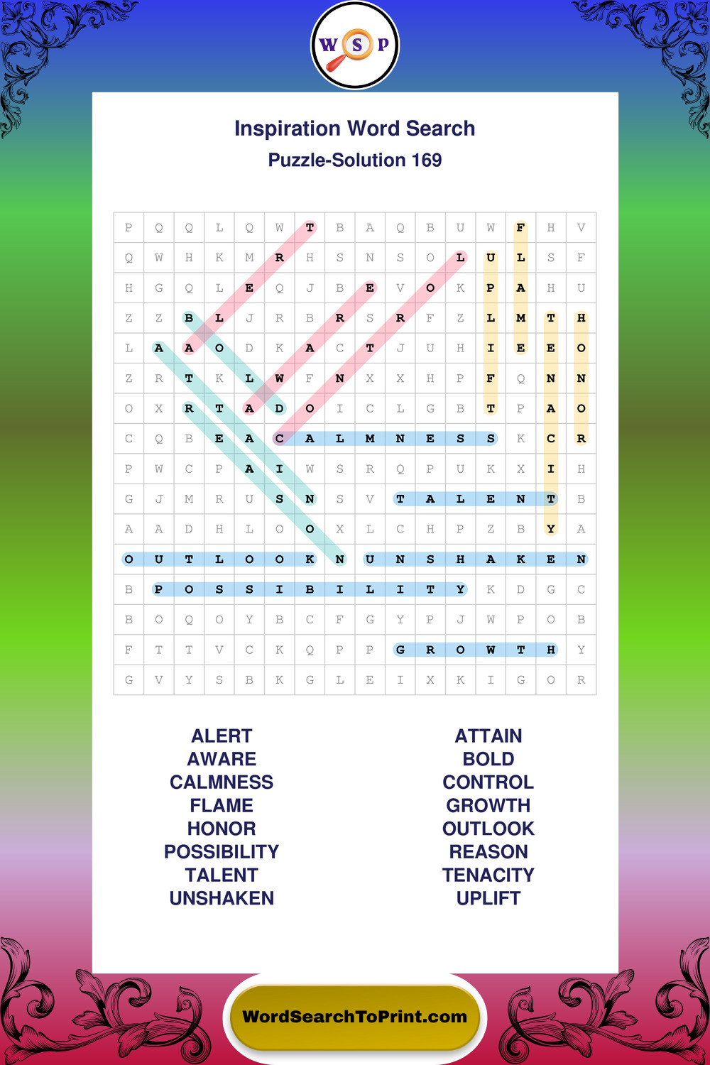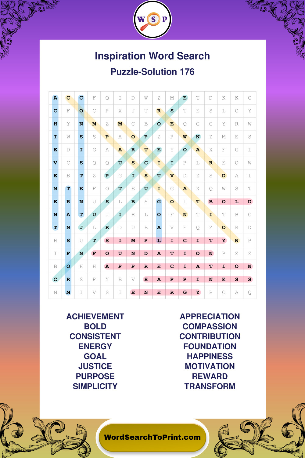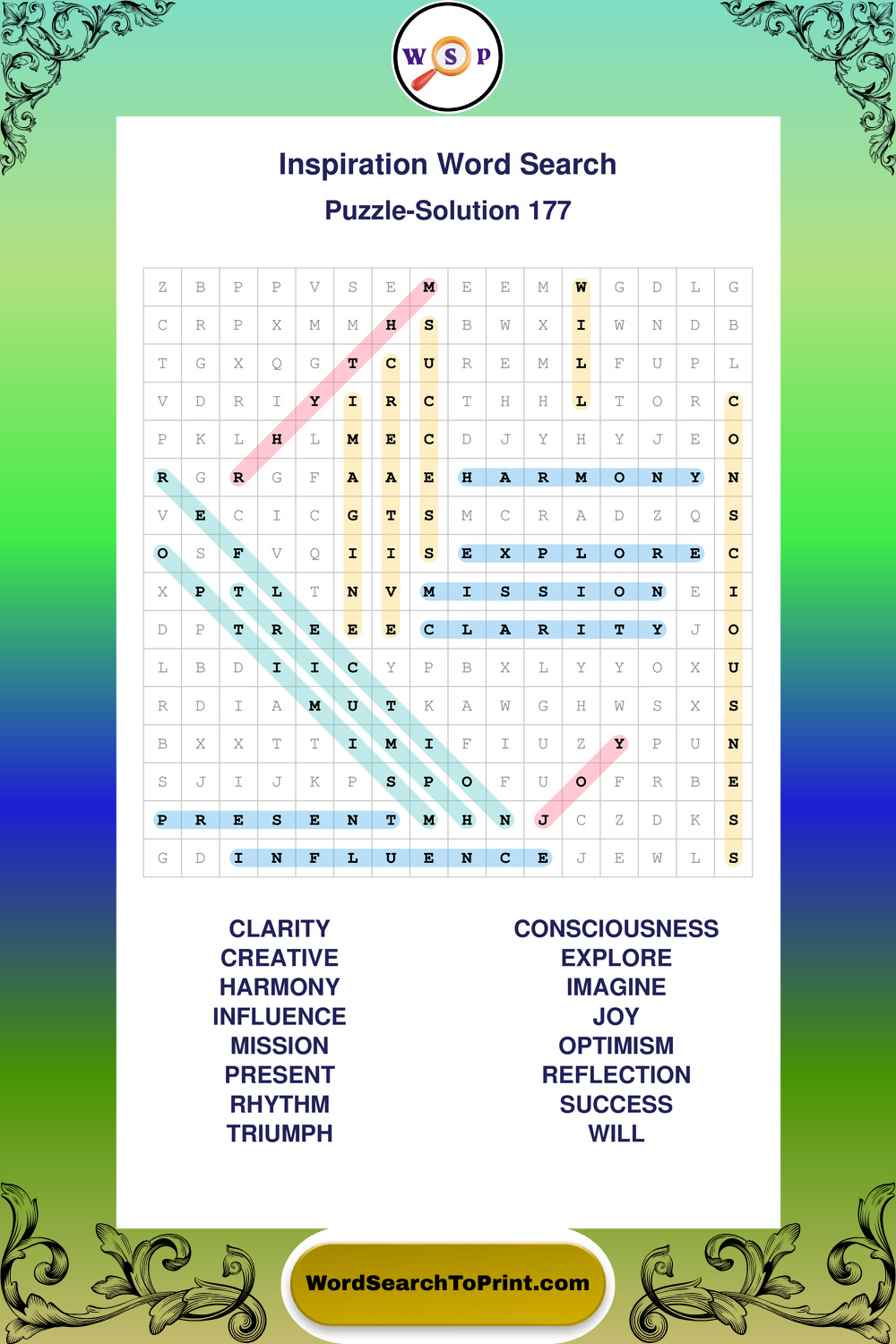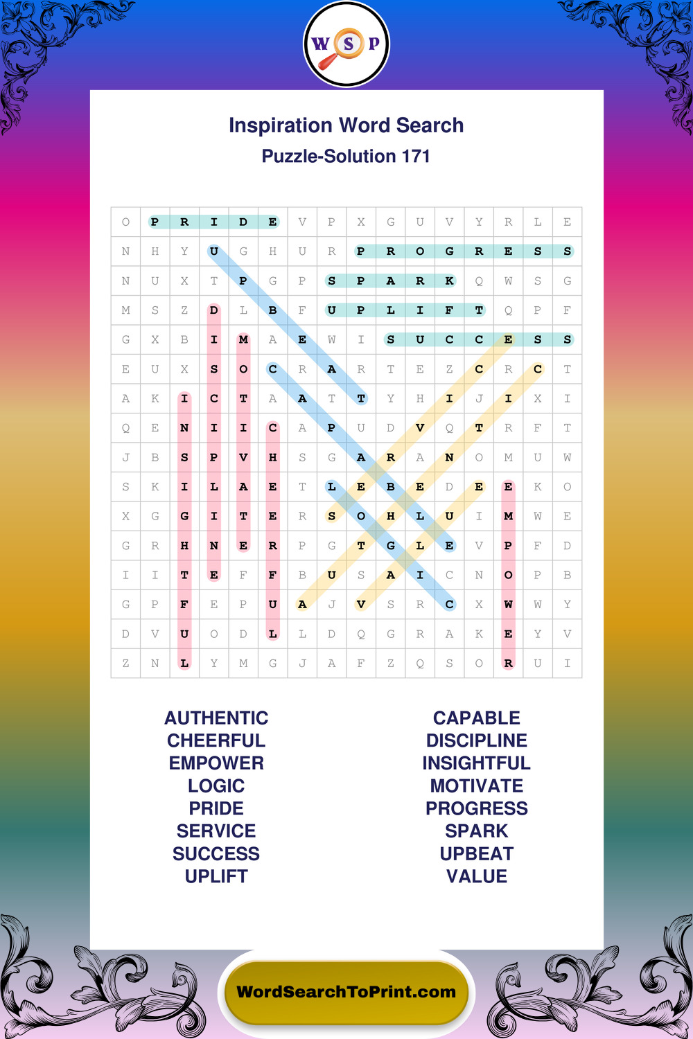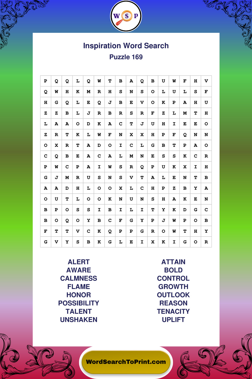 Printable Inspiration Wordsearch Puzzles