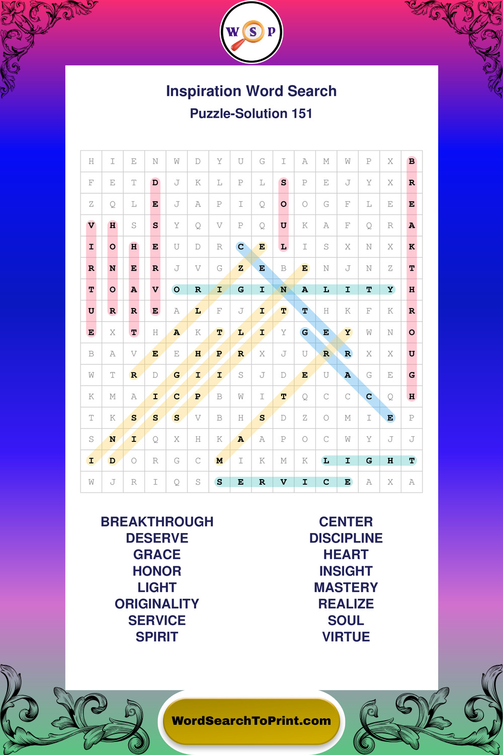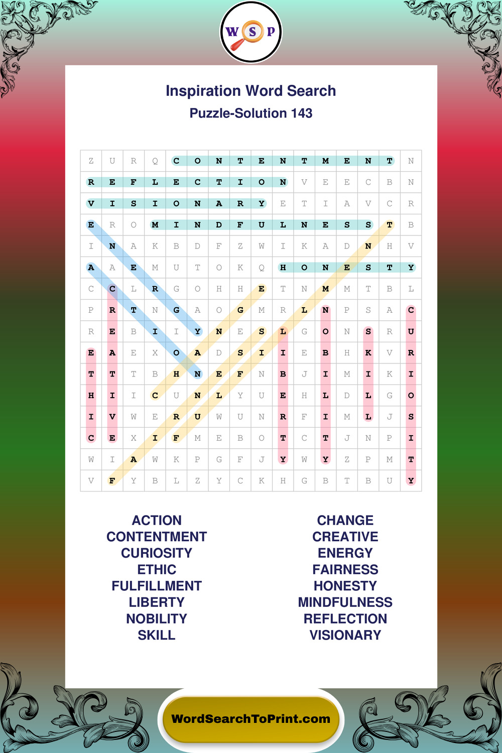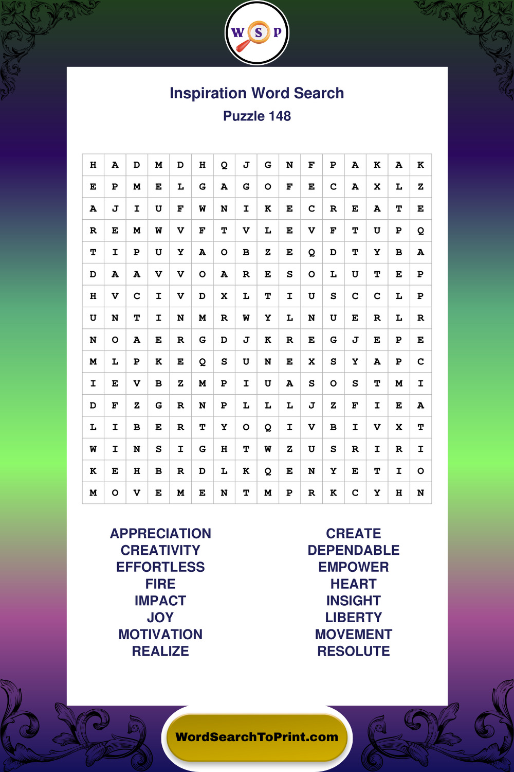 Printable Inspiration Wordsearch Puzzles