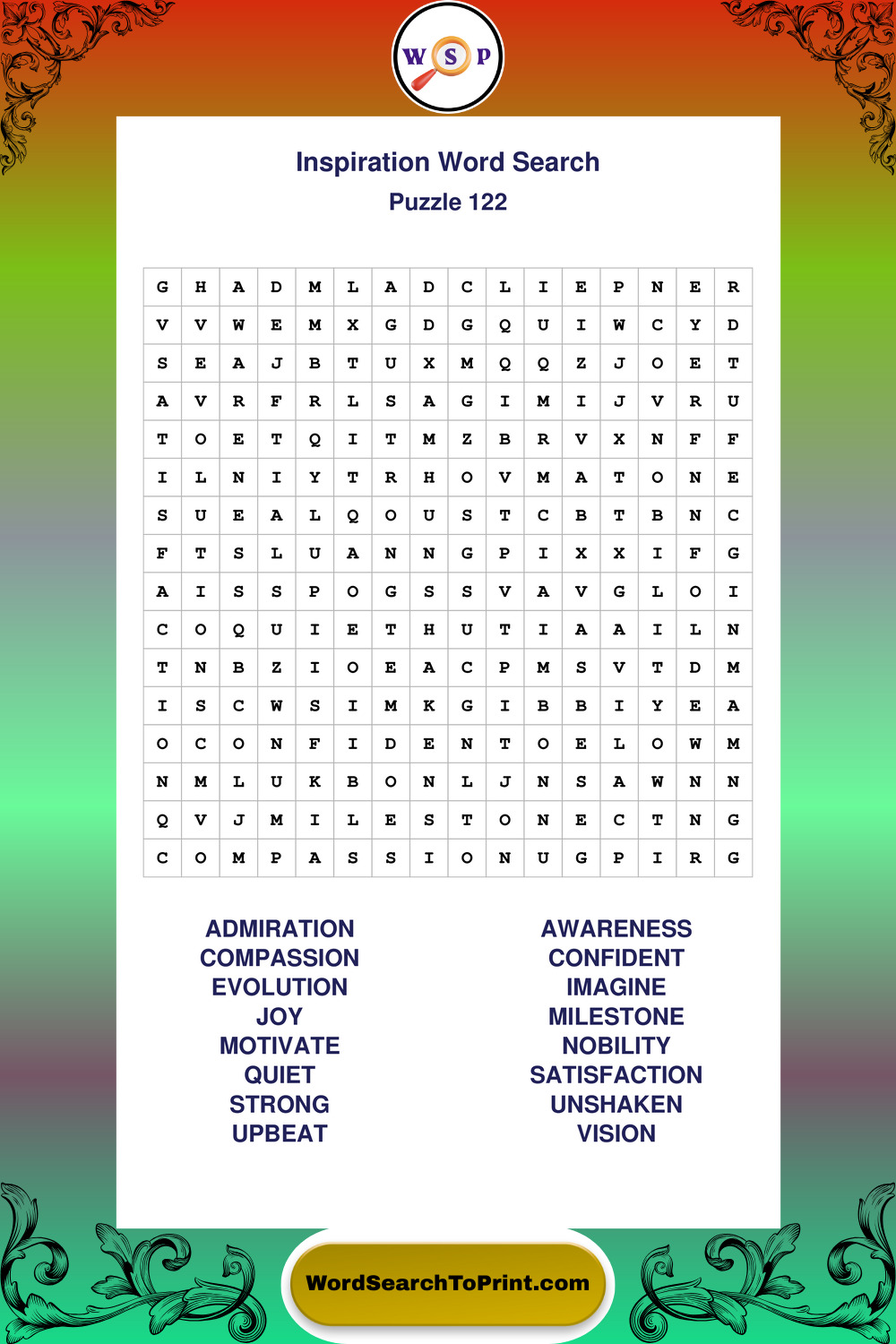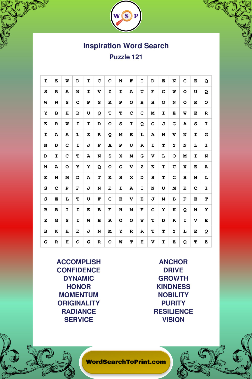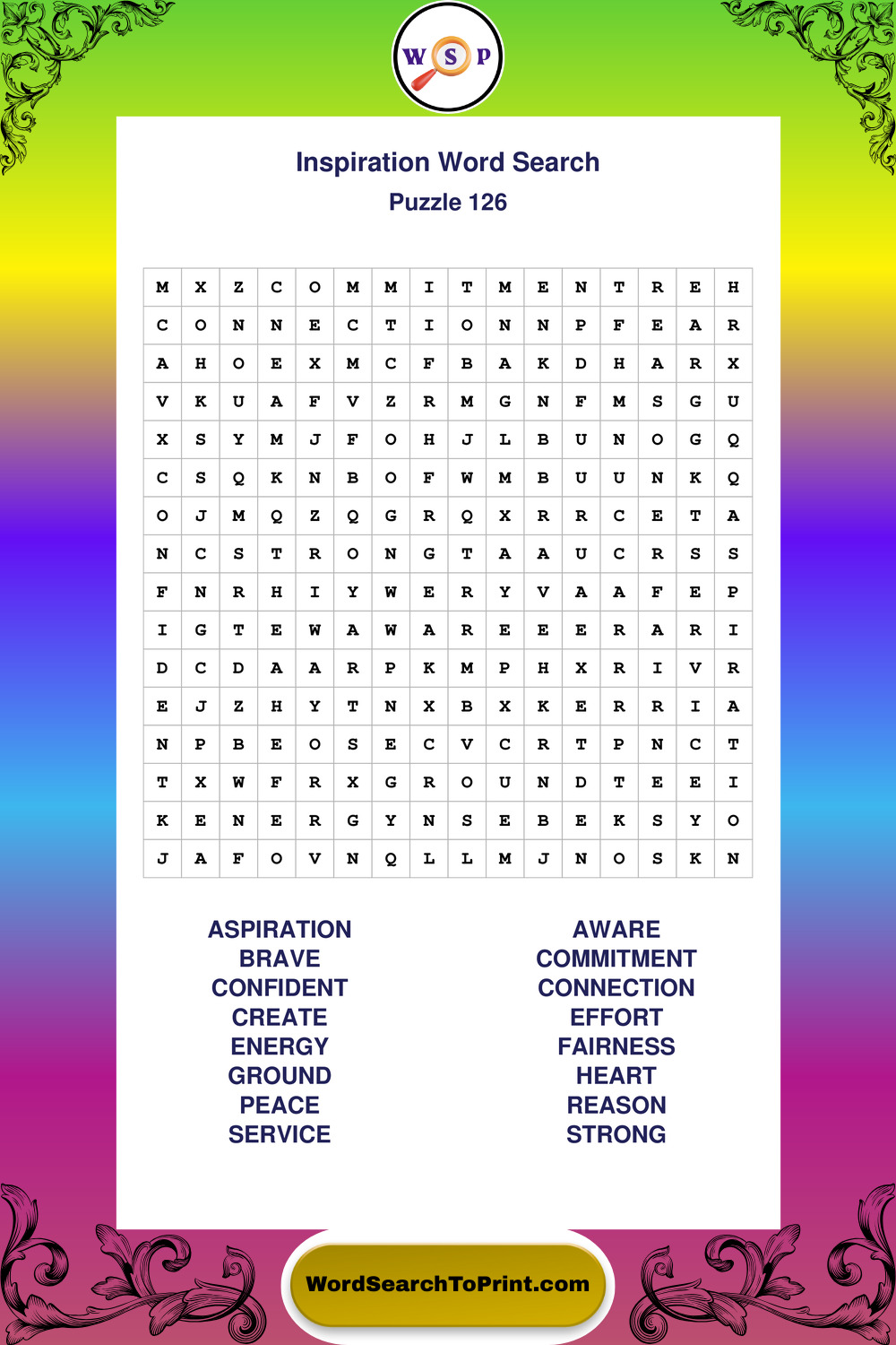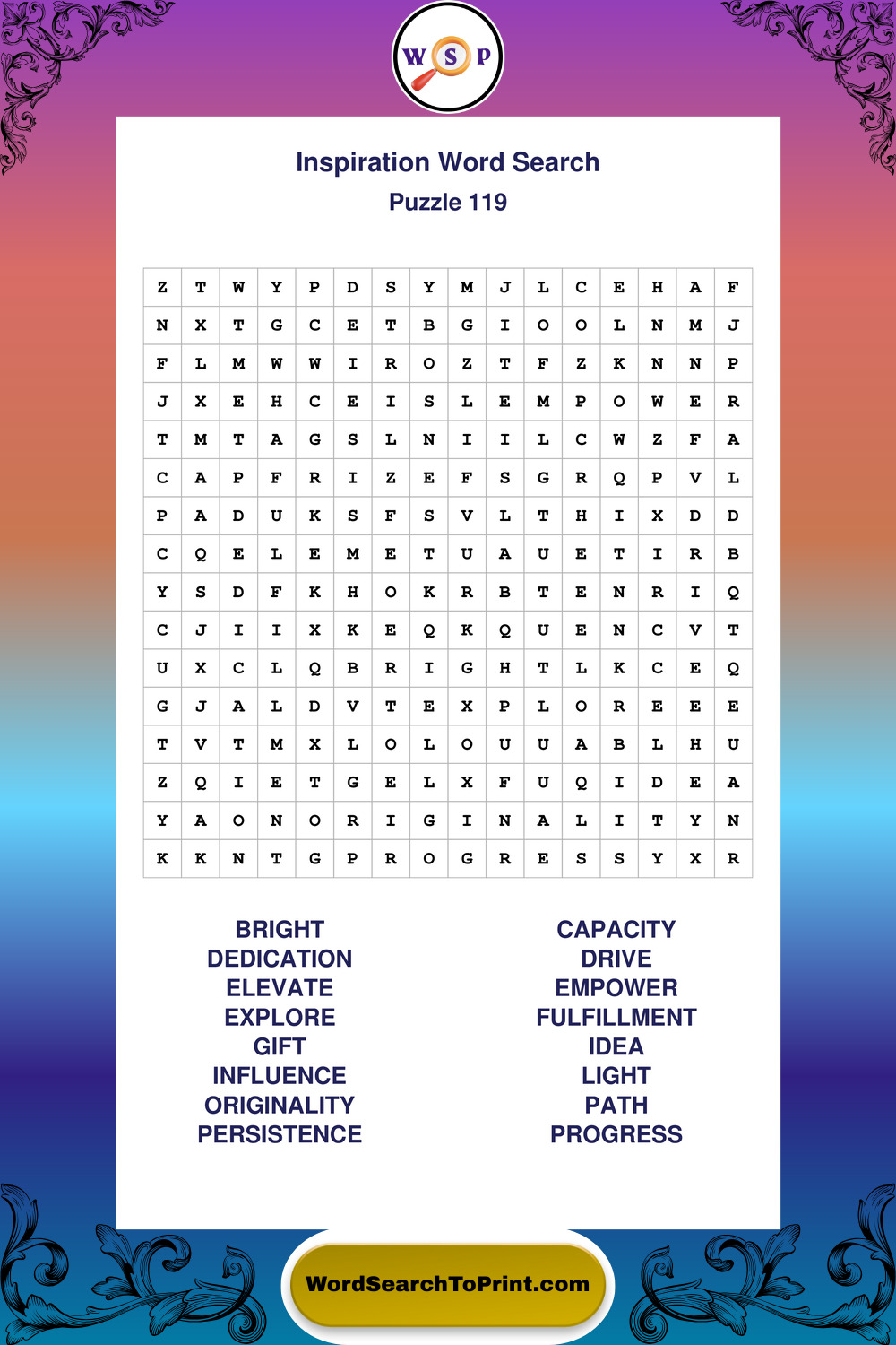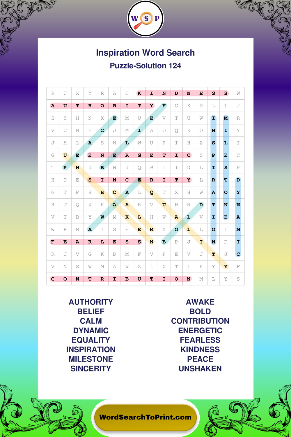Printable Inspiration Wordsearch Puzzles