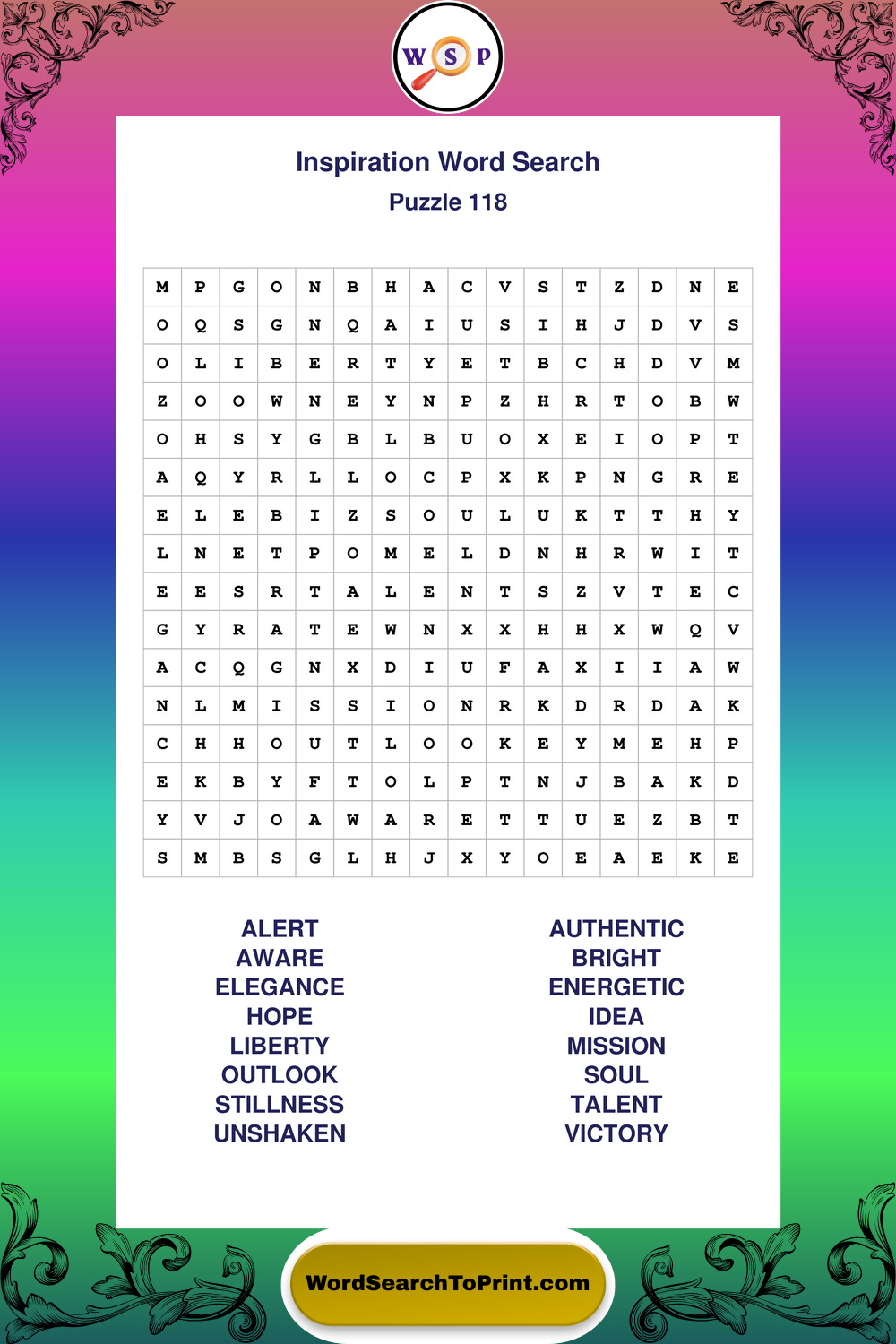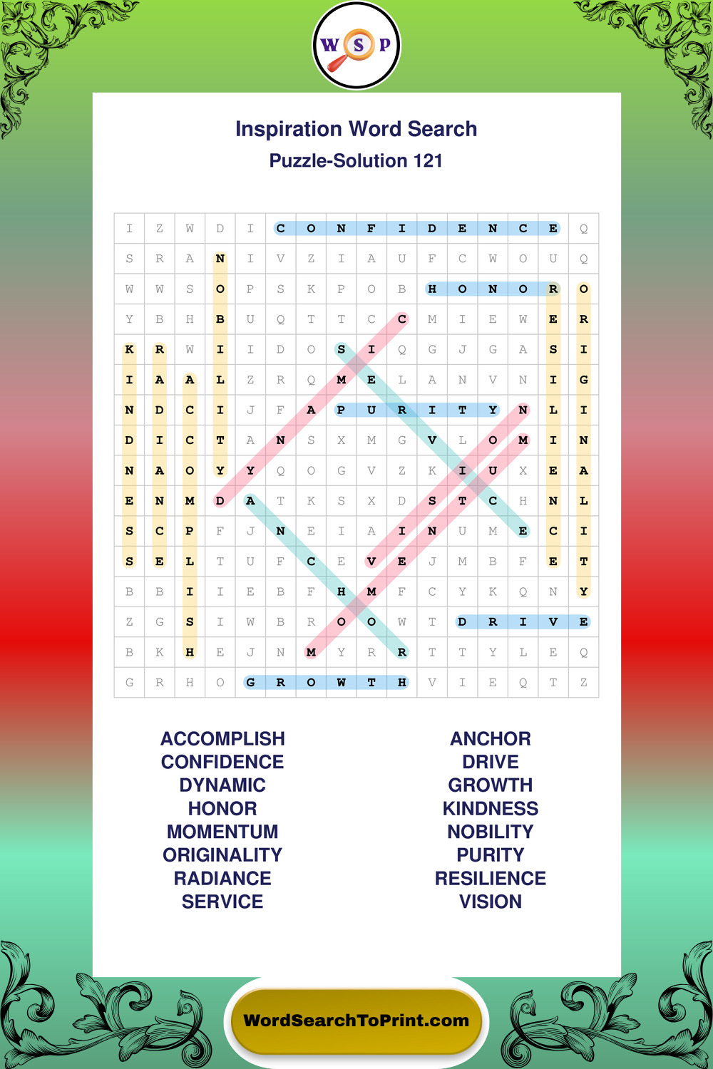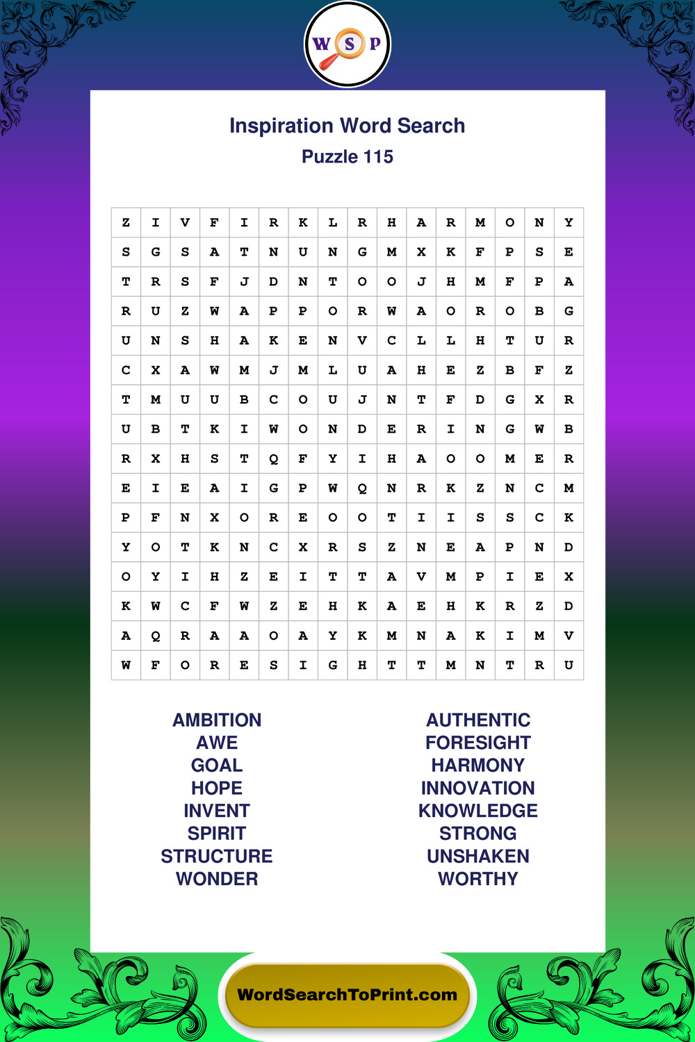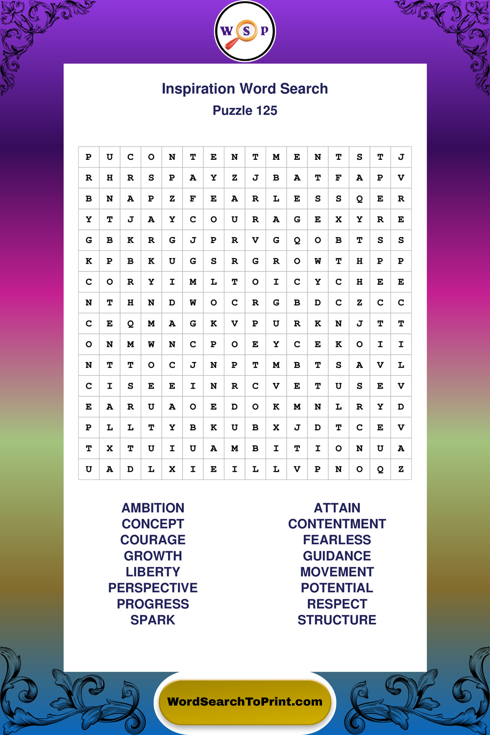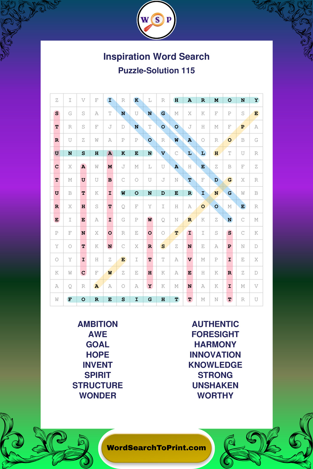 Printable Inspiration Wordsearch Puzzles