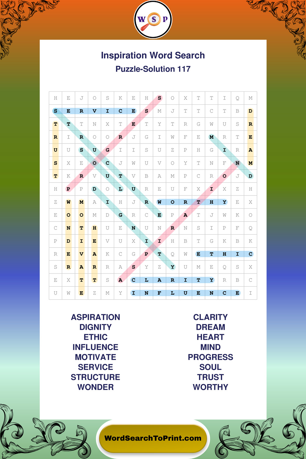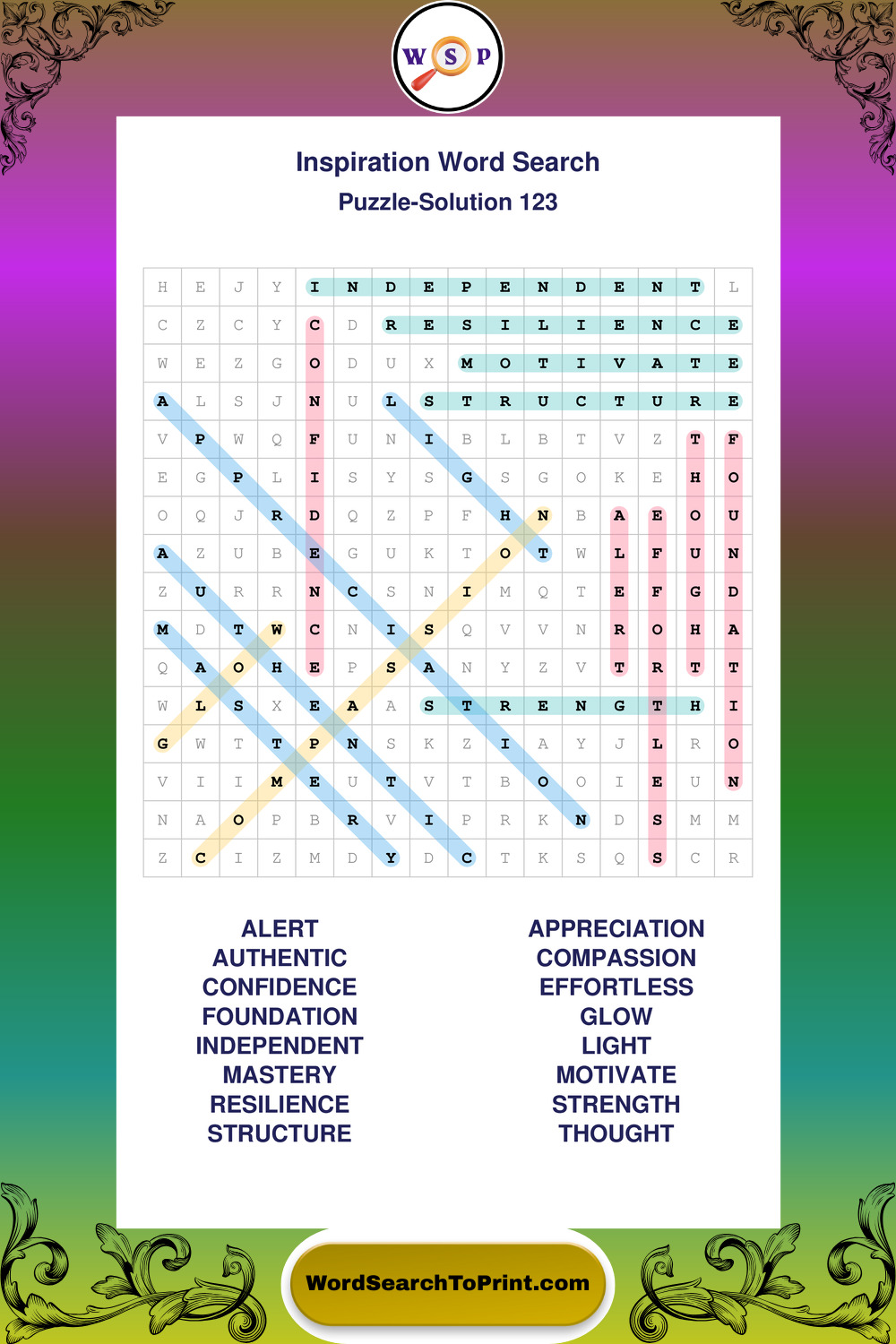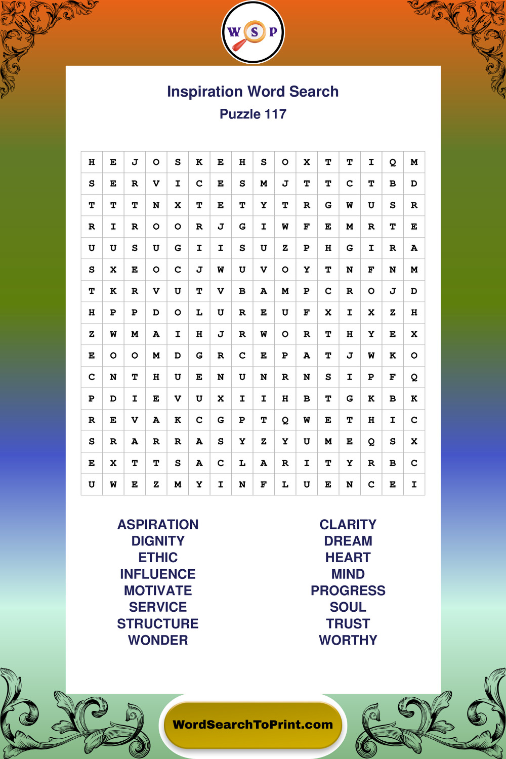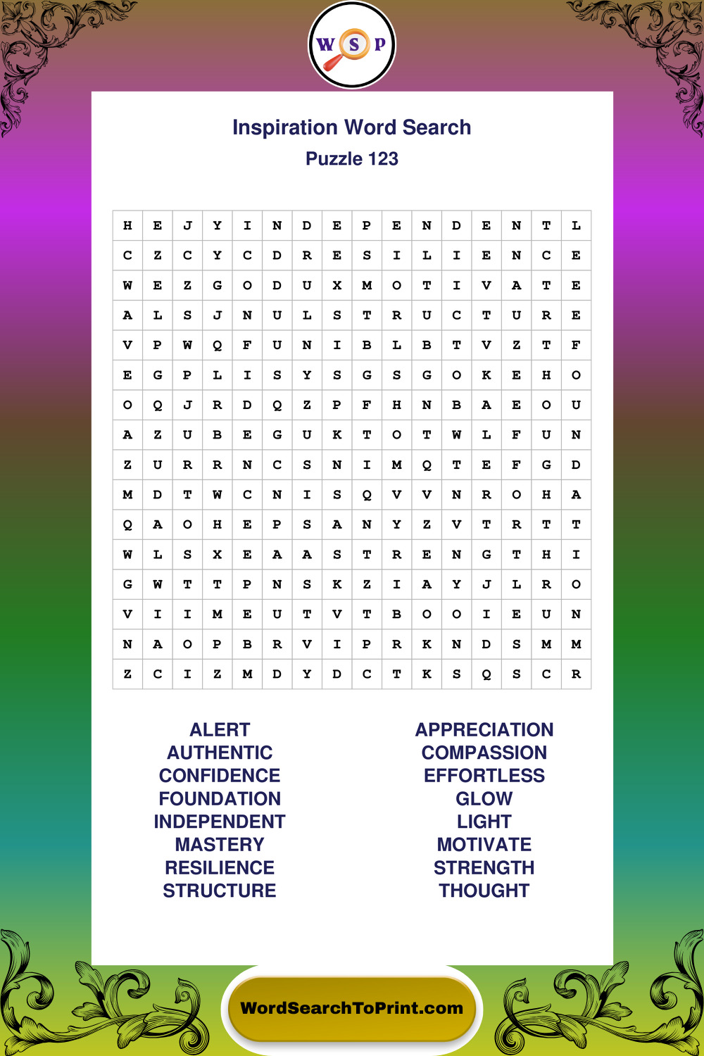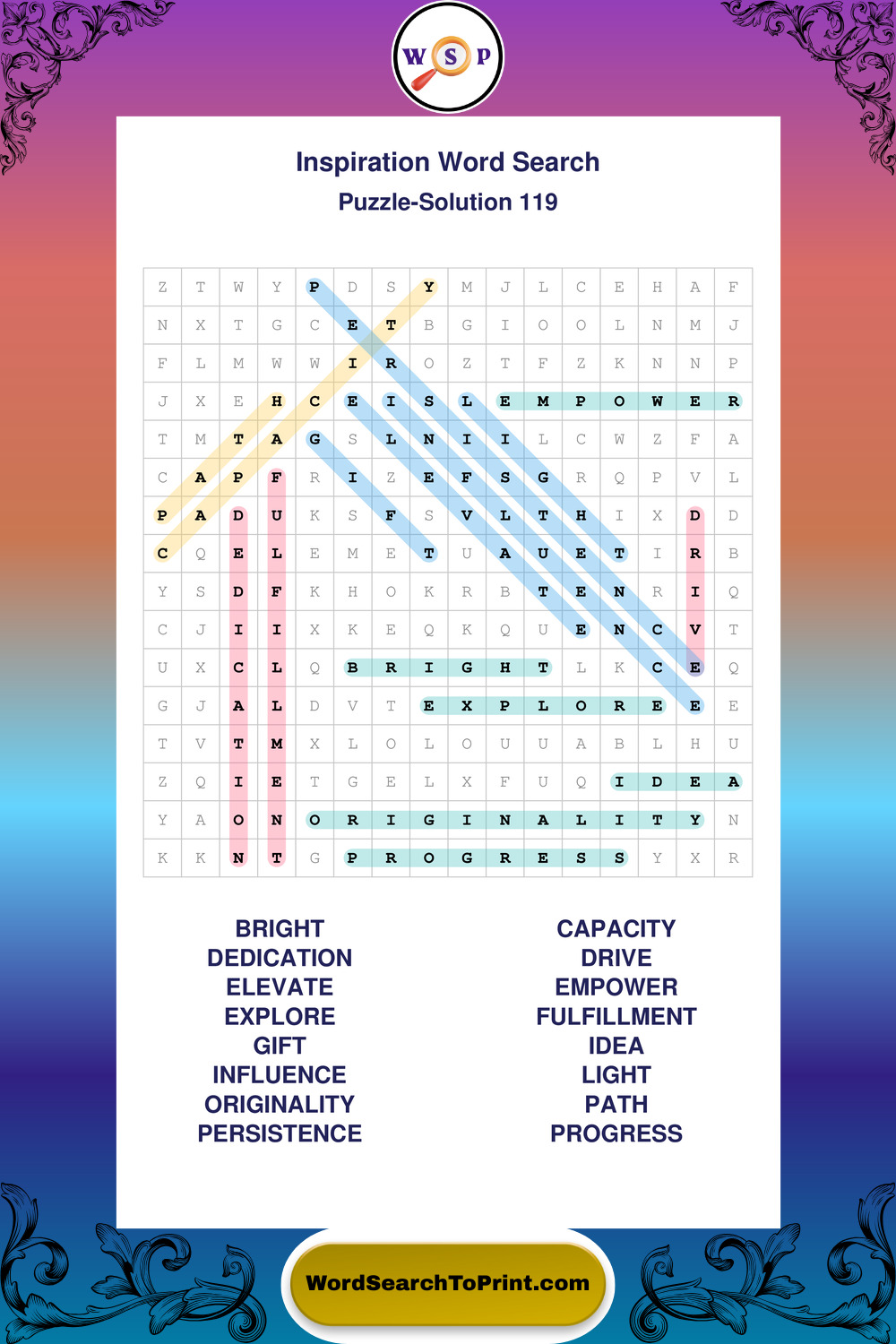 Printable Inspiration Wordsearch Puzzles