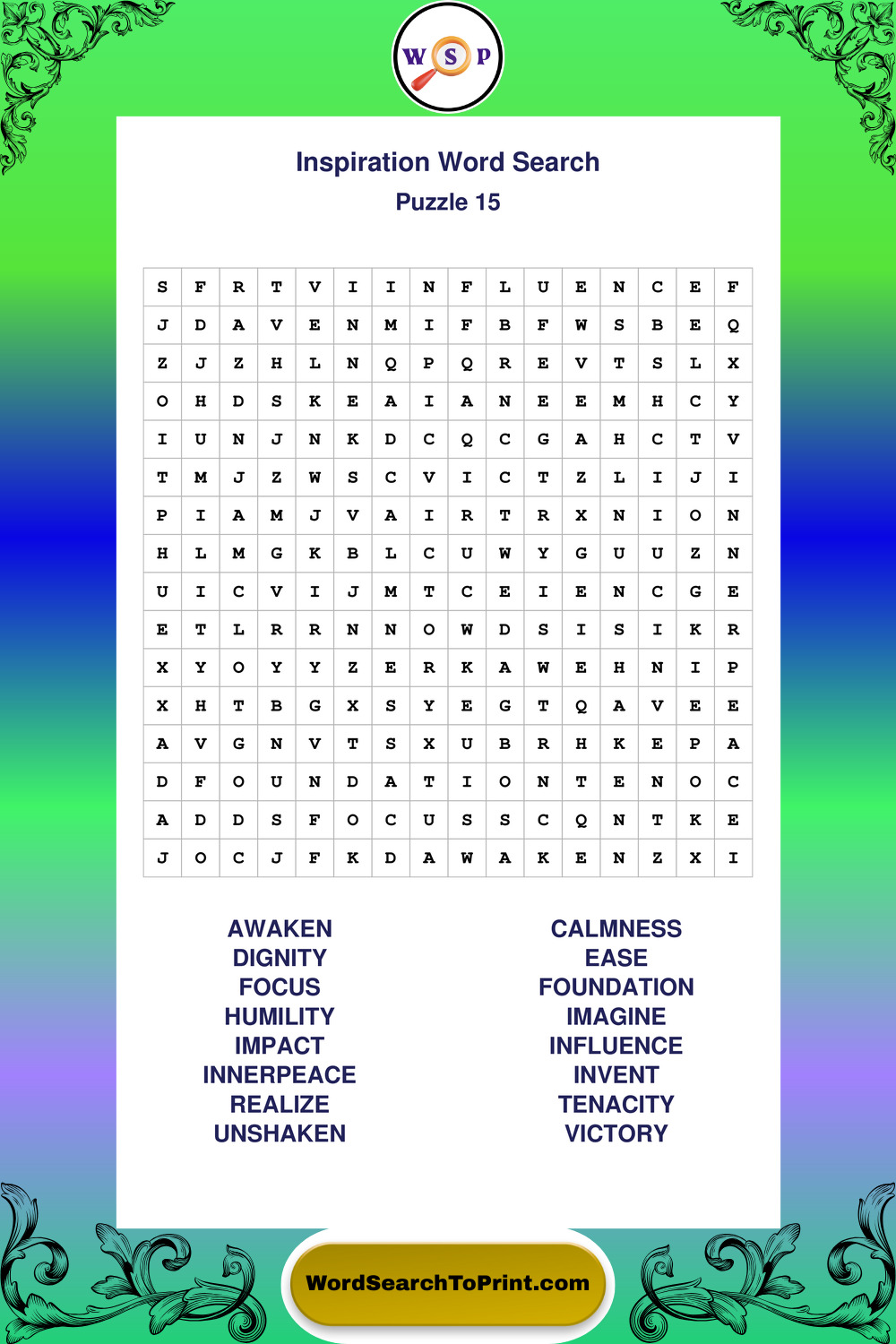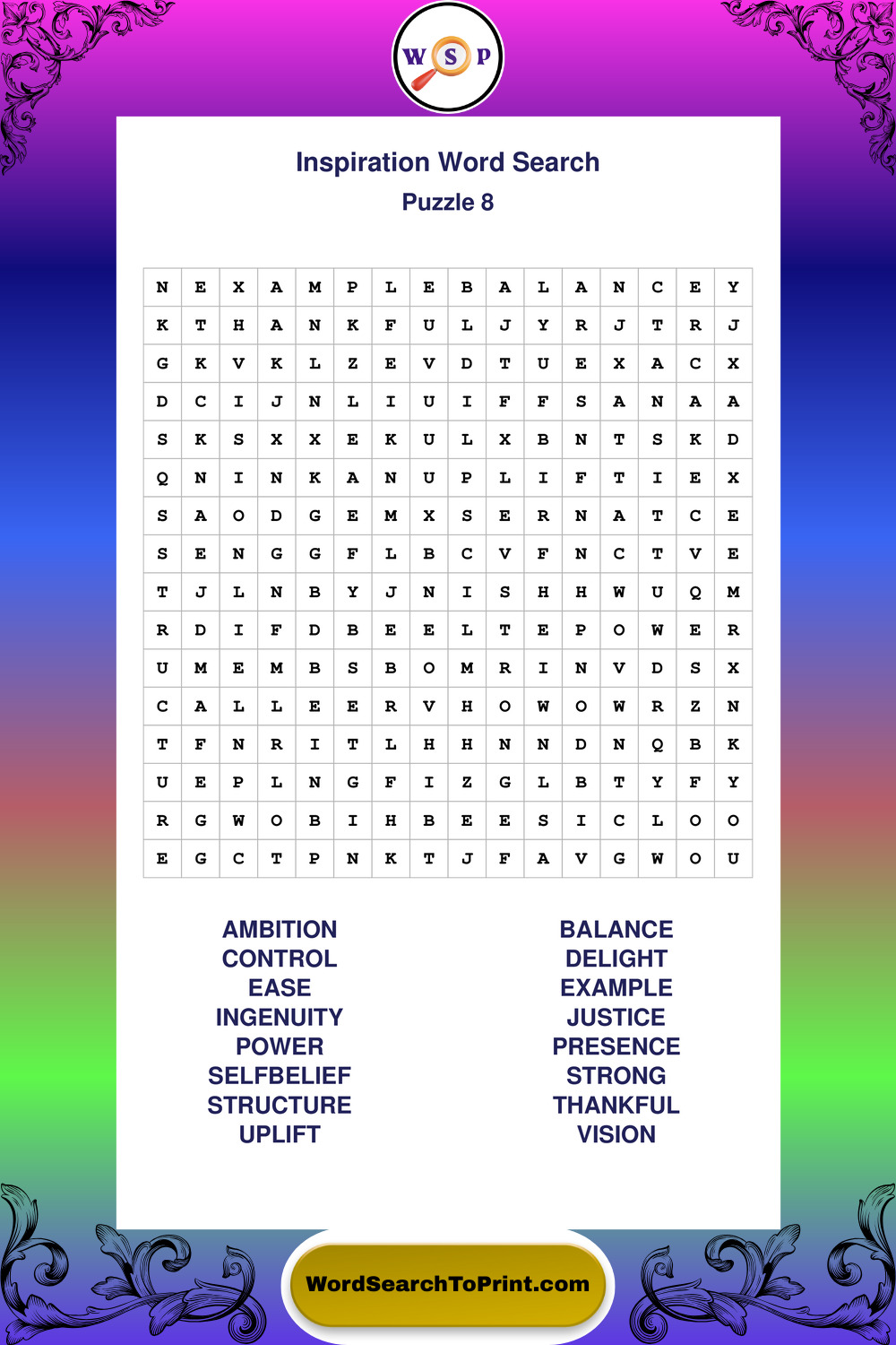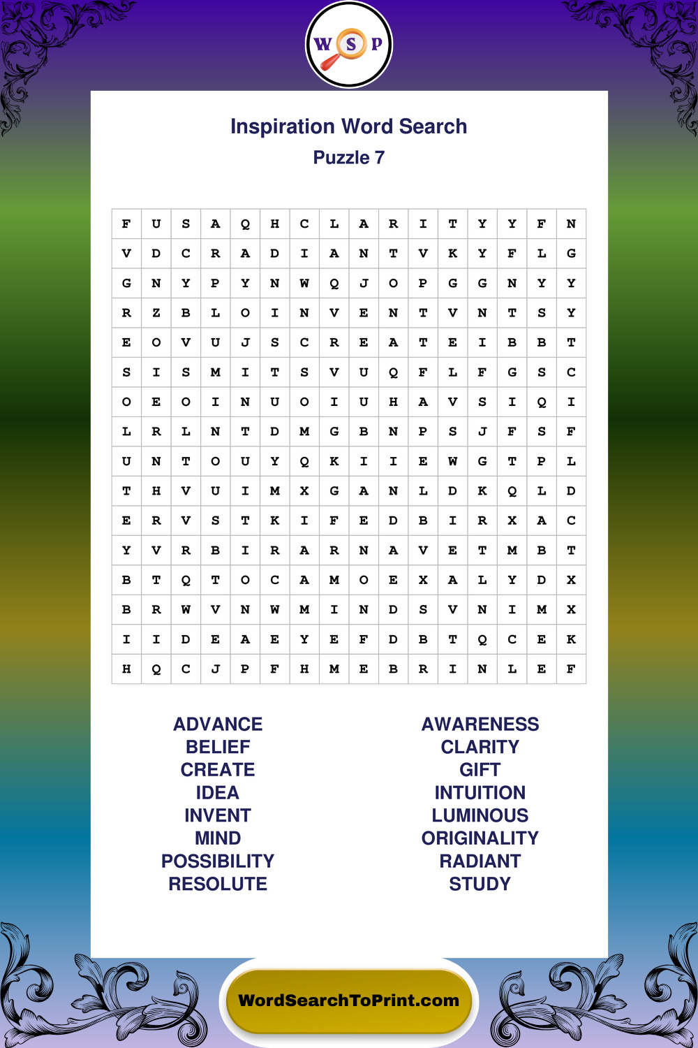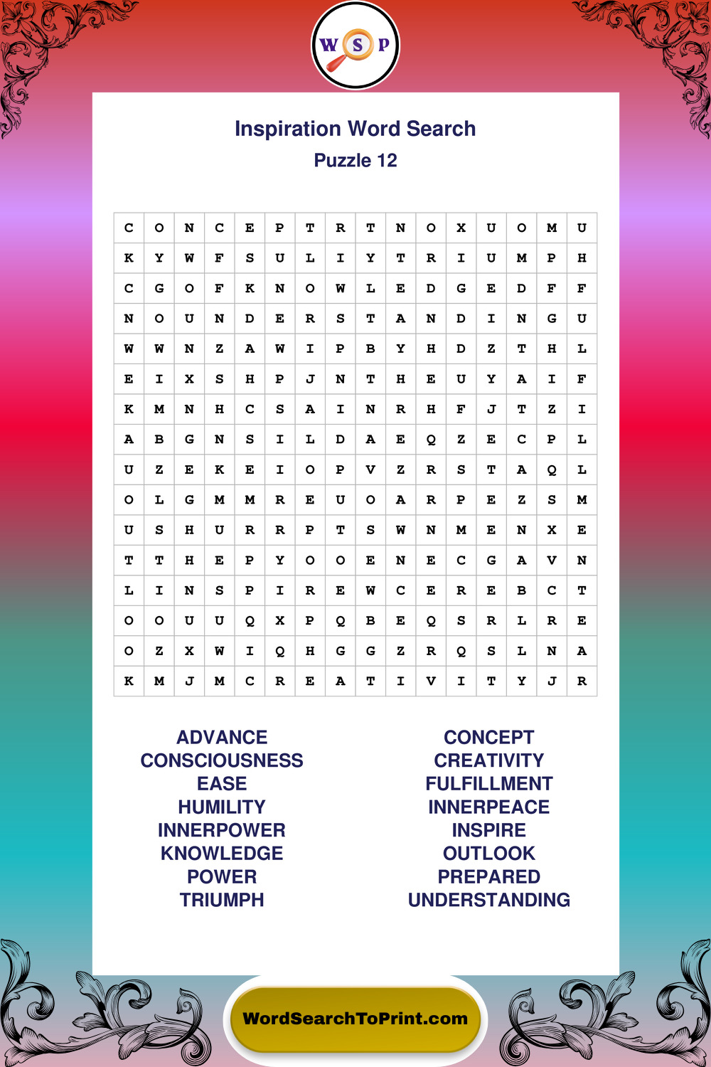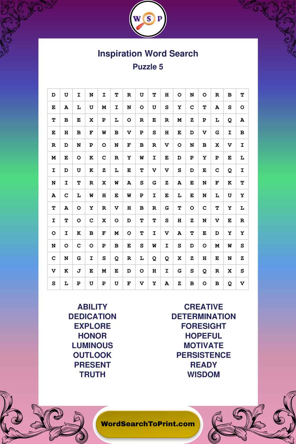 Printable Inspiration Wordsearch Puzzles