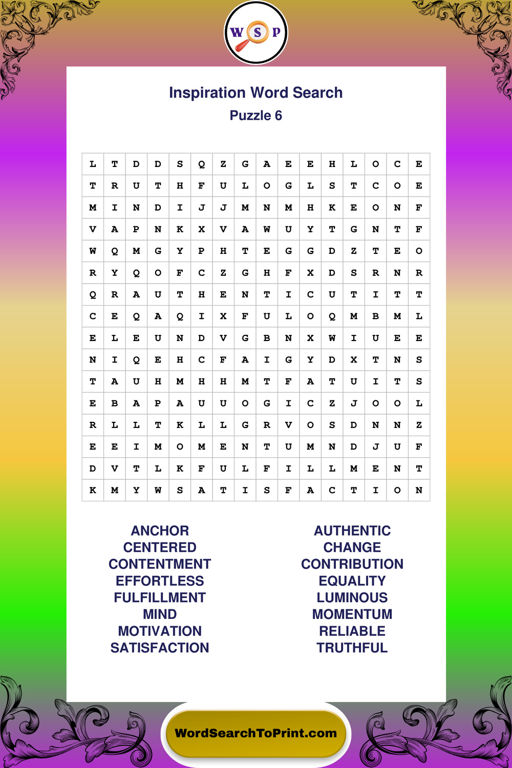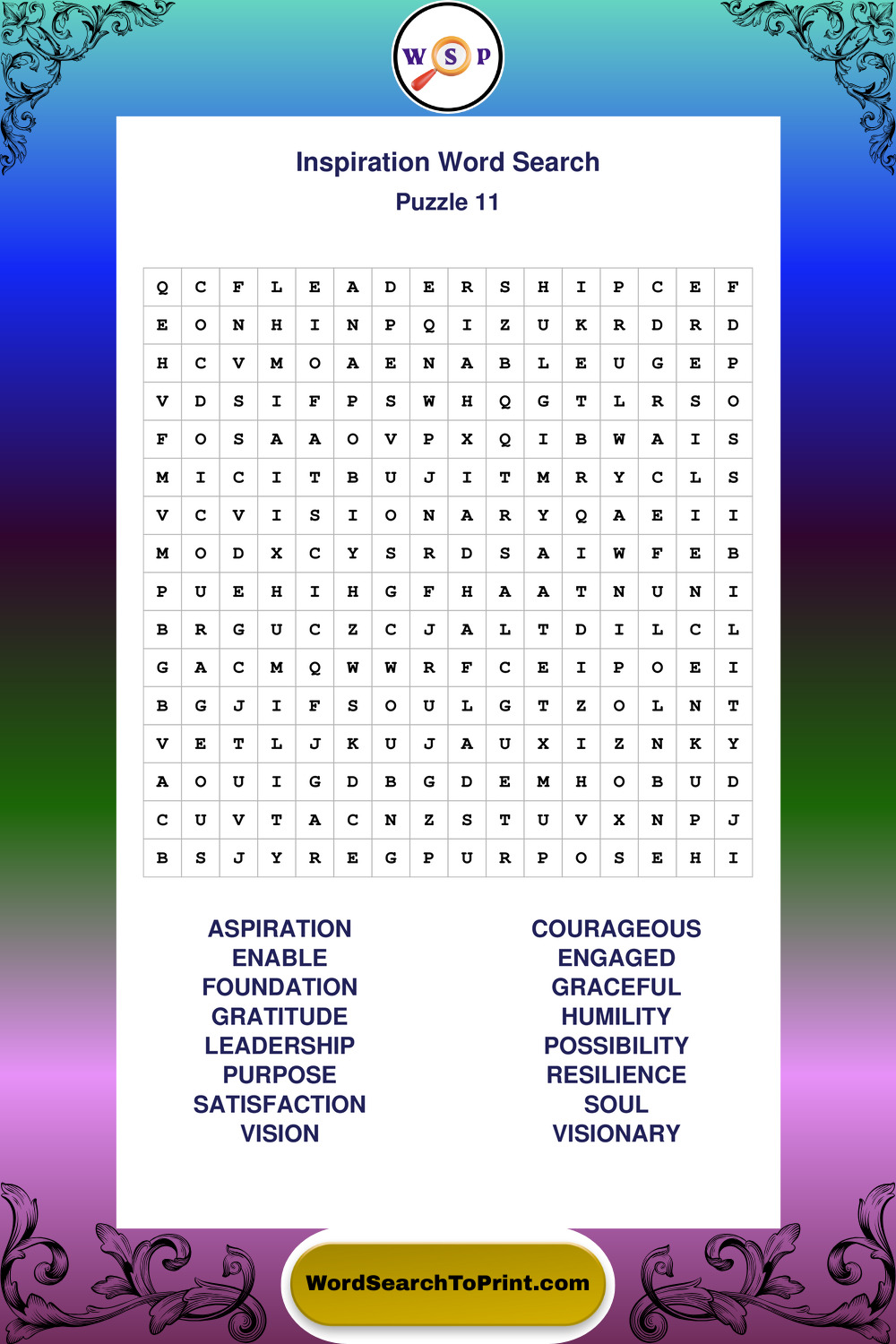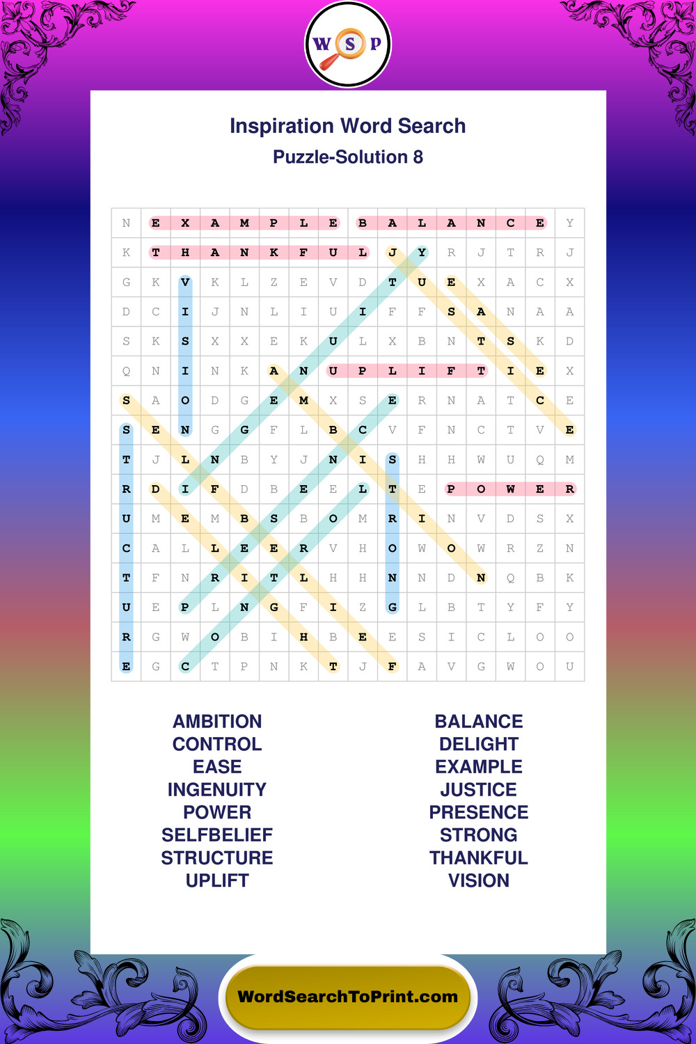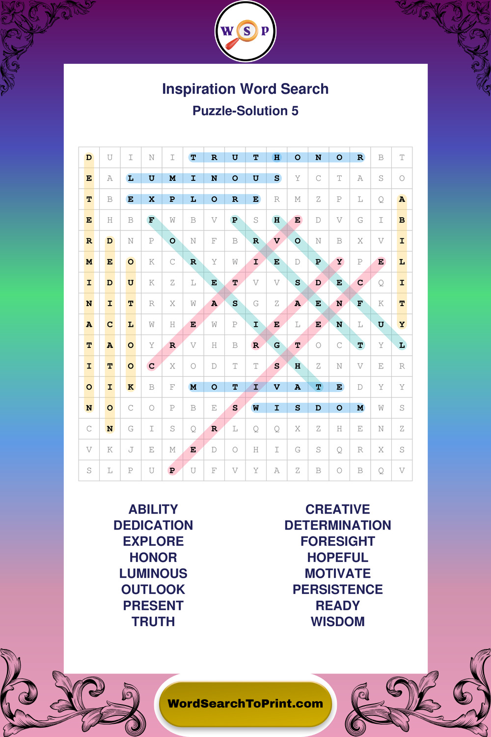 Printable Inspiration Wordsearch Puzzles