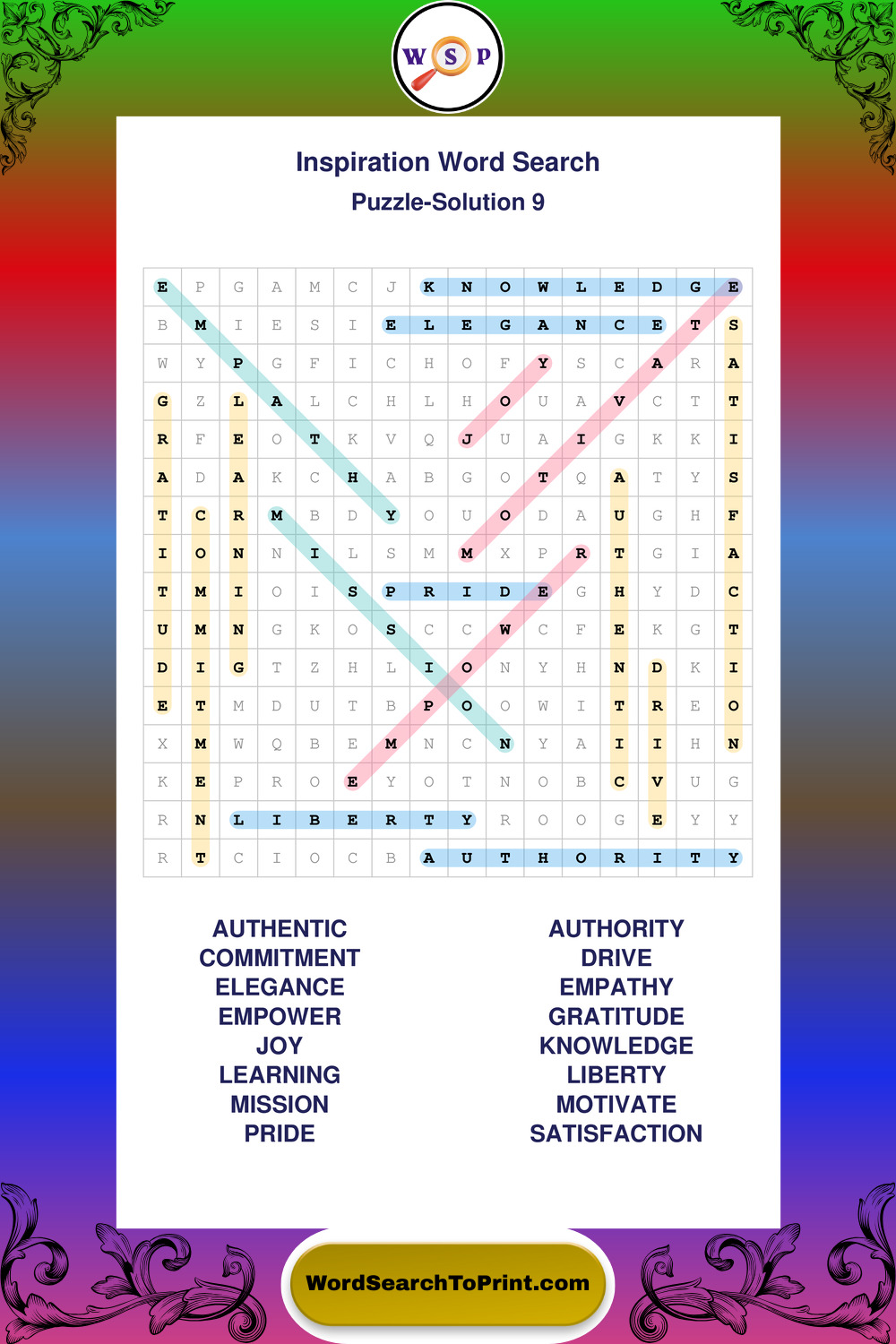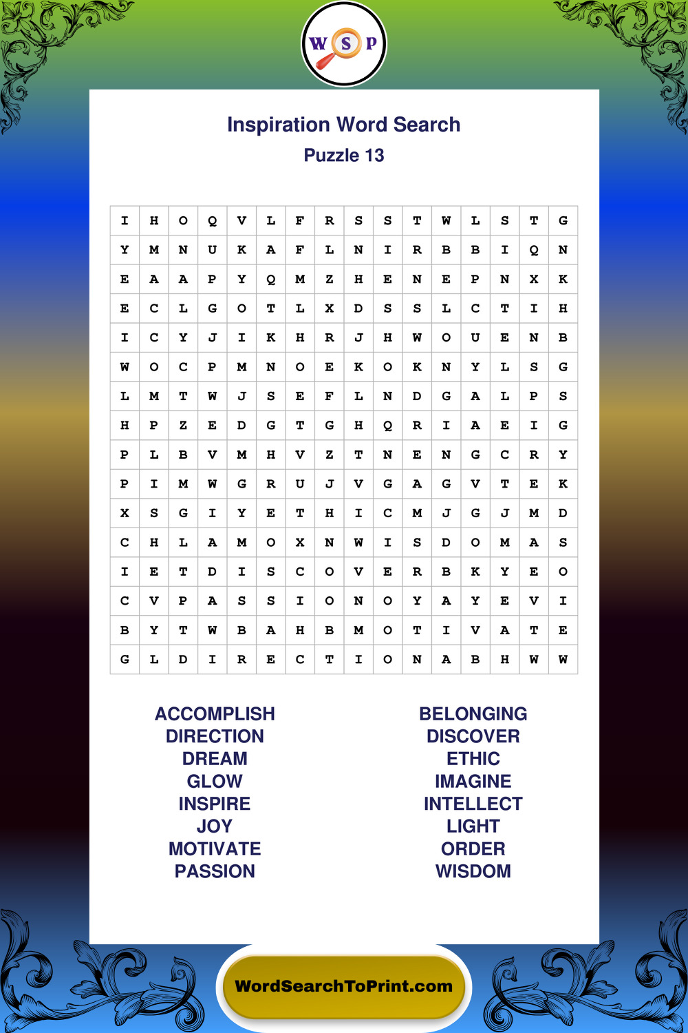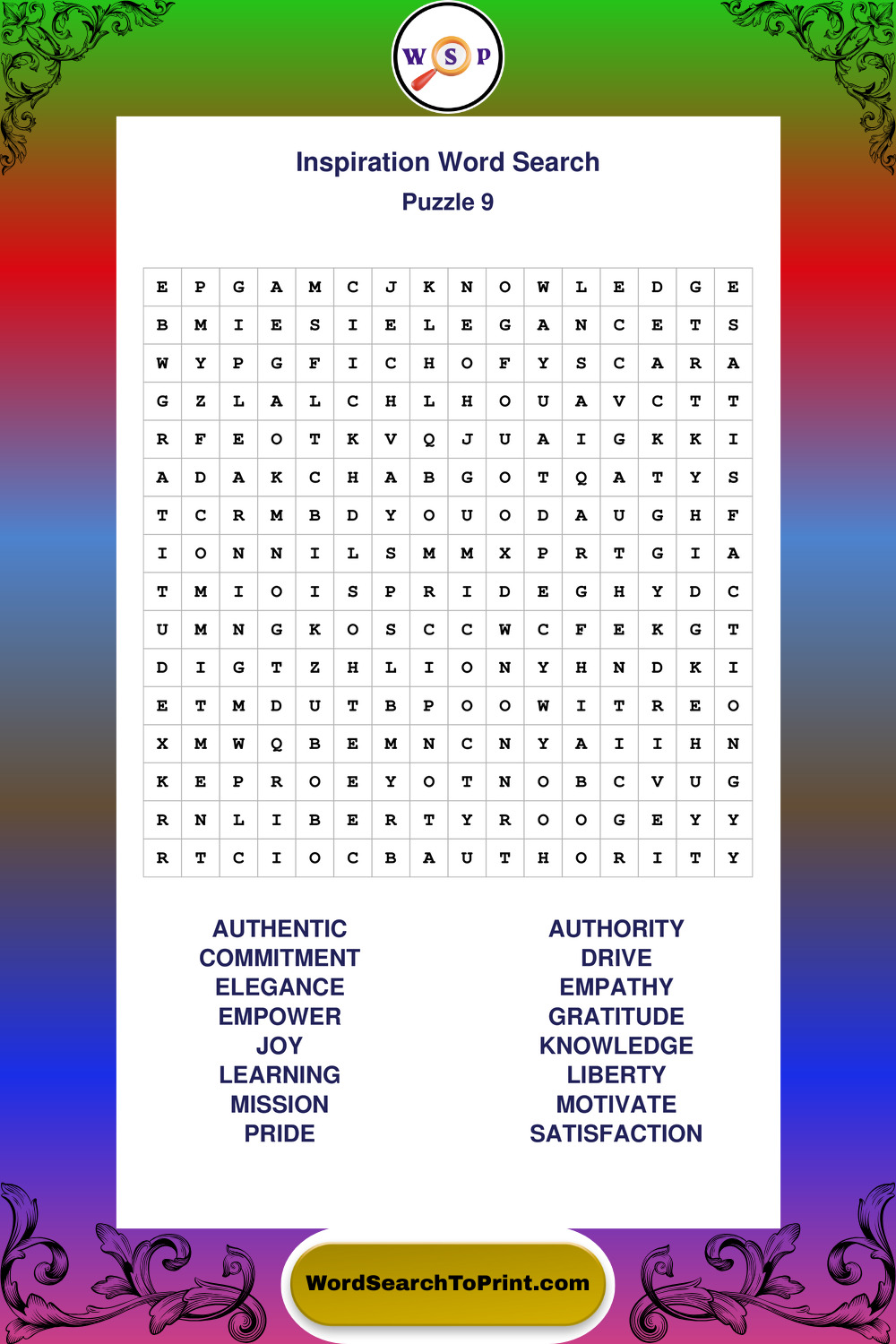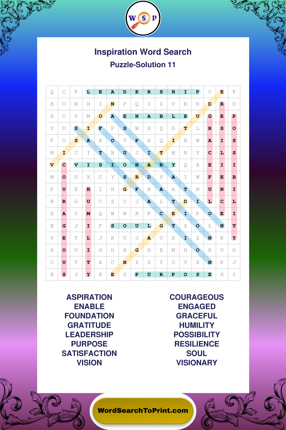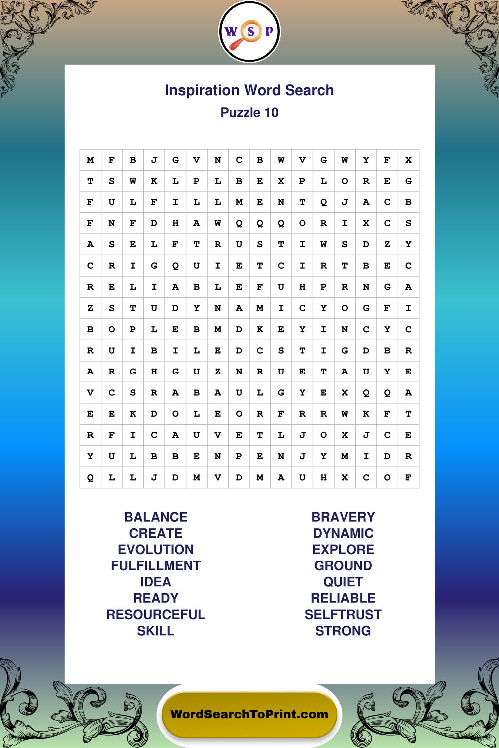 Printable Inspiration Wordsearch Puzzles