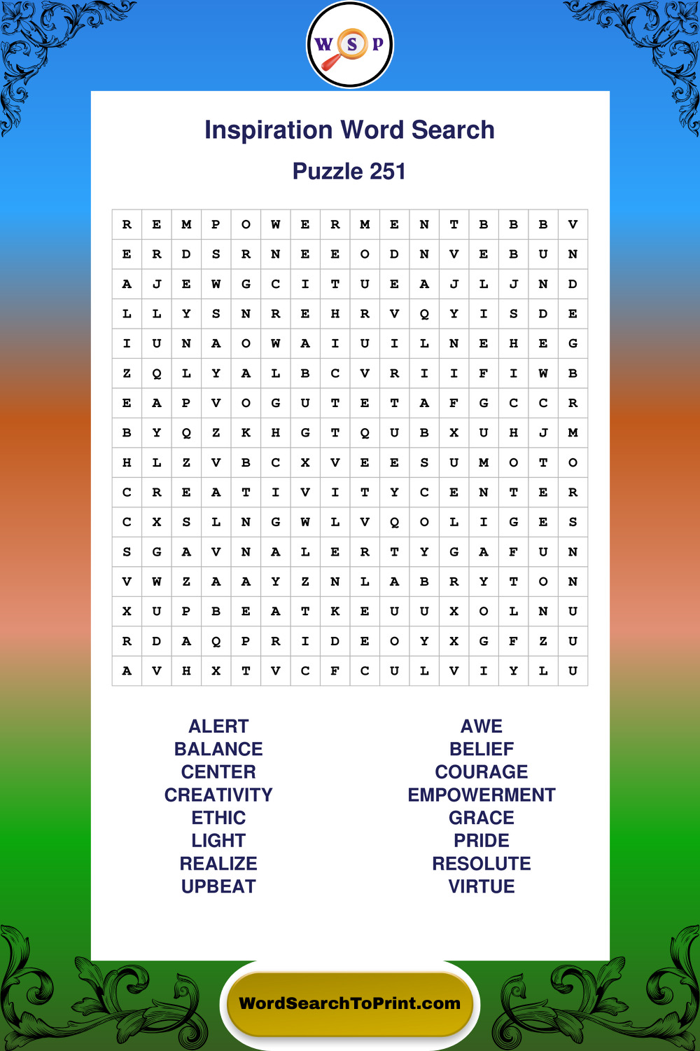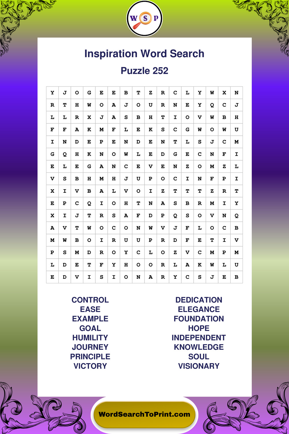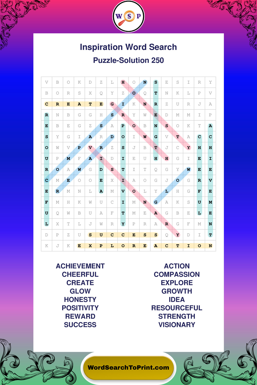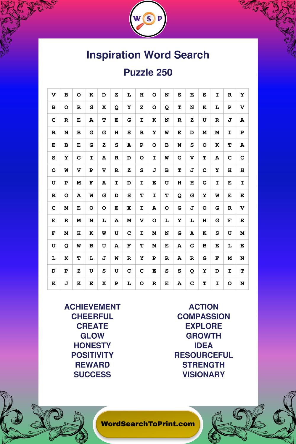 Printable Inspiration Wordsearch Puzzles
