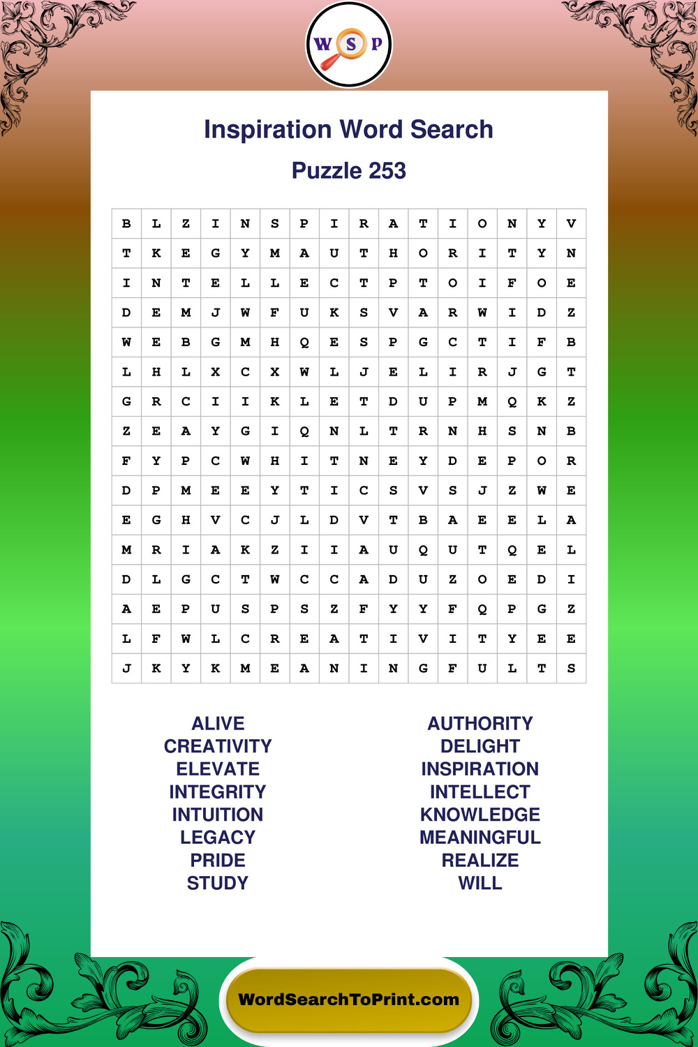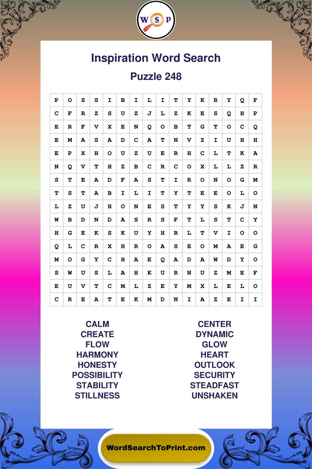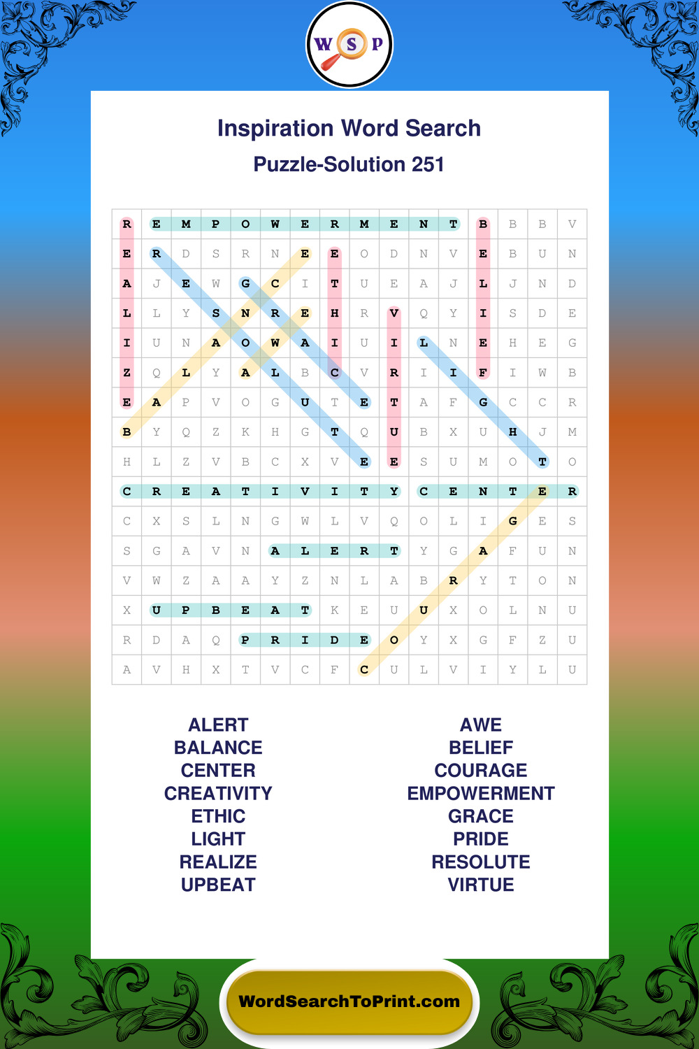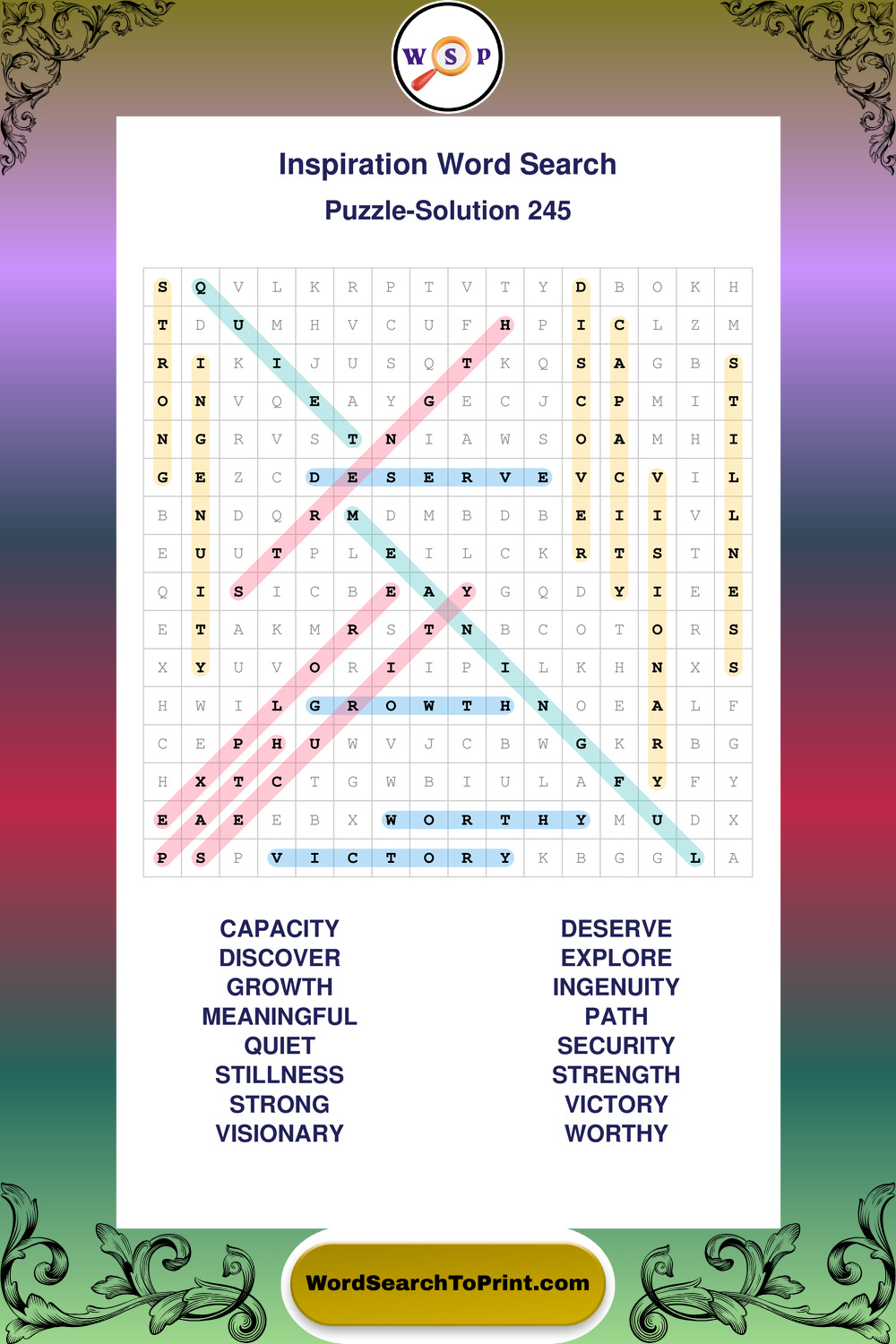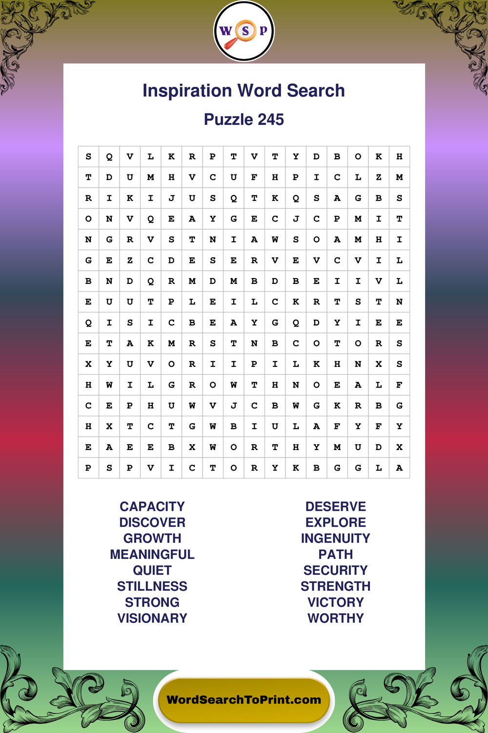 Printable Inspiration Wordsearch Puzzles