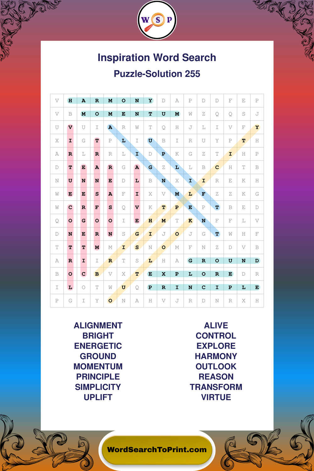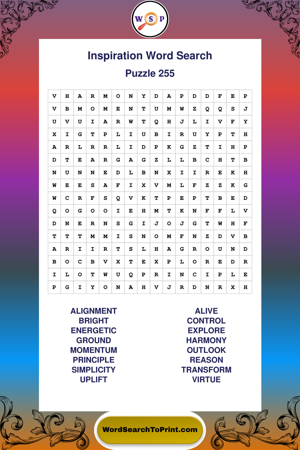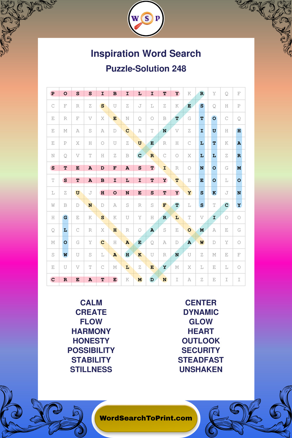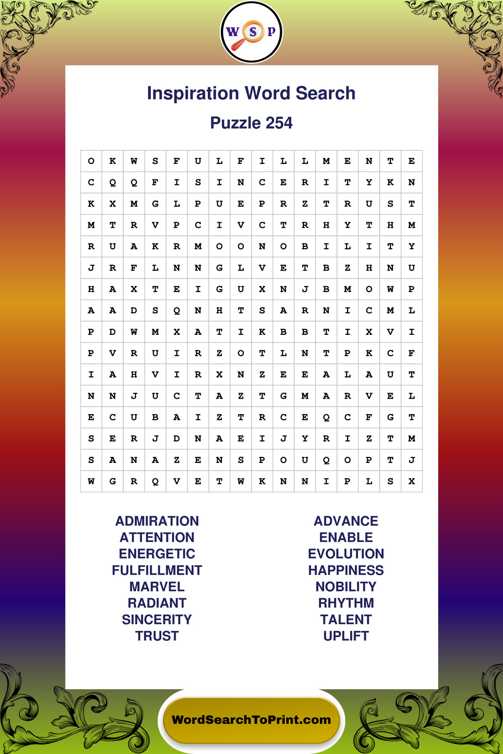 Printable Inspiration Wordsearch Puzzles