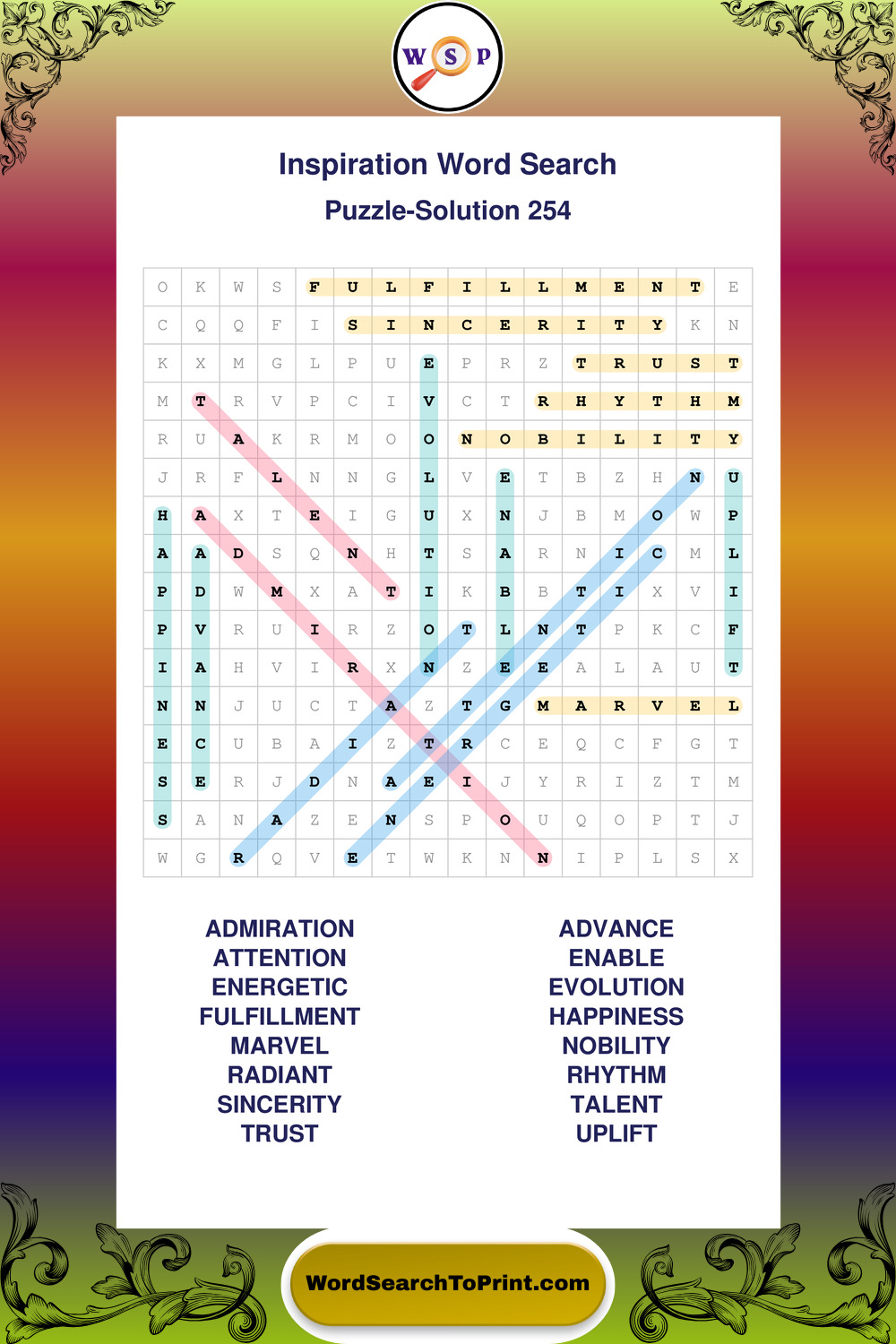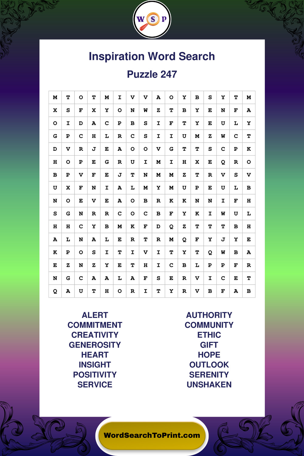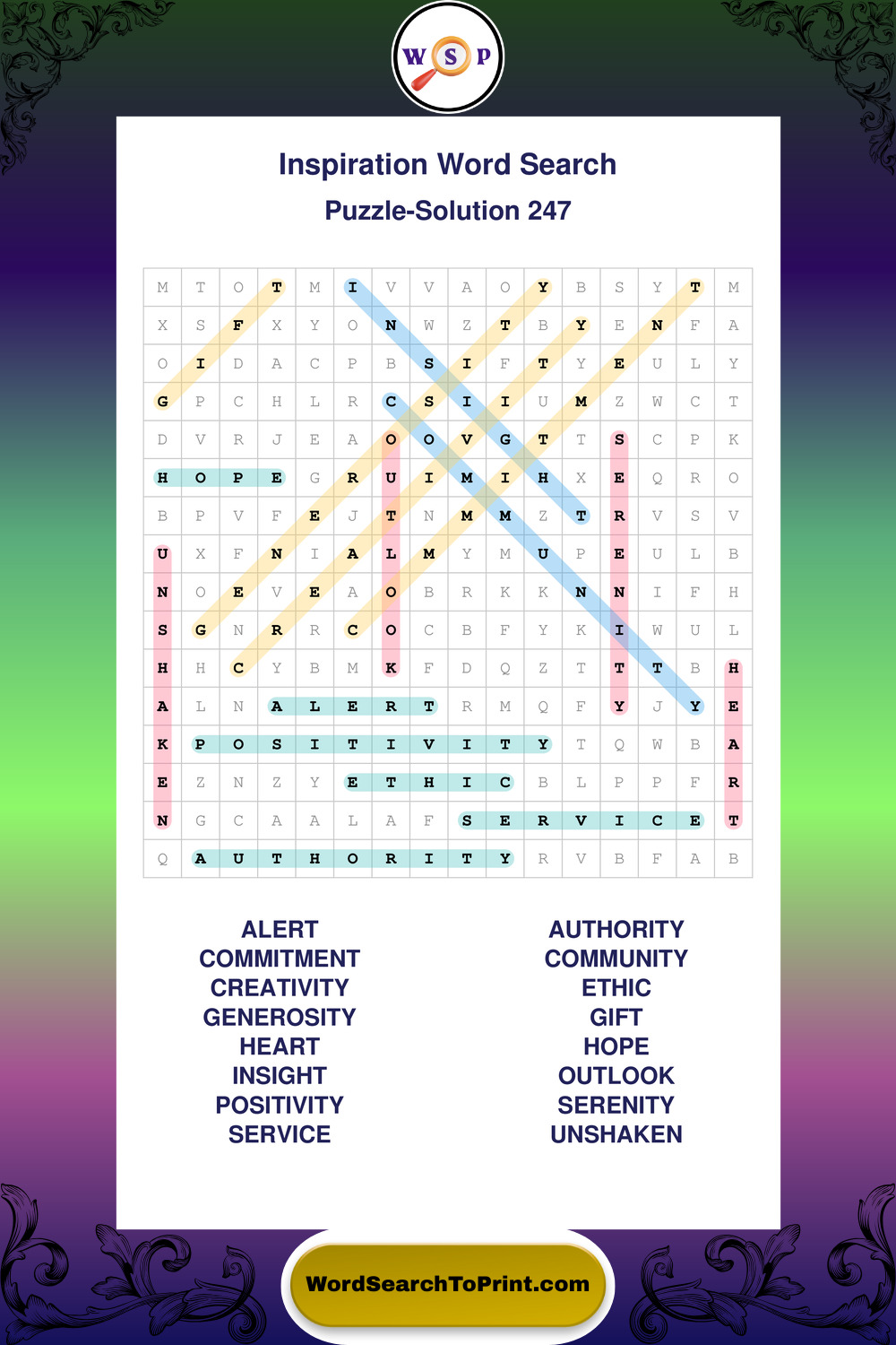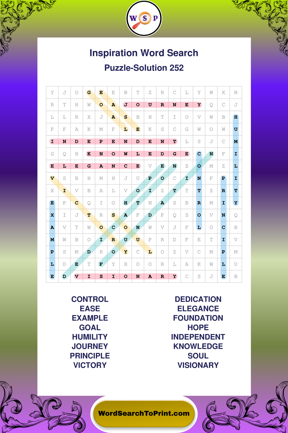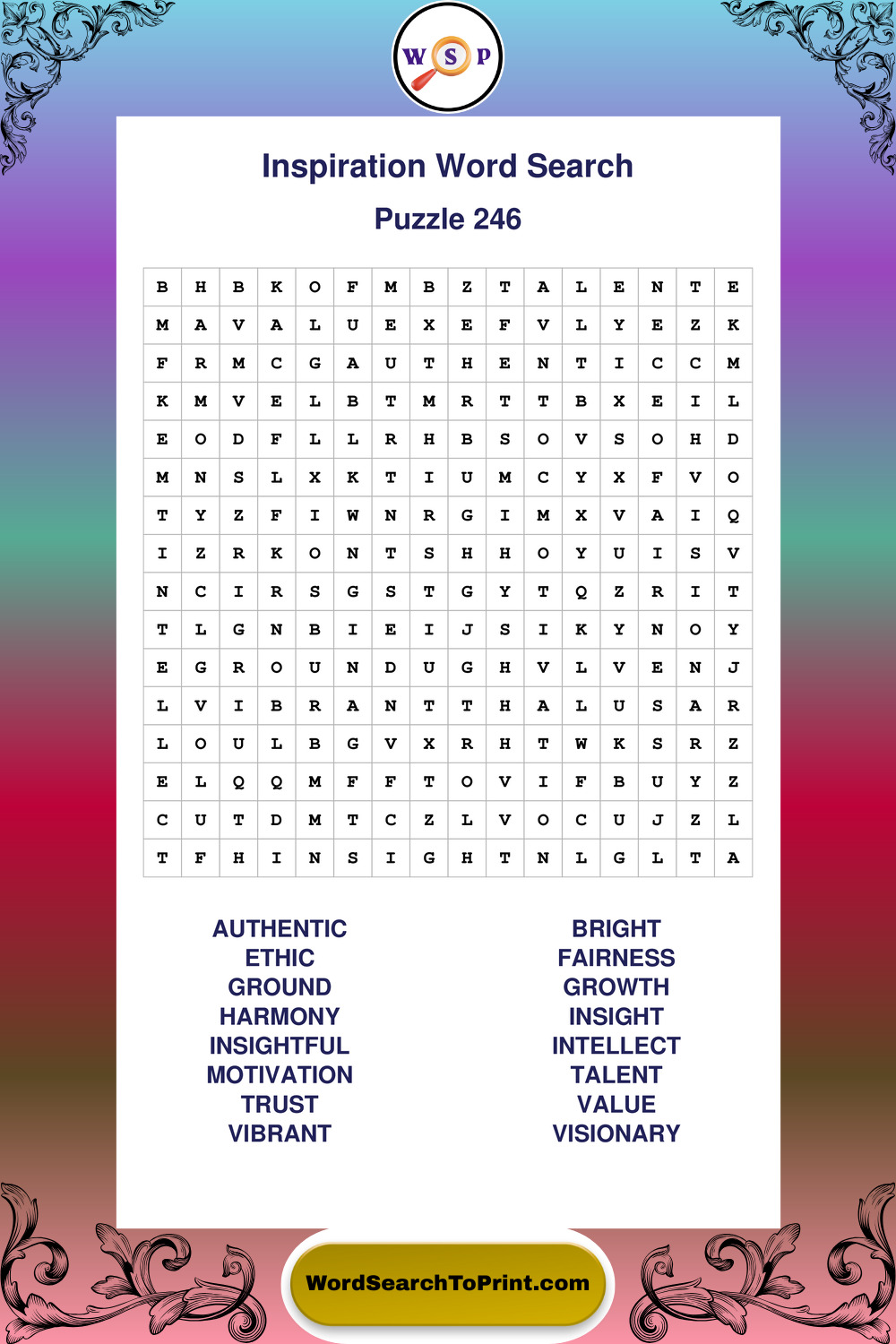Printable Inspiration Wordsearch Puzzles