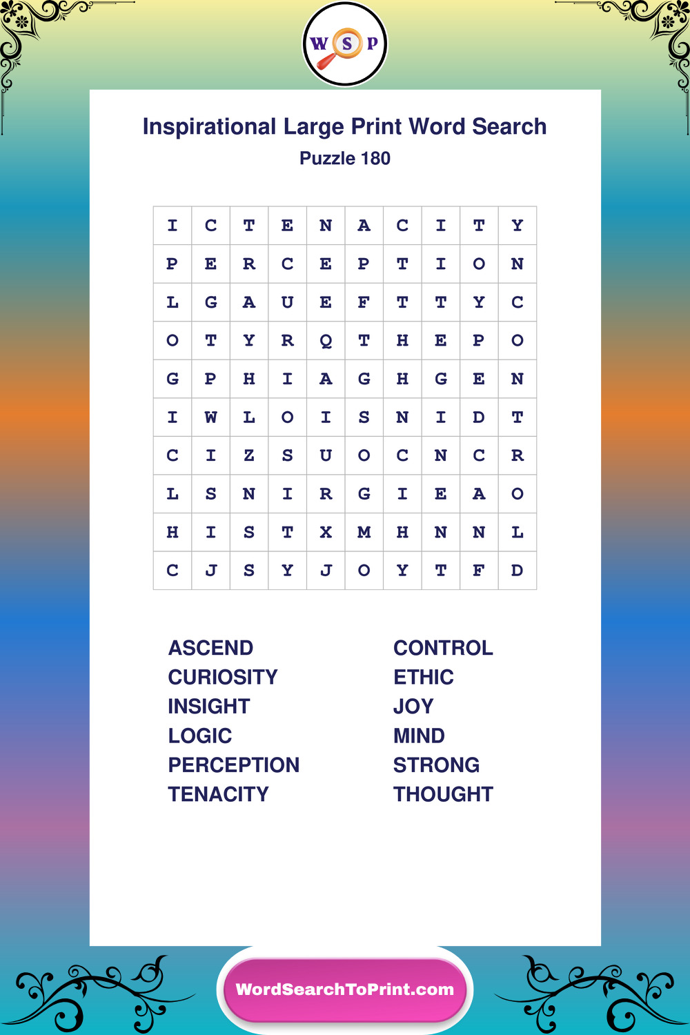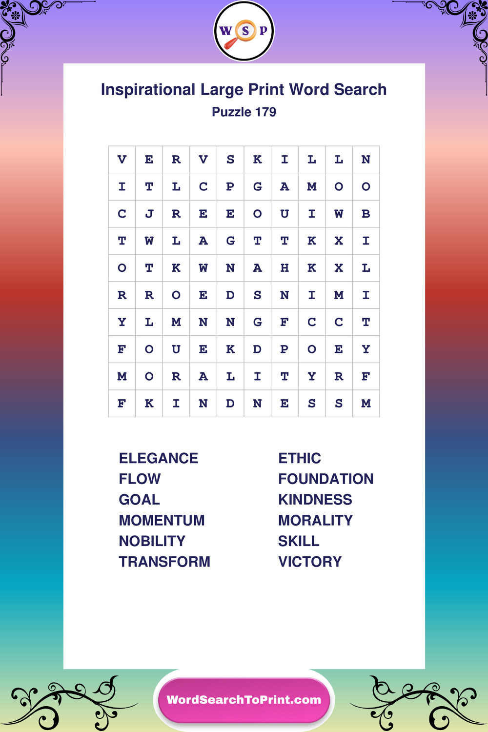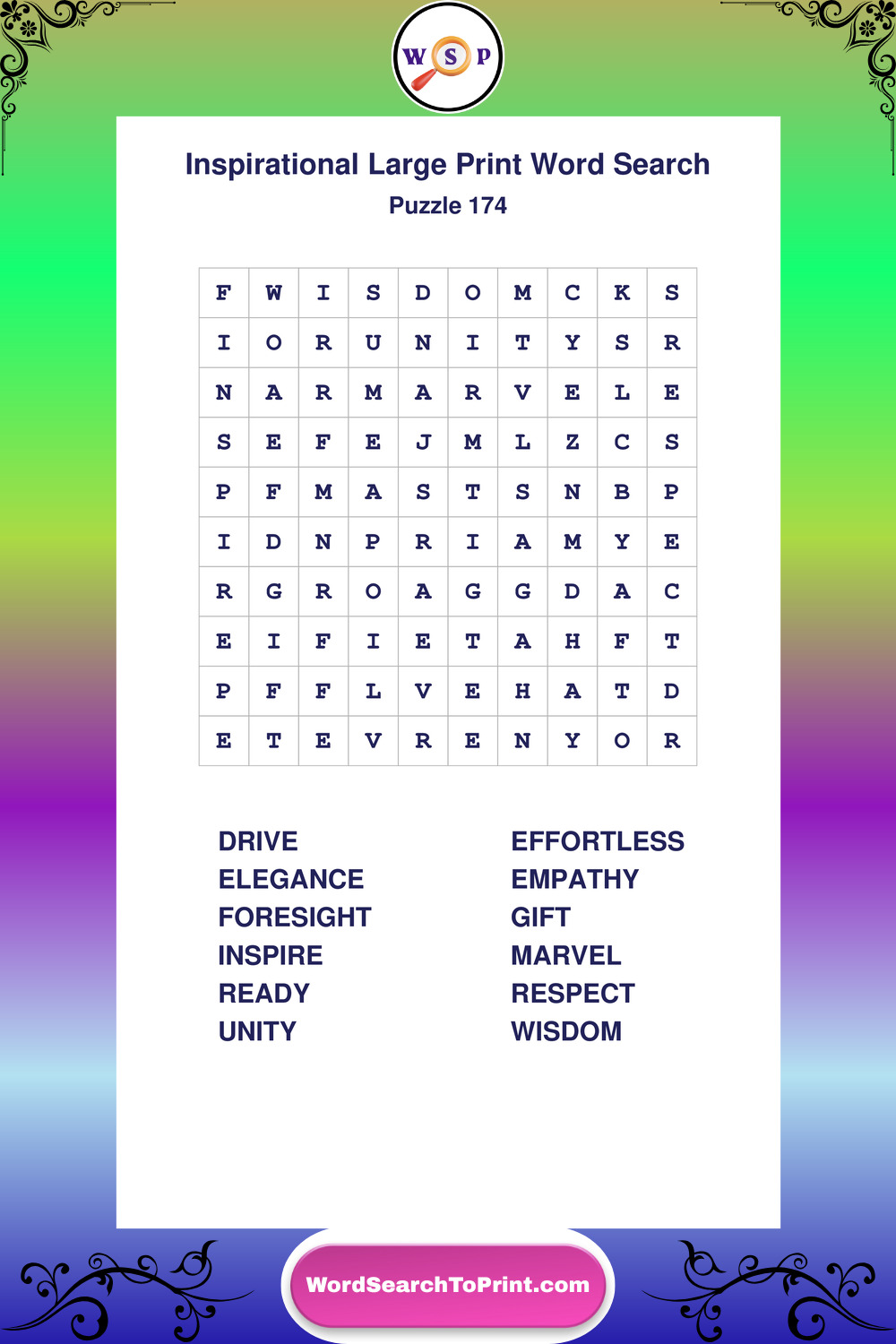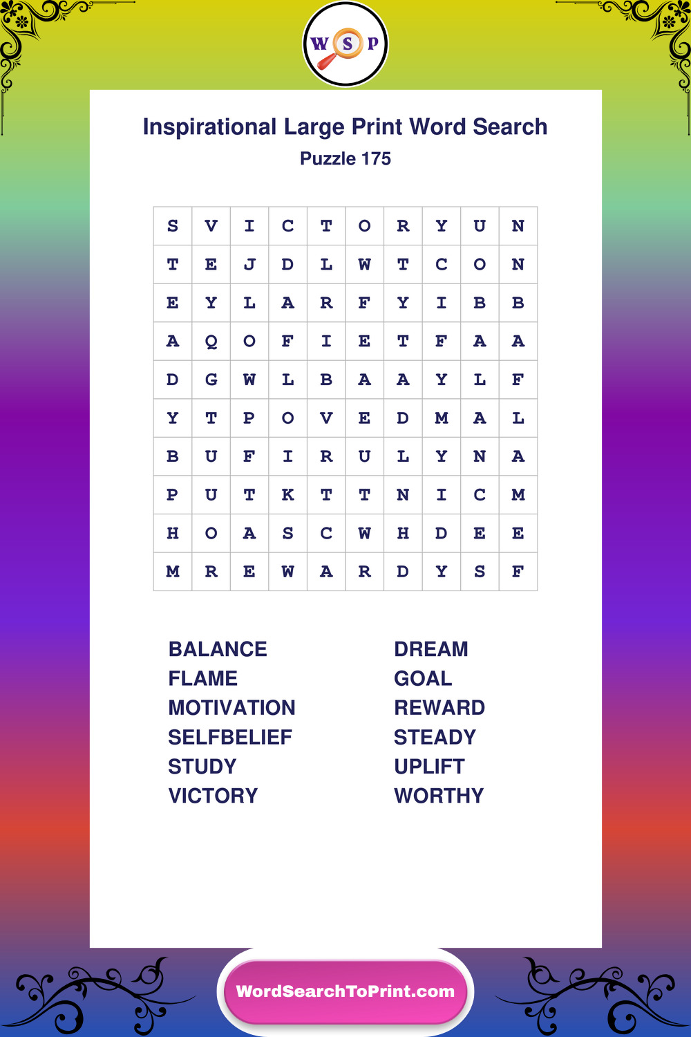 Discover free printable Large Print Inspirational wordsearches β€” a fun way to boost positivity and motivation. Click any puzzle below to print or download instantly.