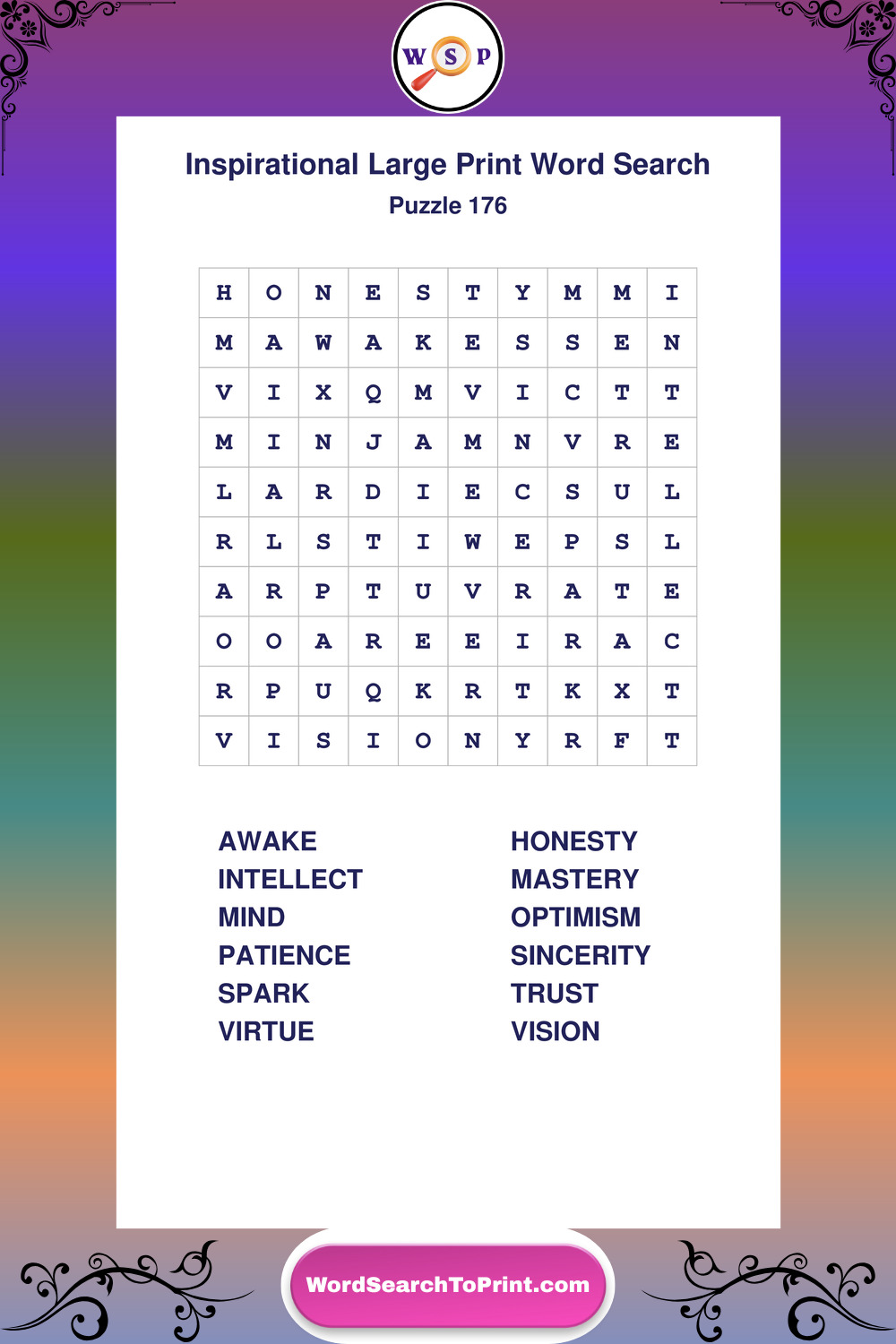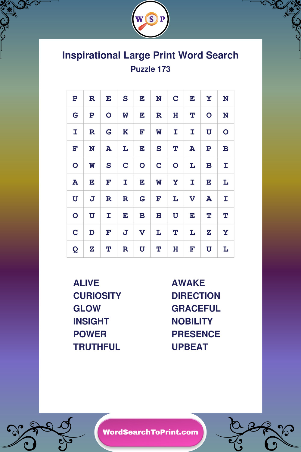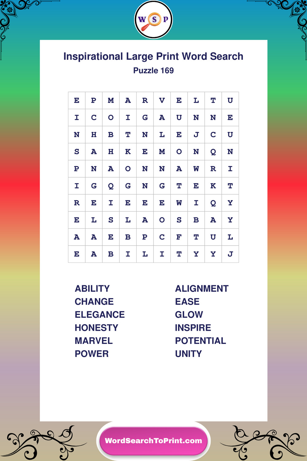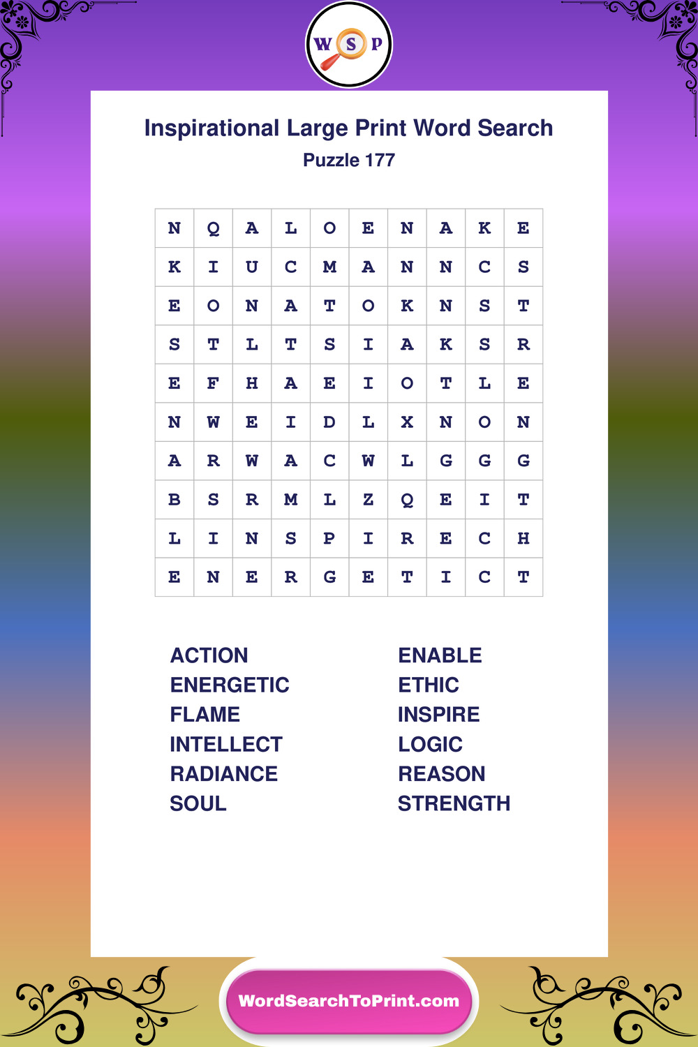 Discover free printable Large Print Inspirational wordsearches β€” a fun way to boost positivity and motivation. Click any puzzle below to print or download instantly.