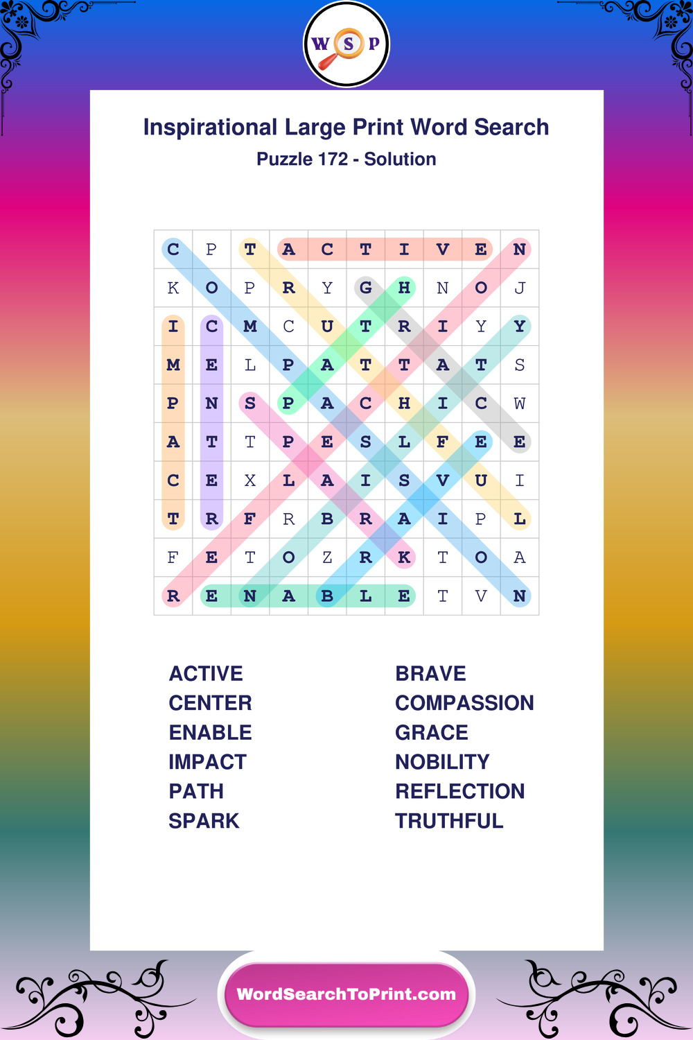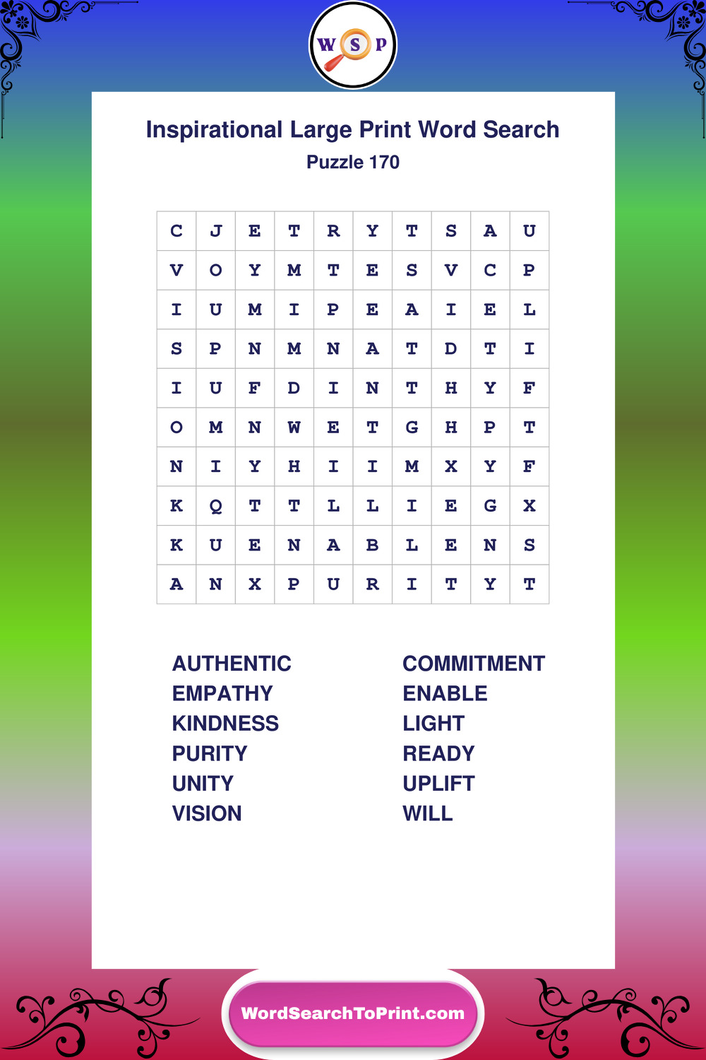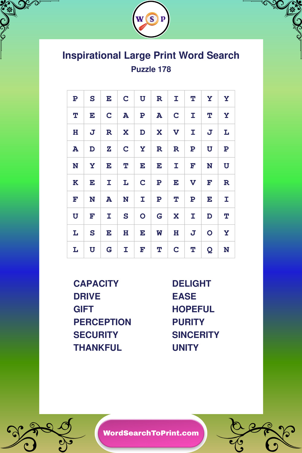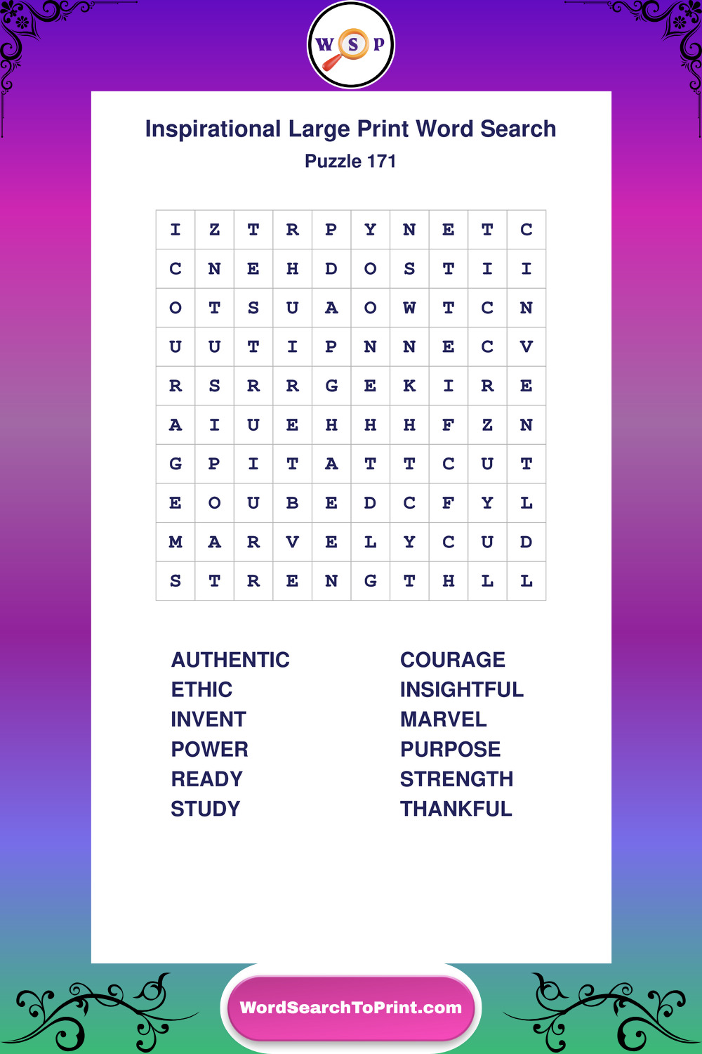 Discover free printable Large Print Inspirational wordsearches β€” a fun way to boost positivity and motivation. Click any puzzle below to print or download instantly.