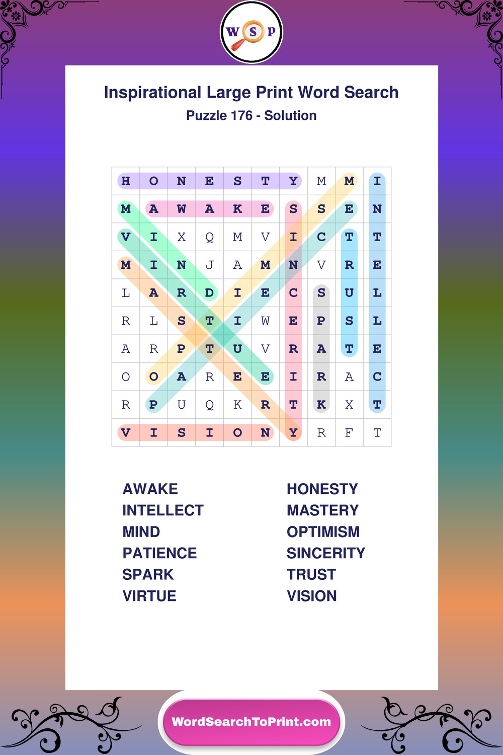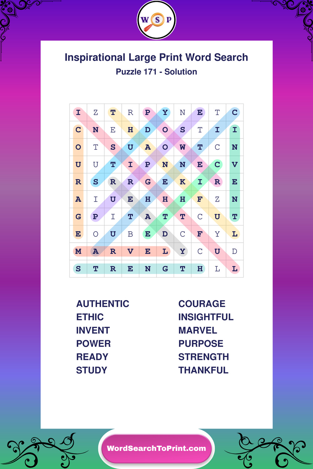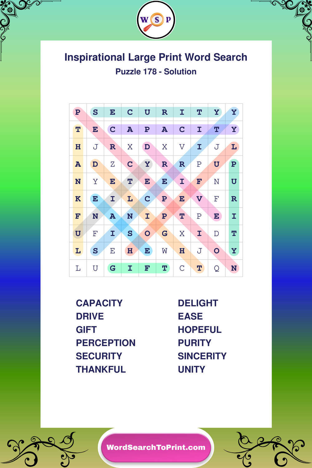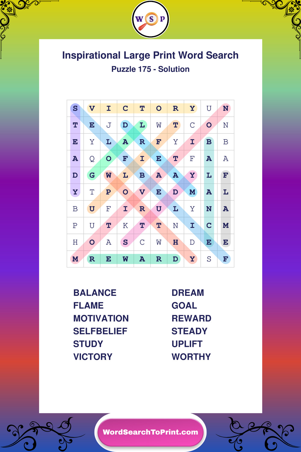 Discover free printable Large Print Inspirational wordsearches β€” a fun way to boost positivity and motivation. Click any puzzle below to print or download instantly.