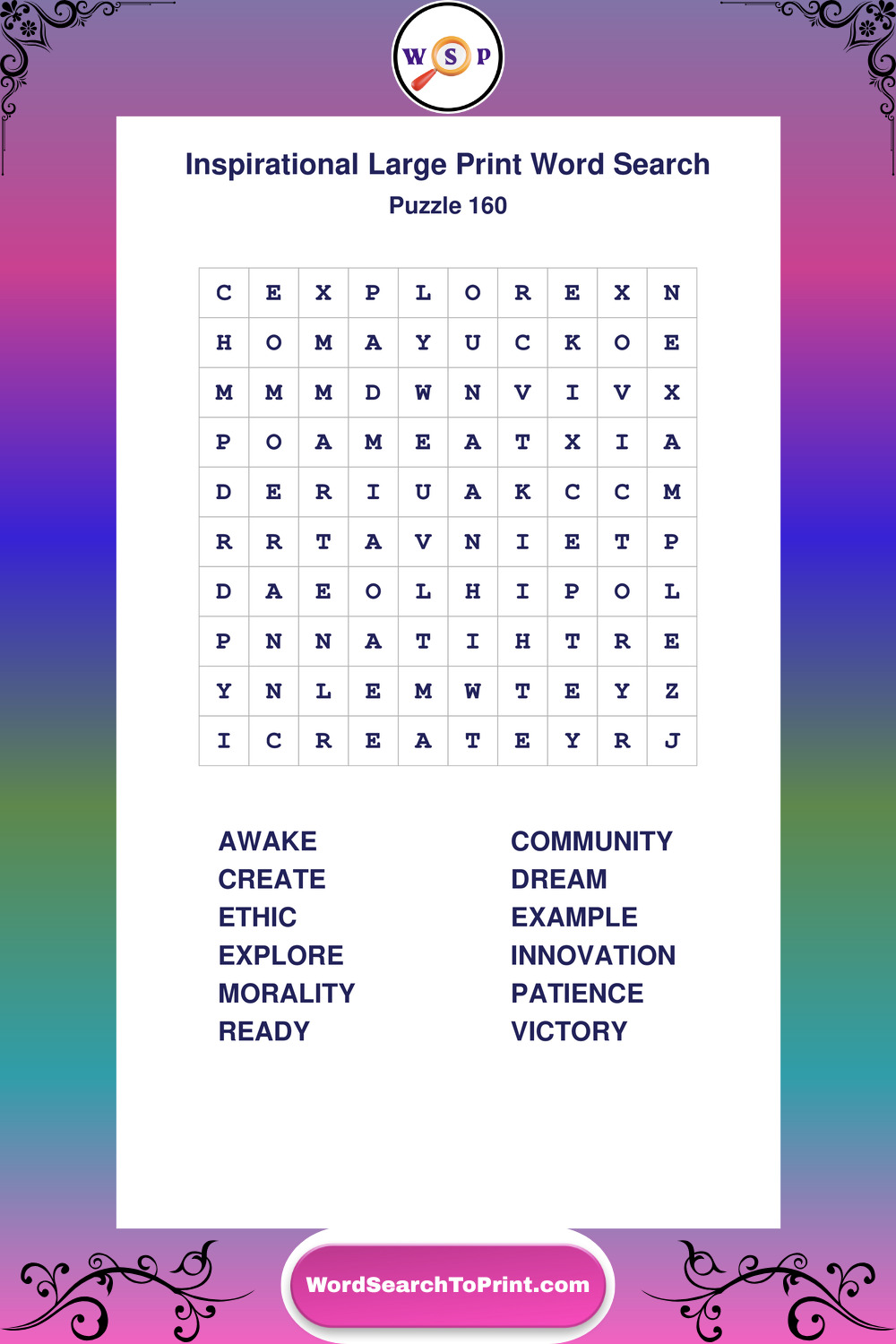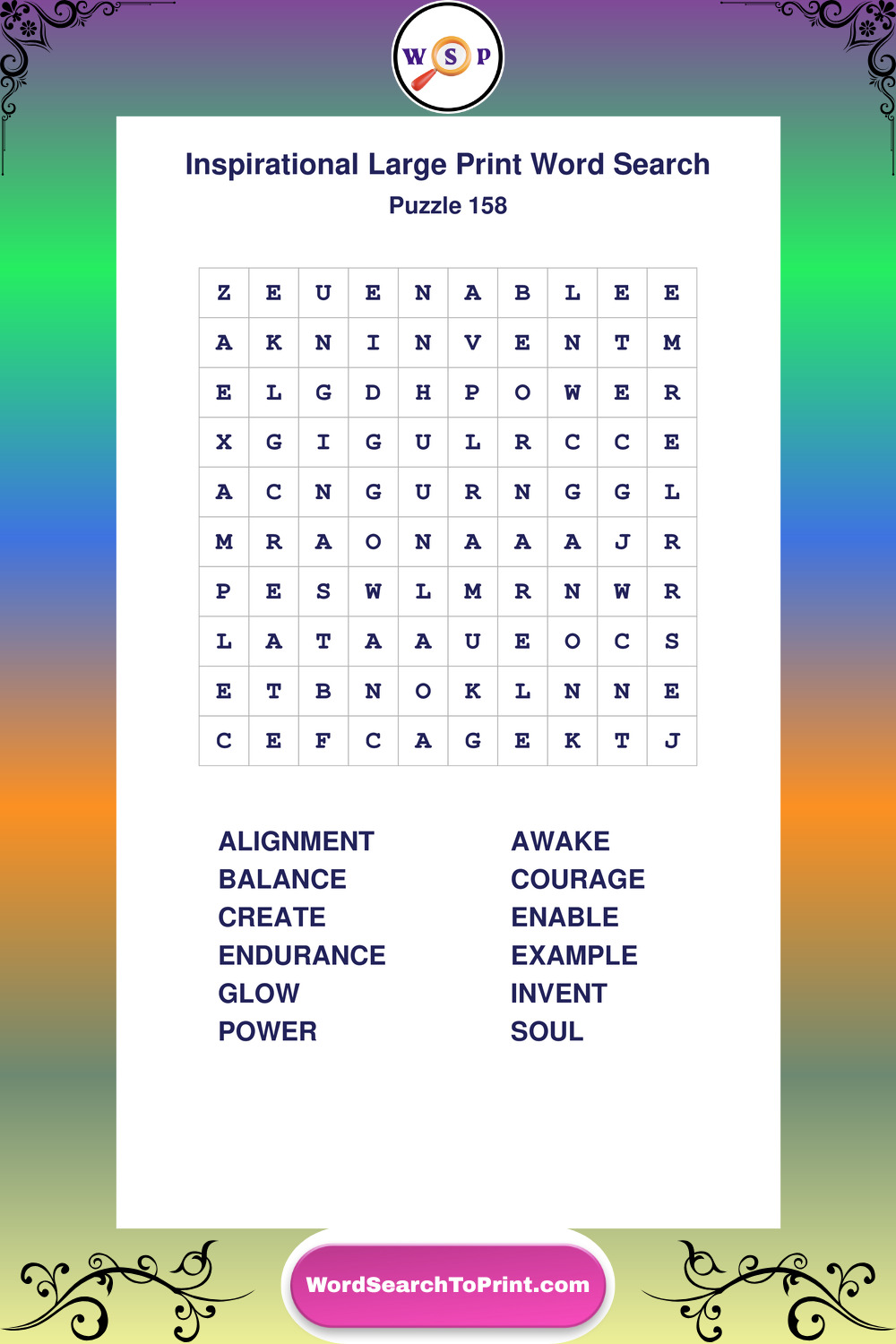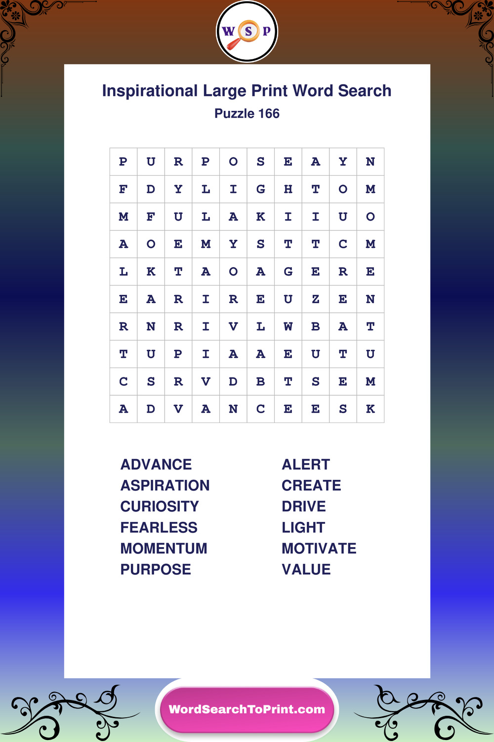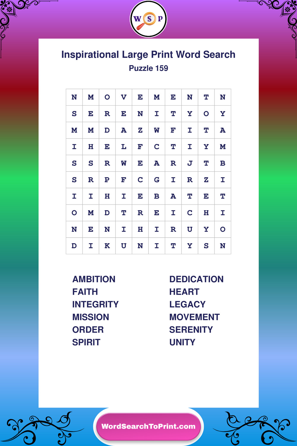 Discover free printable Large Print Inspirational wordsearches β€” a fun way to boost positivity and motivation. Click any puzzle below to print or download instantly.