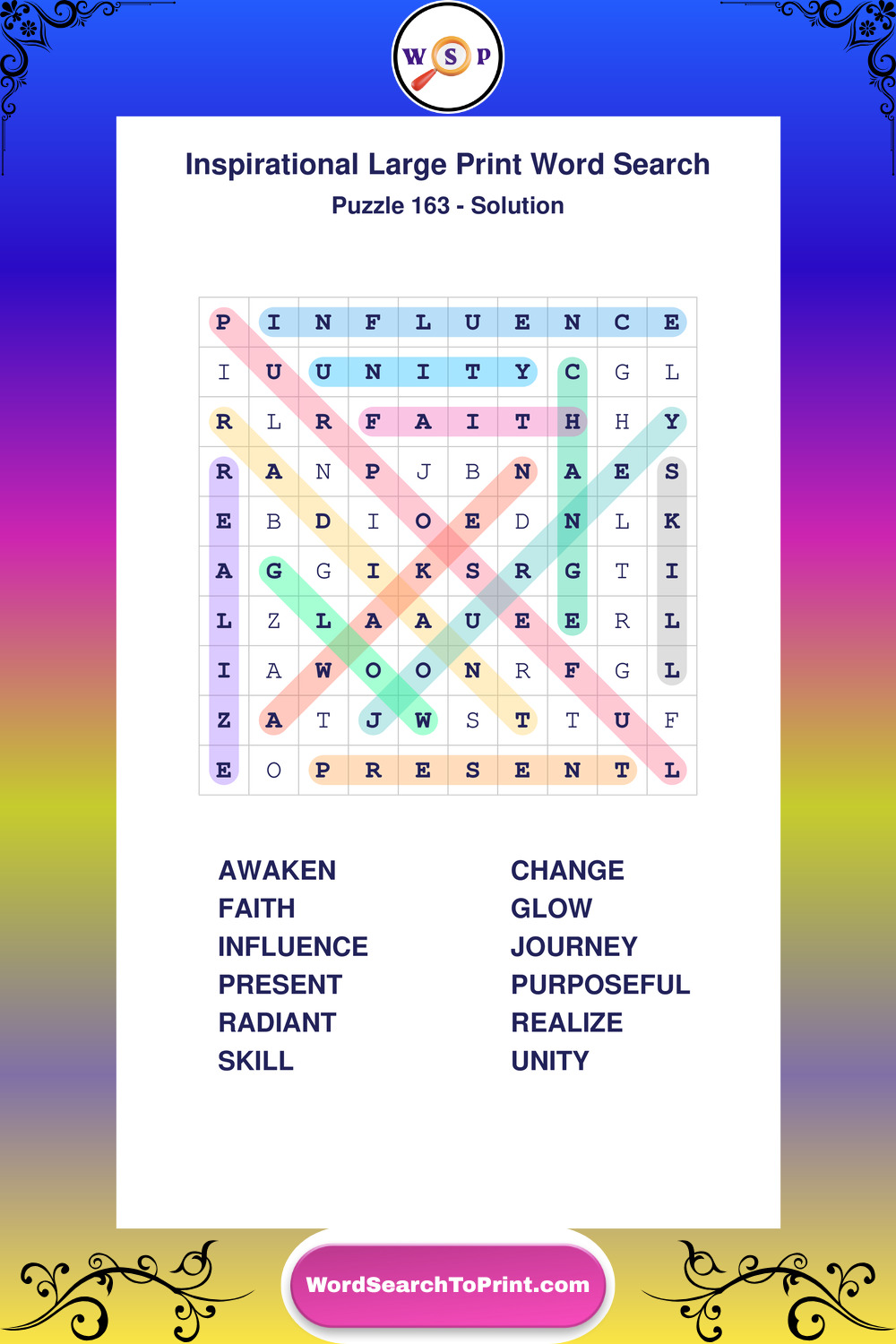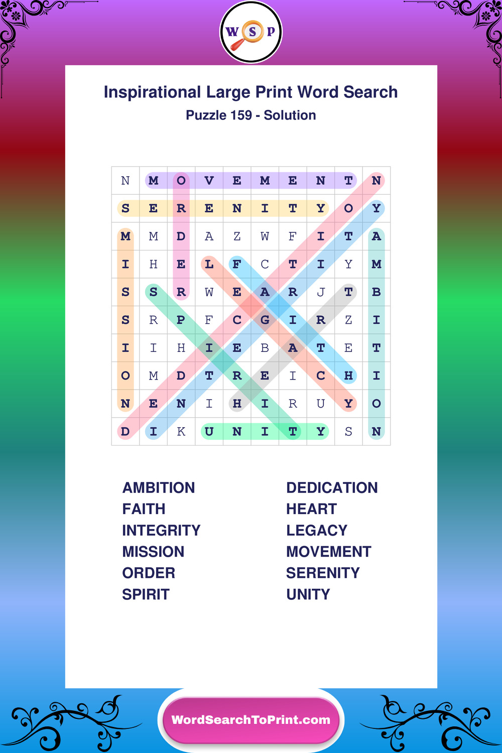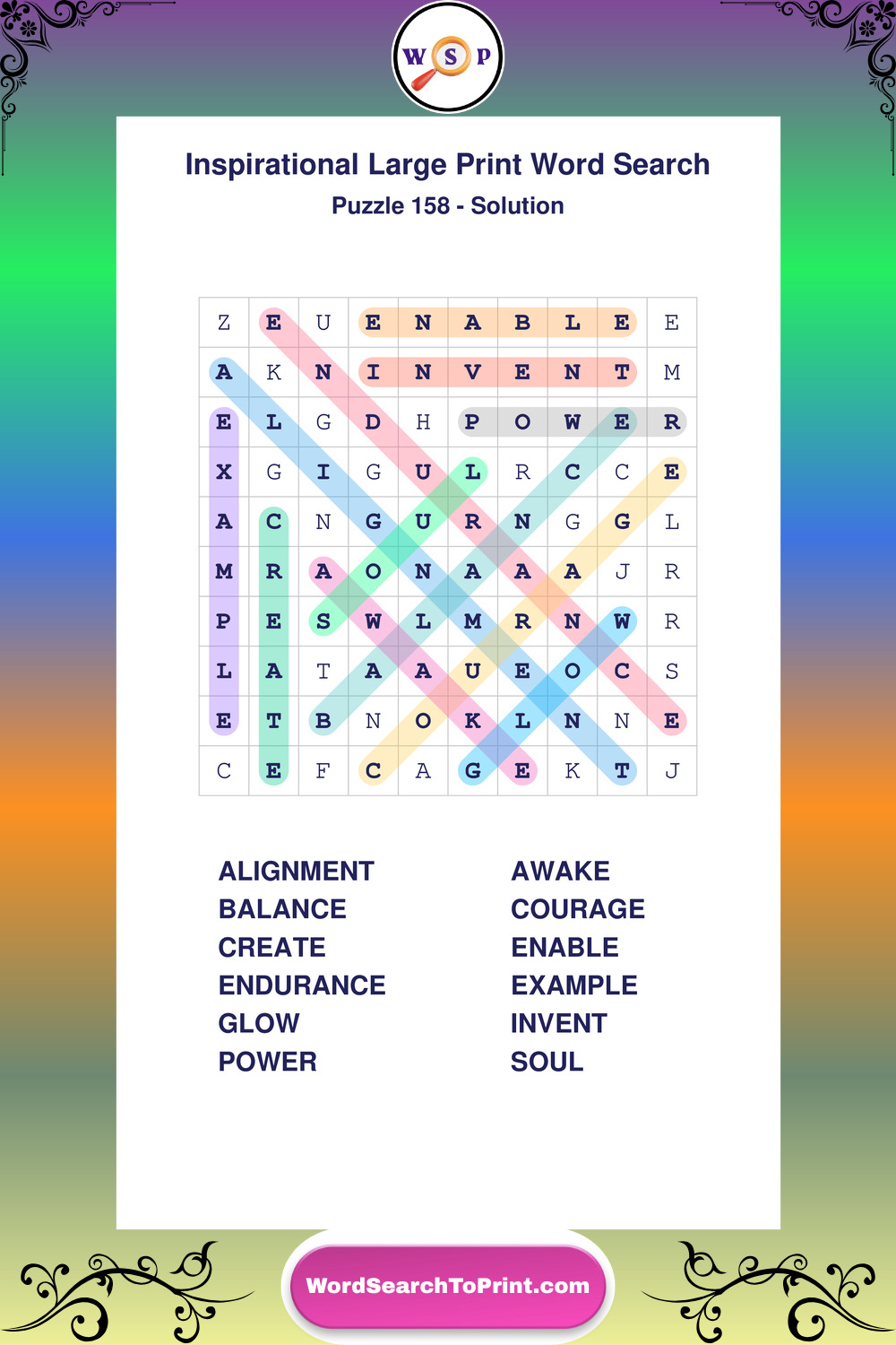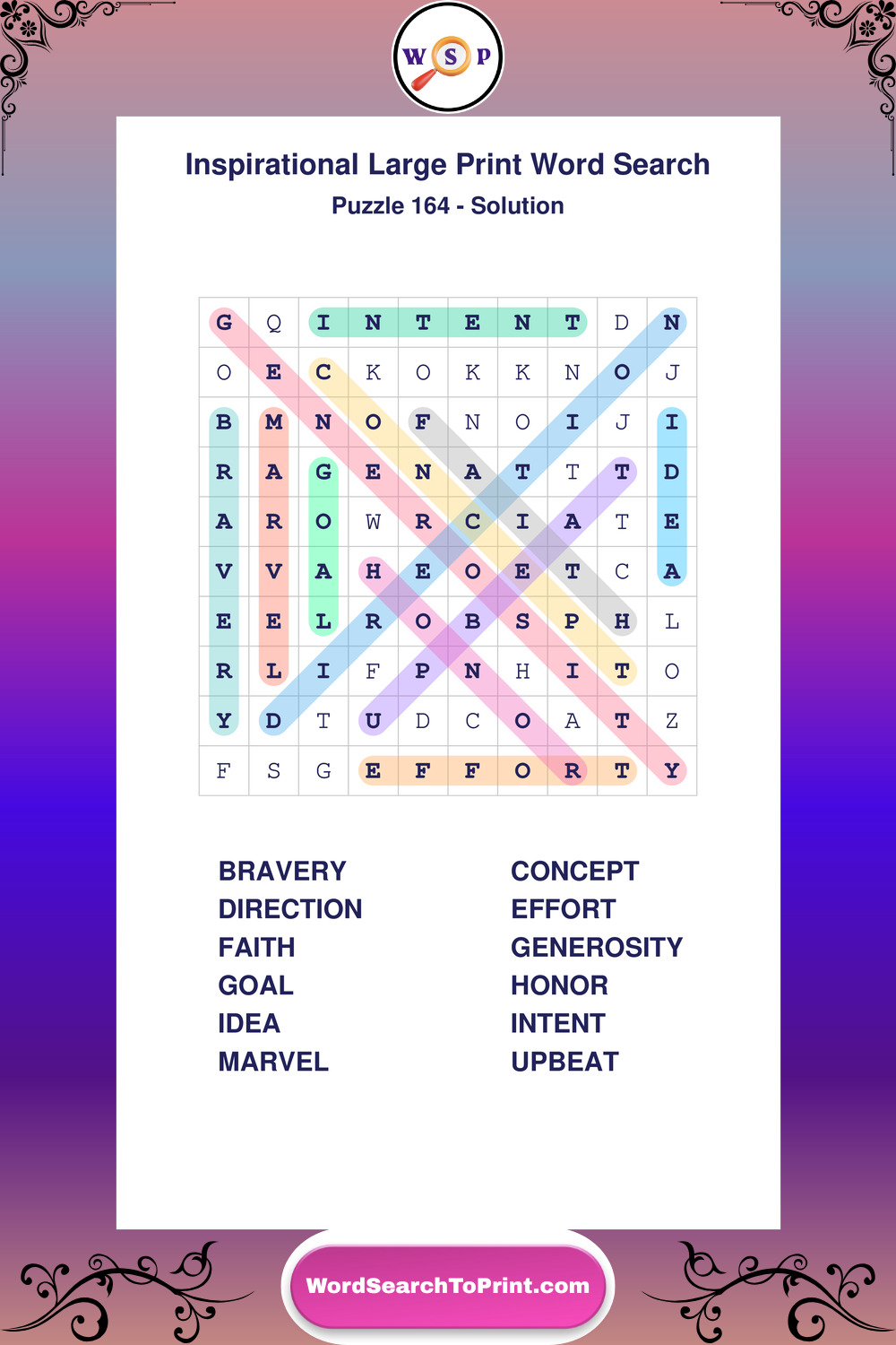 Discover free printable Large Print Inspirational wordsearches β€” a fun way to boost positivity and motivation. Click any puzzle below to print or download instantly.
