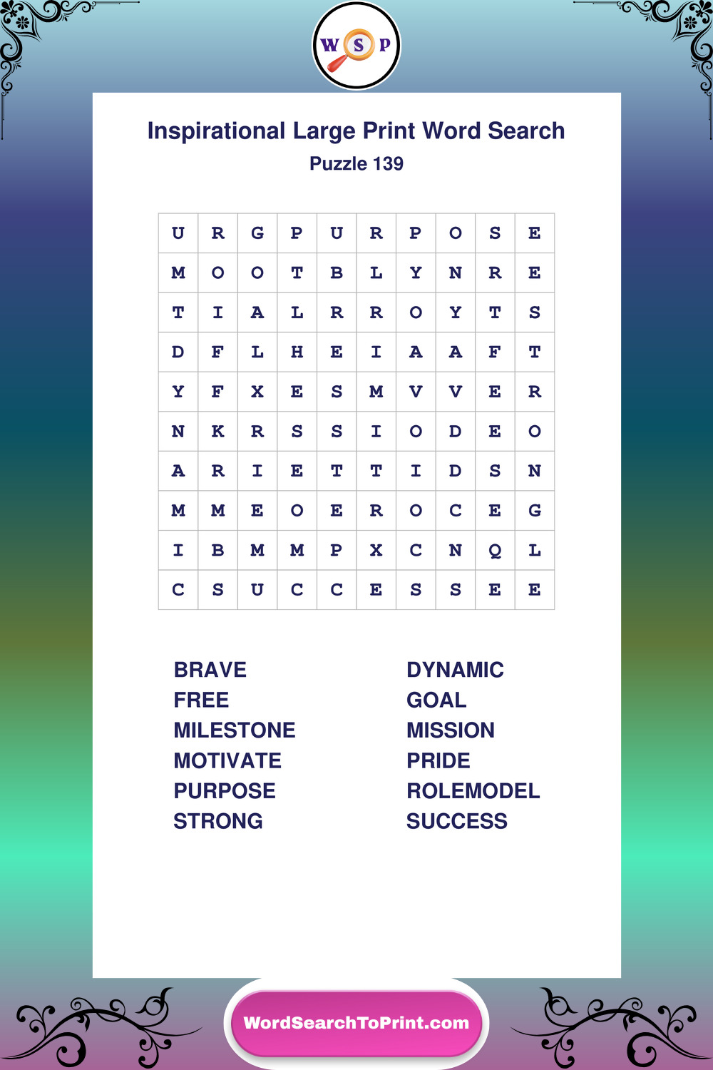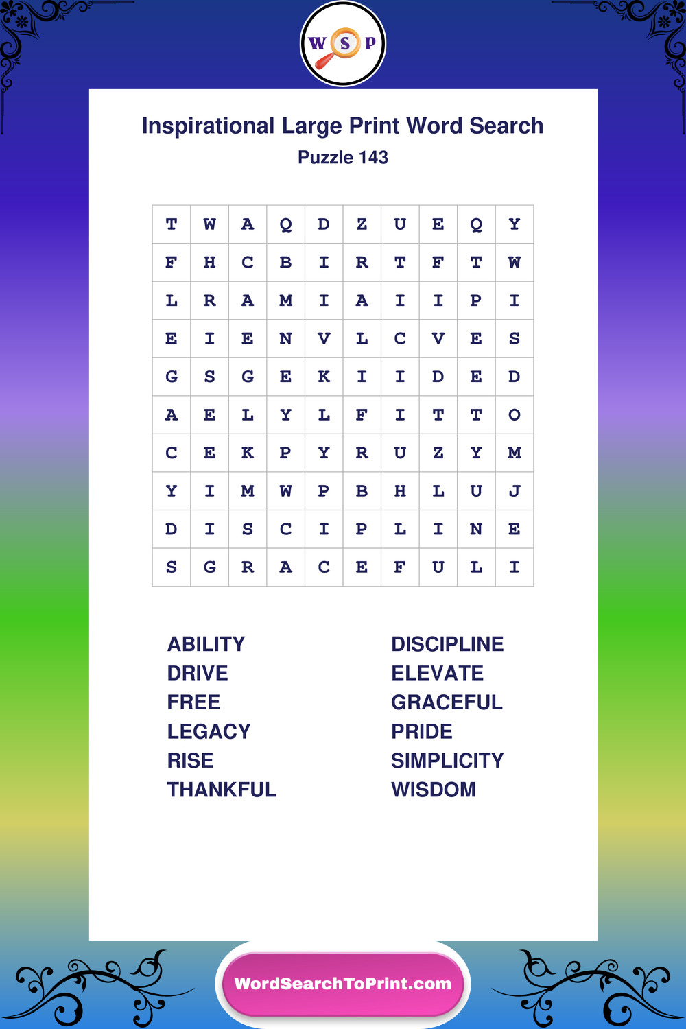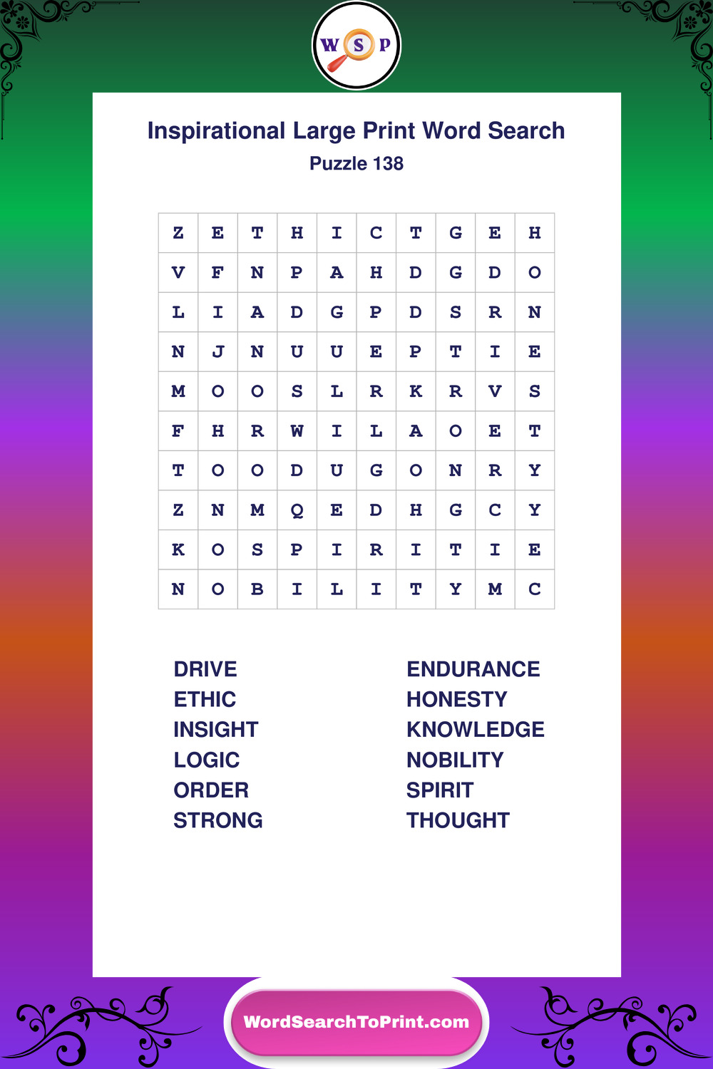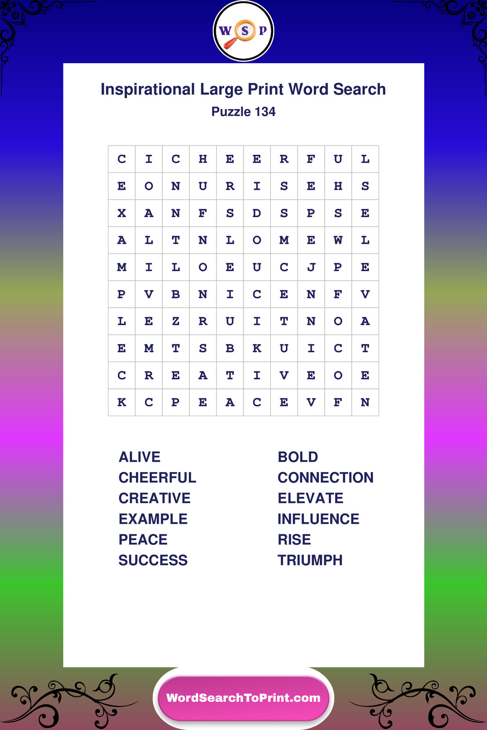 Discover free printable Large Print Inspirational wordsearches β€” a fun way to boost positivity and motivation. Click any puzzle below to print or download instantly.