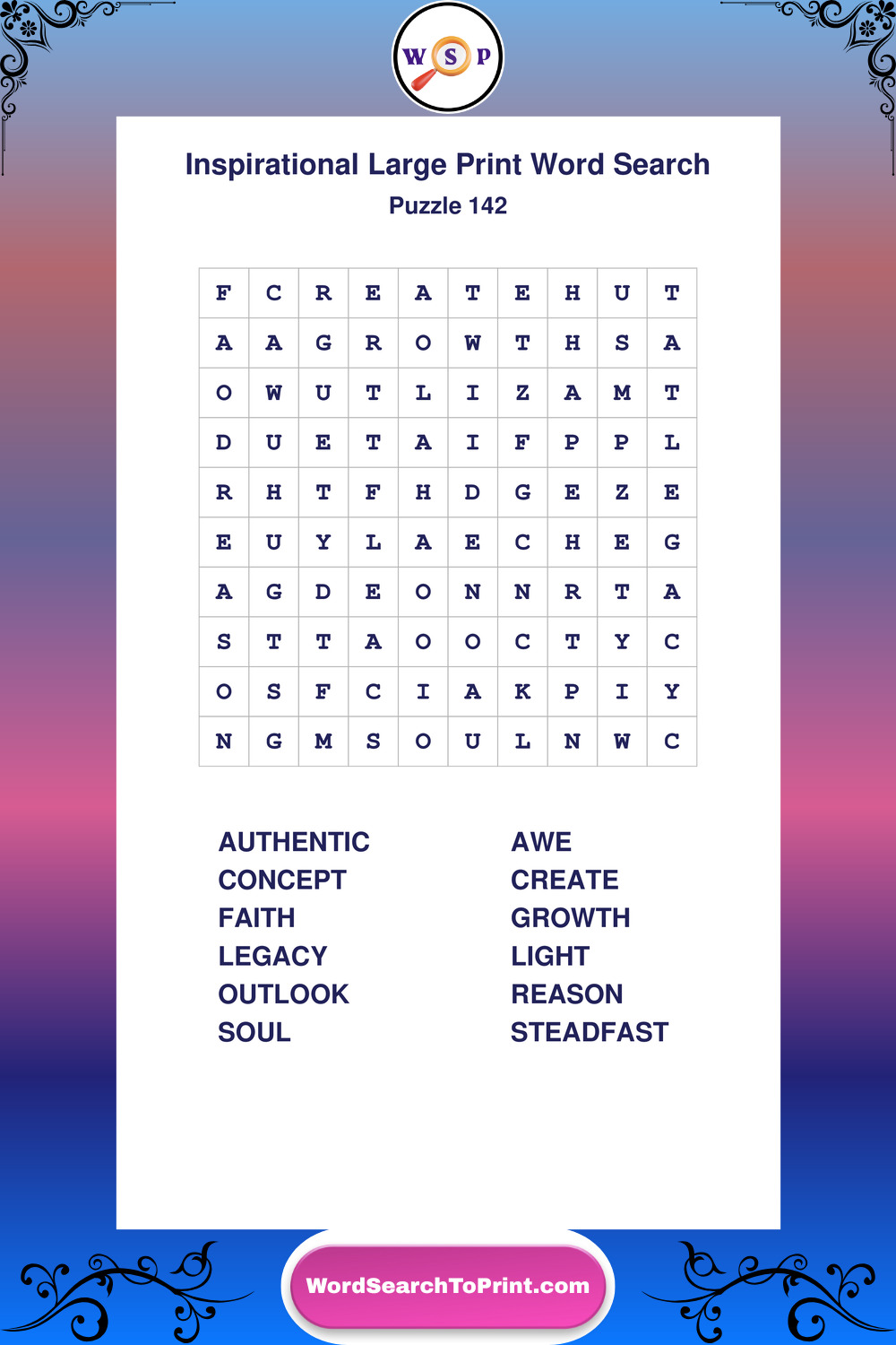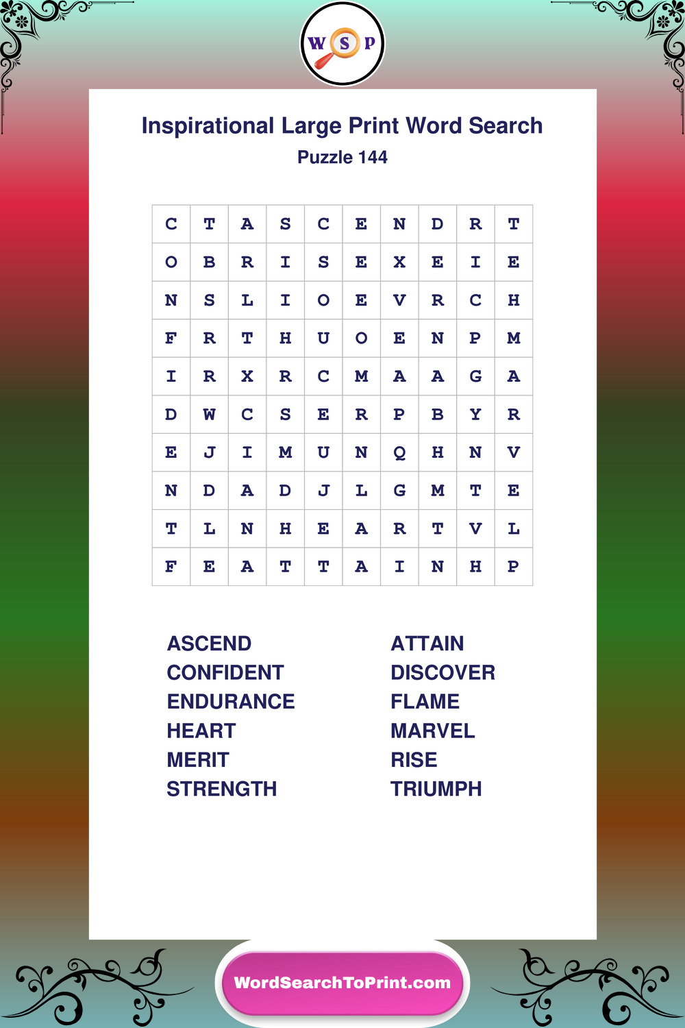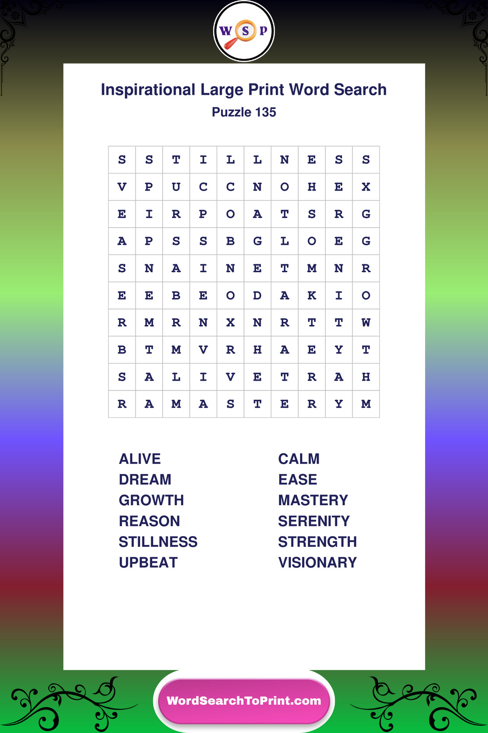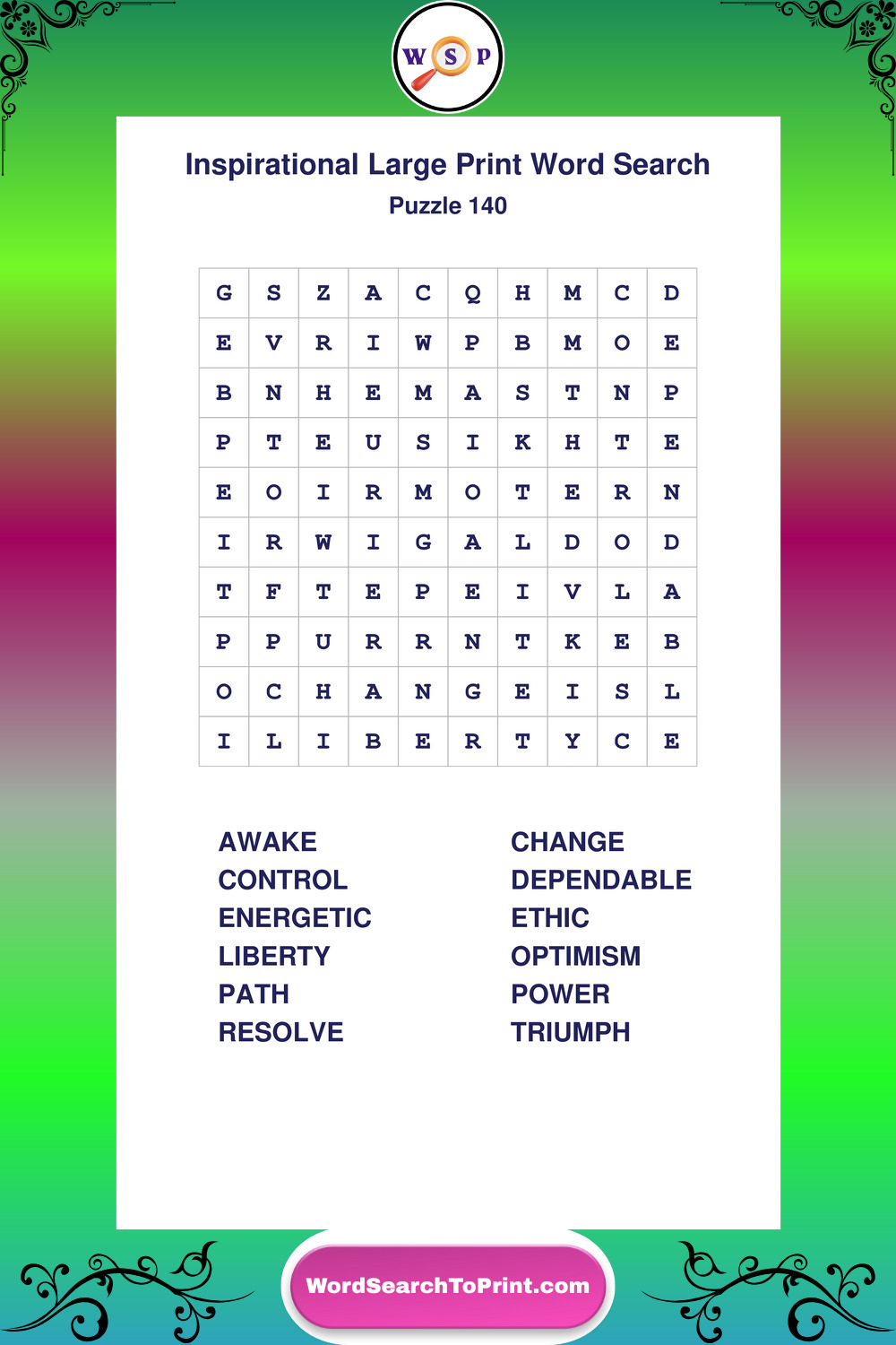 Discover free printable Large Print Inspirational wordsearches β€” a fun way to boost positivity and motivation. Click any puzzle below to print or download instantly.