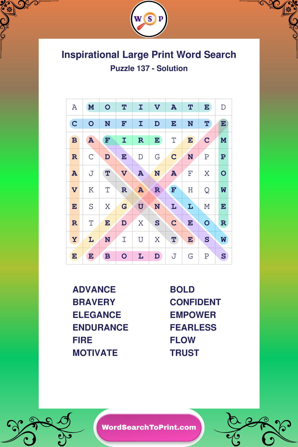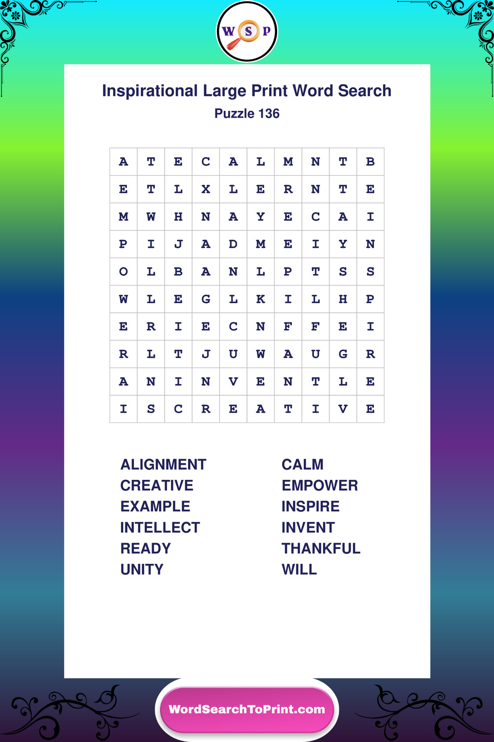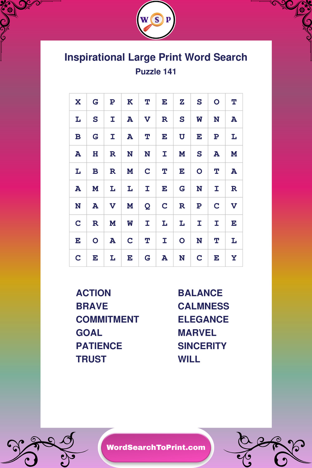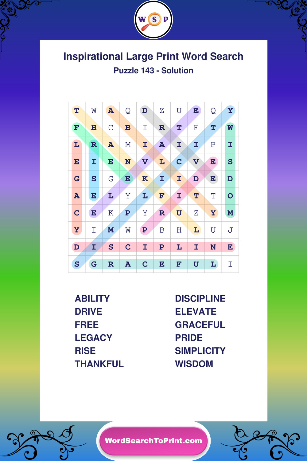 Discover free printable Large Print Inspirational wordsearches β€” a fun way to boost positivity and motivation. Click any puzzle below to print or download instantly.
