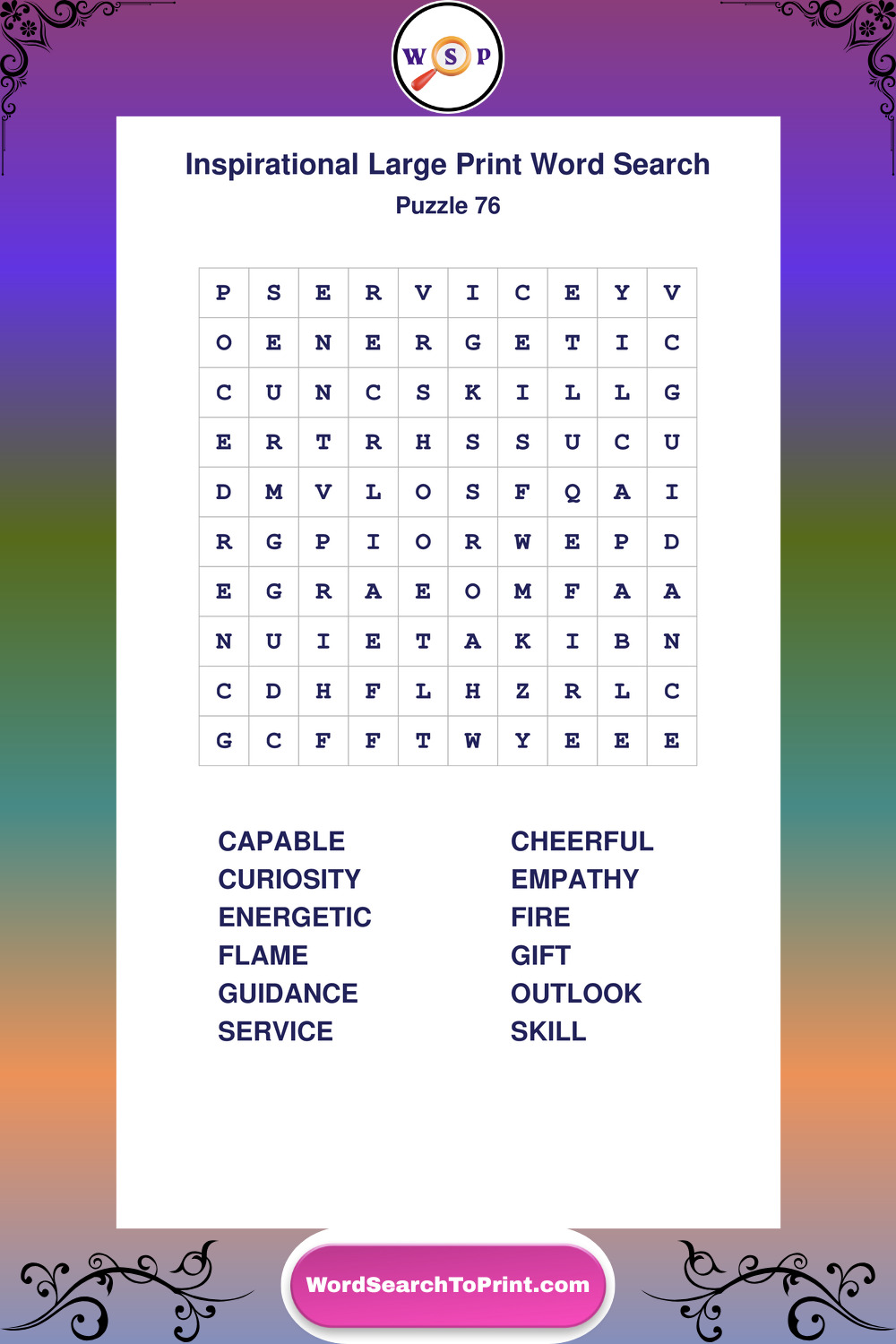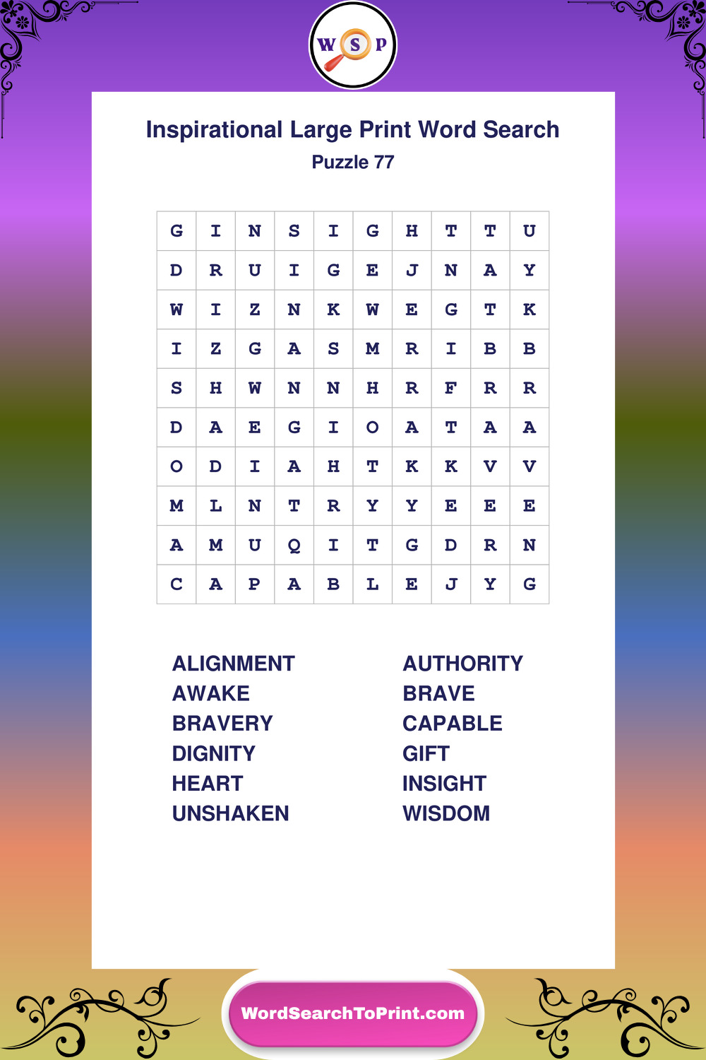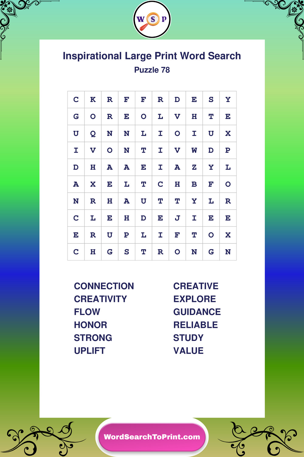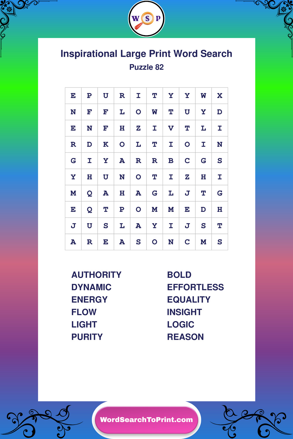 Discover free printable Large Print Inspirational wordsearches β€” a fun way to boost positivity and motivation. Click any puzzle below to print or download instantly.