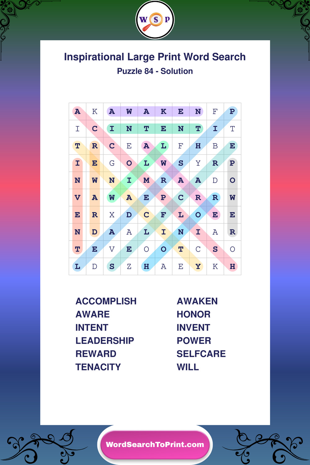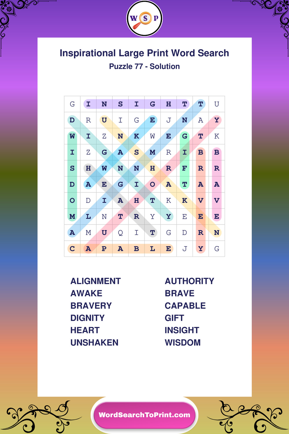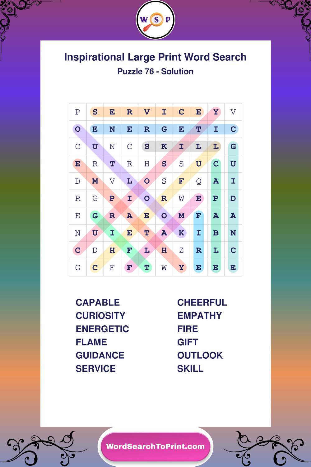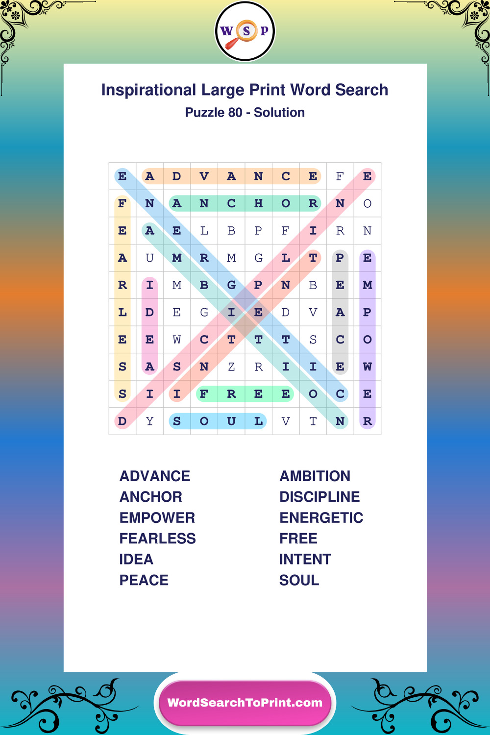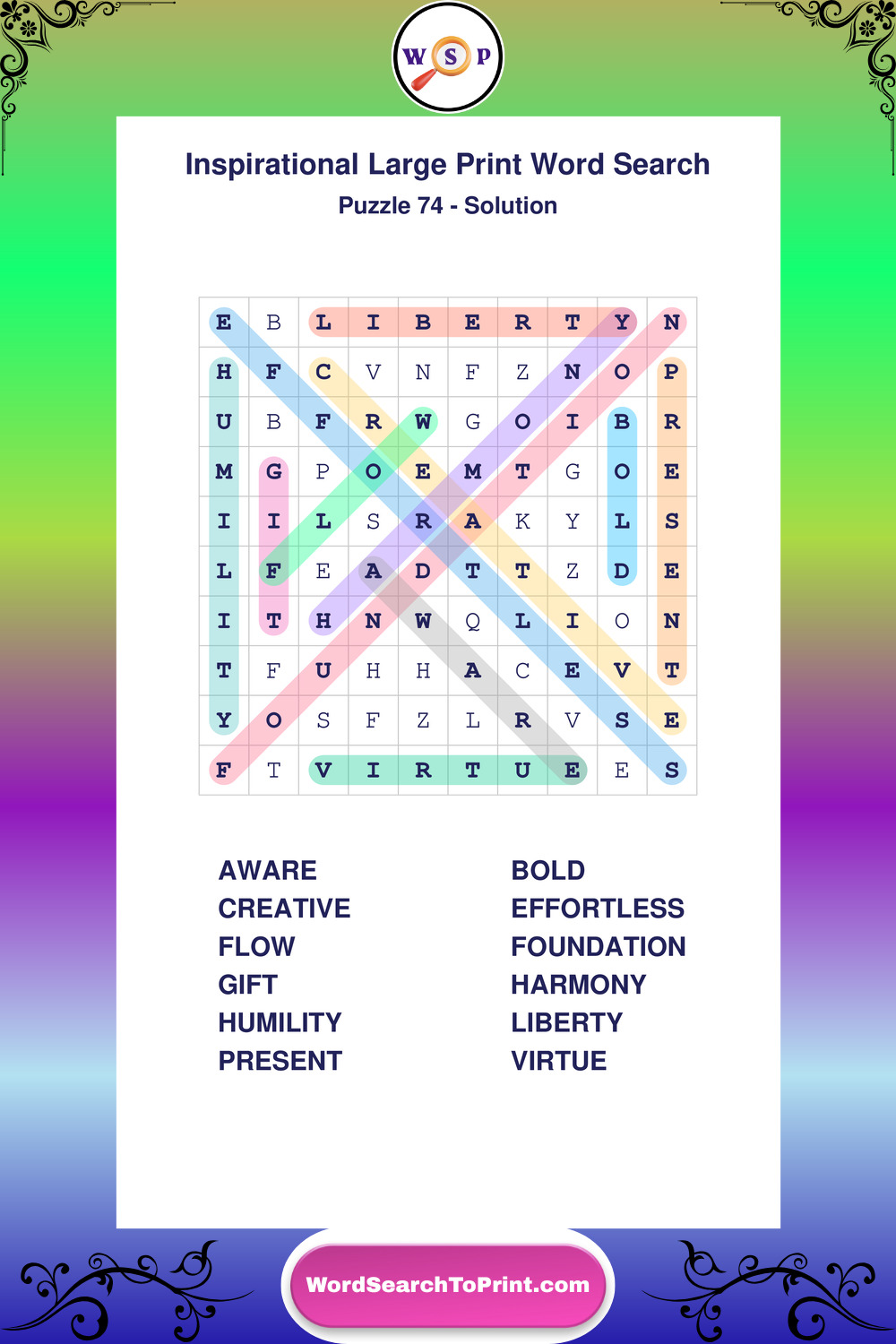 Discover free printable Large Print Inspirational wordsearches β€” a fun way to boost positivity and motivation. Click any puzzle below to print or download instantly.