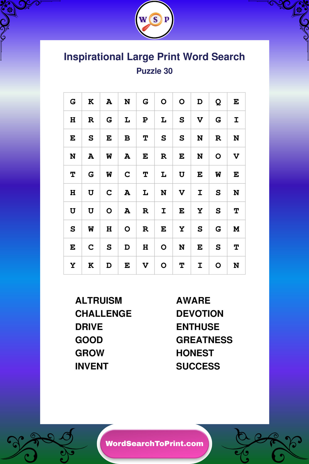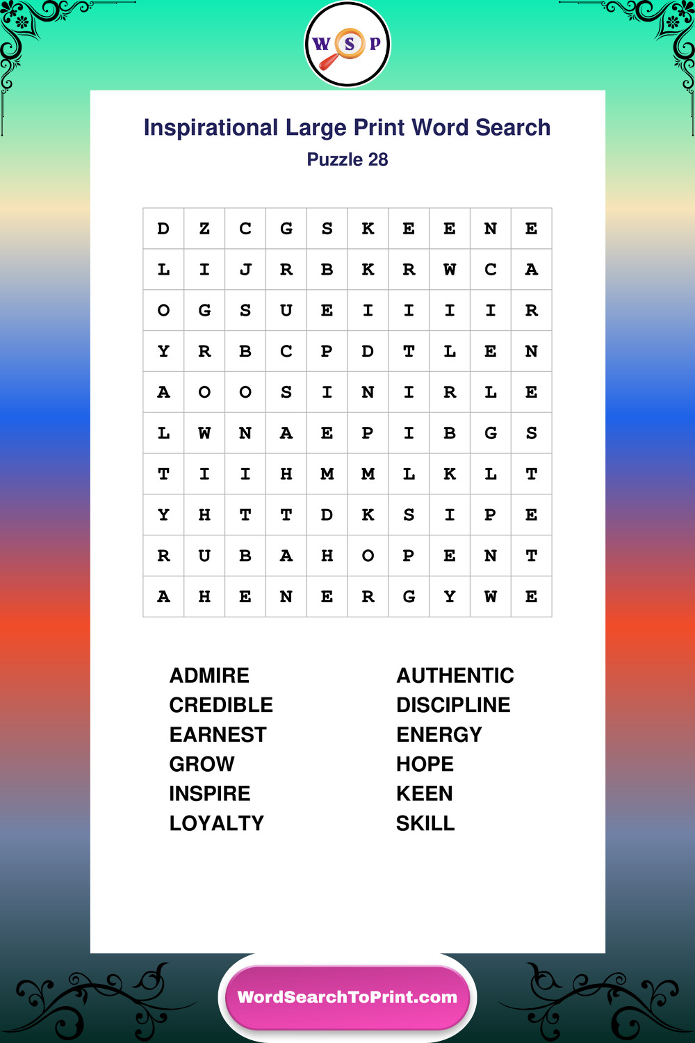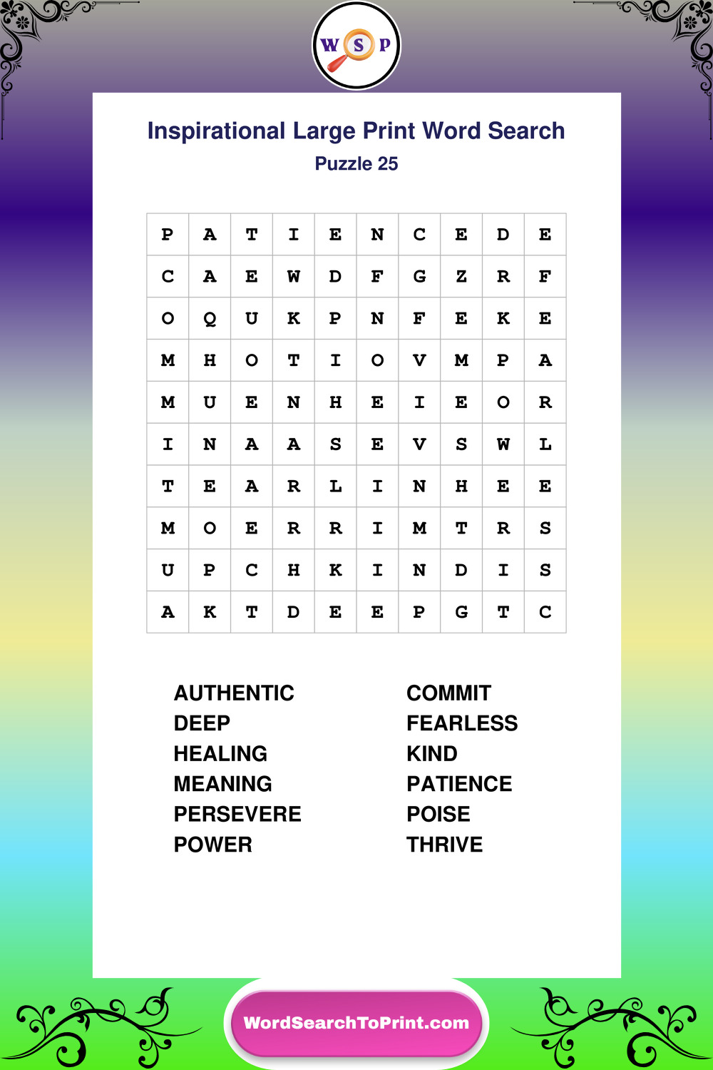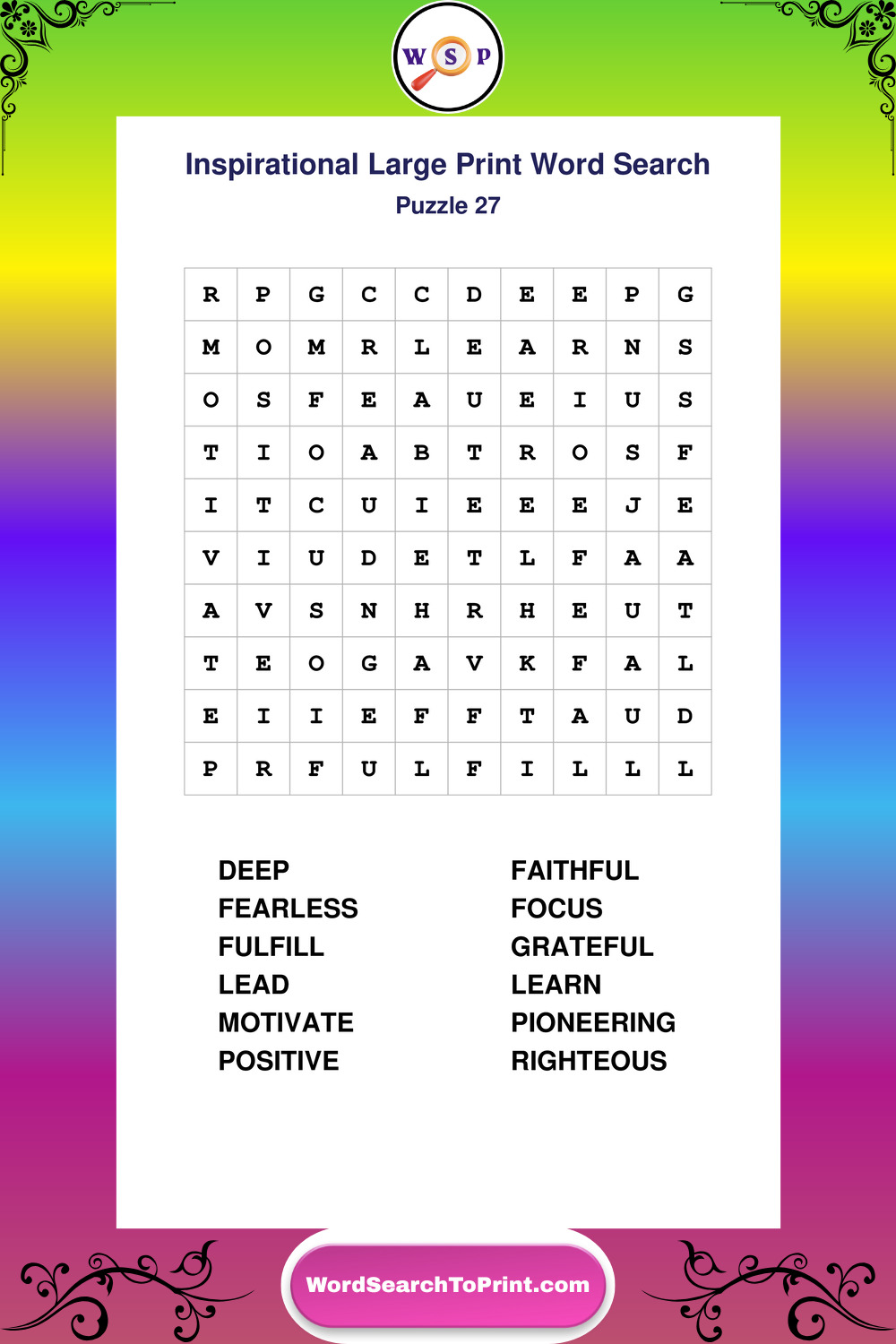 Discover free printable Large Print Inspirational wordsearches β€” a fun way to boost positivity and motivation. Click any puzzle below to print or download instantly.