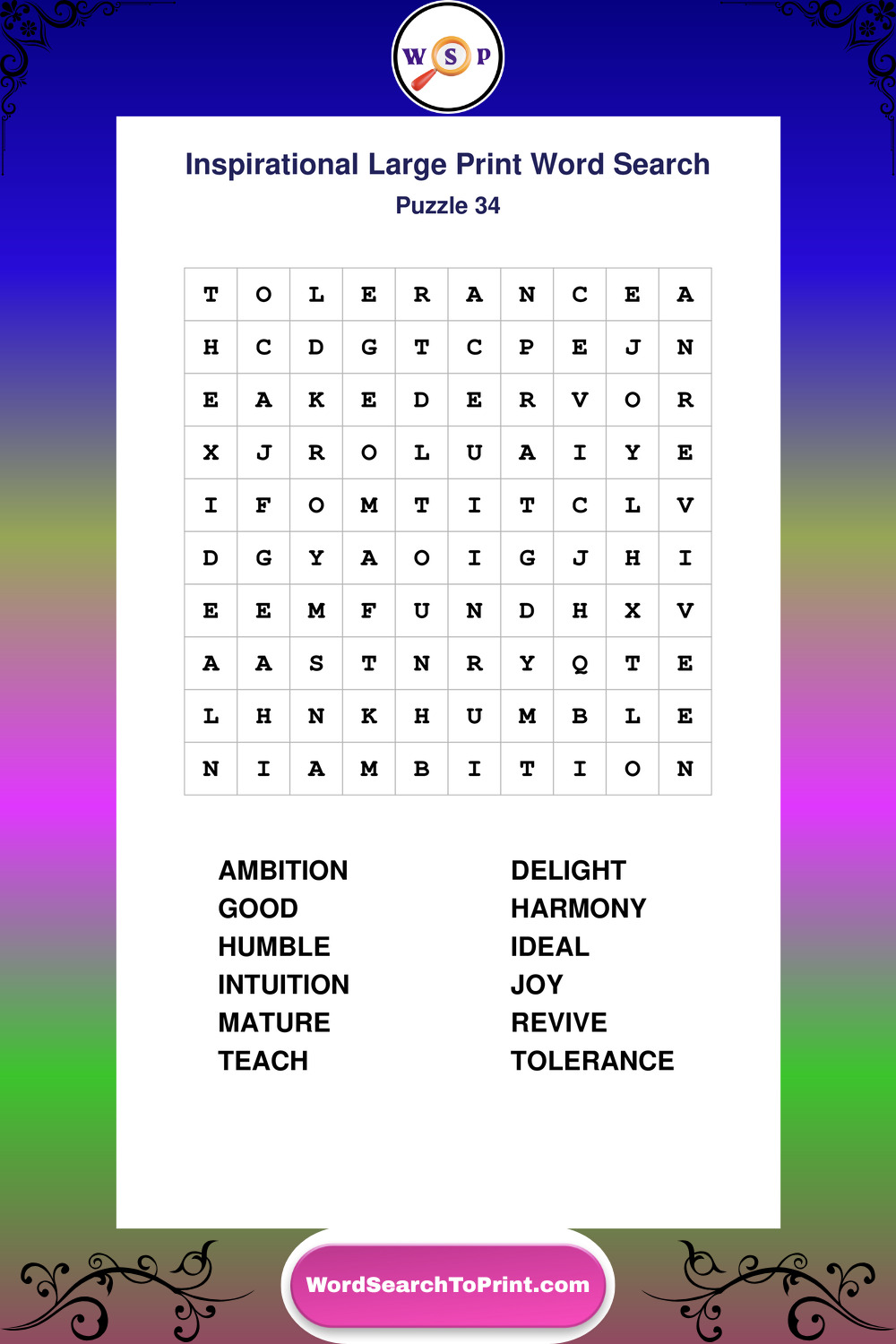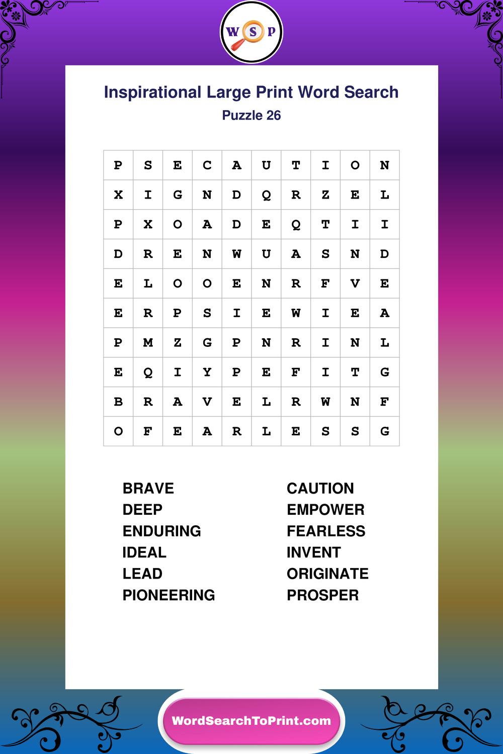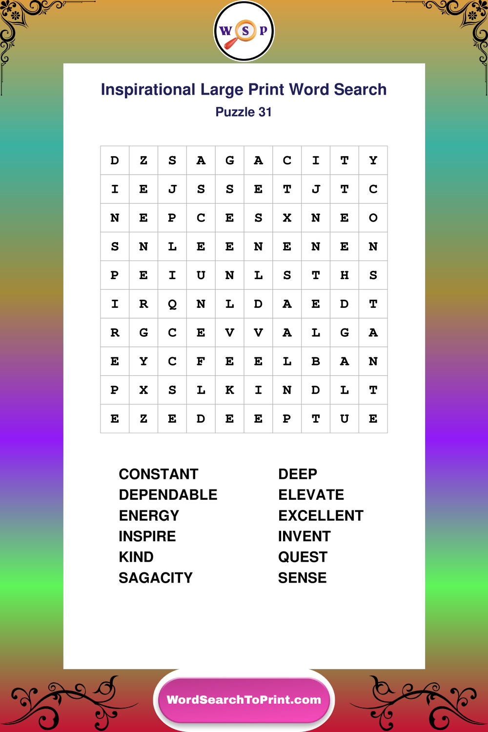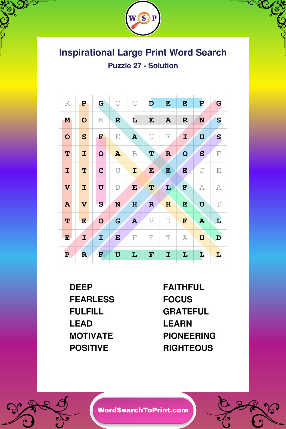 Discover free printable Large Print Inspirational wordsearches β€” a fun way to boost positivity and motivation. Click any puzzle below to print or download instantly.