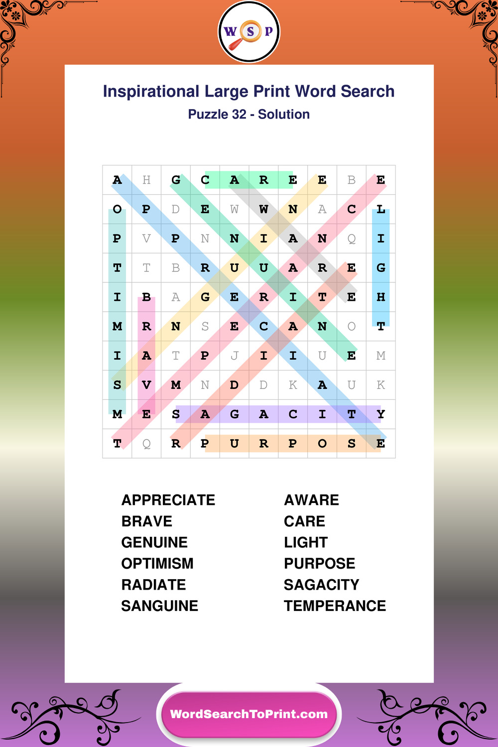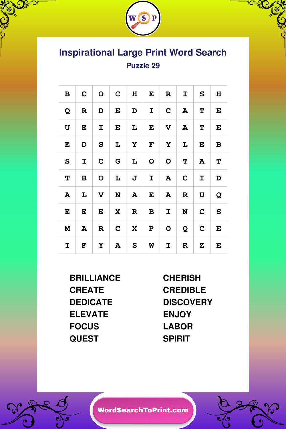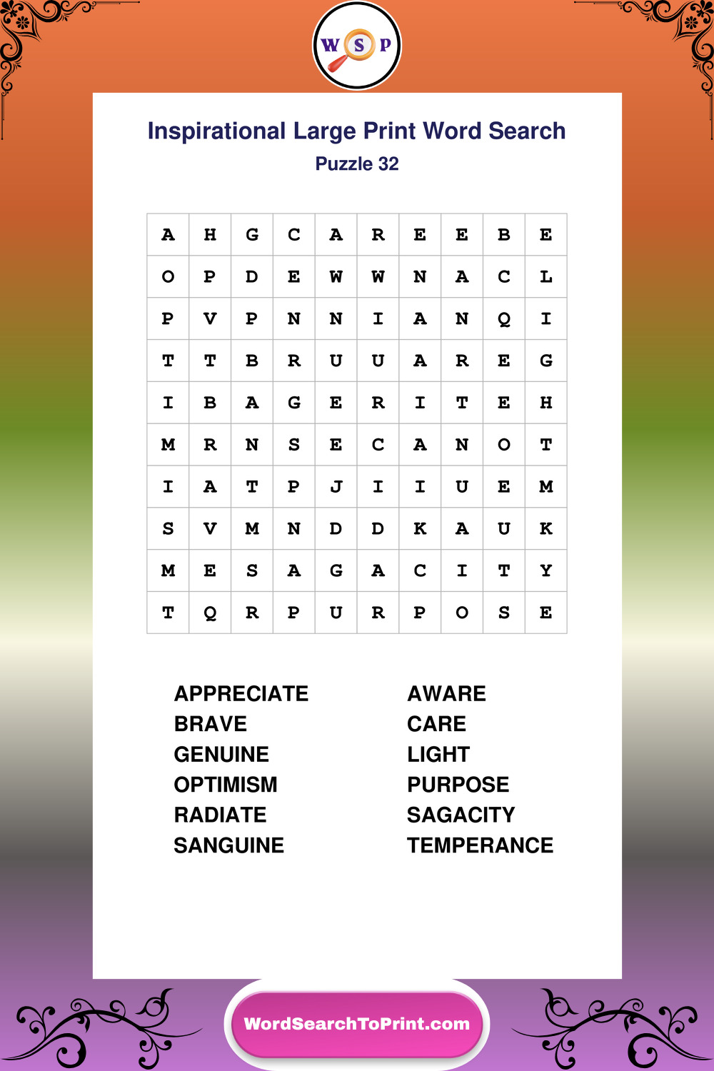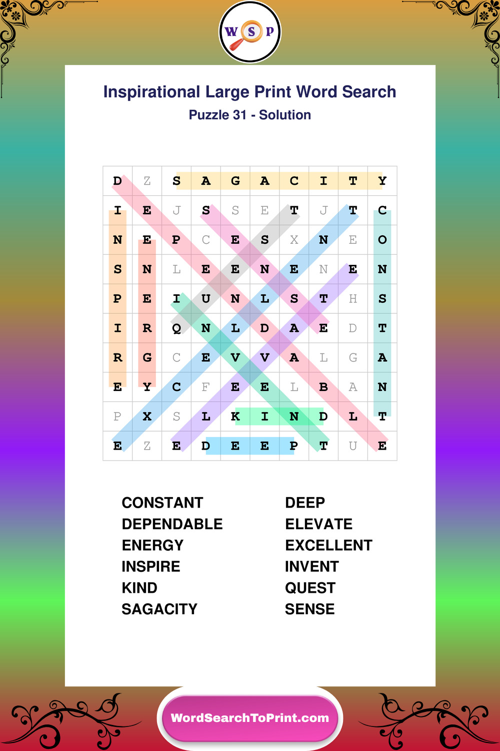 Discover free printable Large Print Inspirational wordsearches β€” a fun way to boost positivity and motivation. Click any puzzle below to print or download instantly.