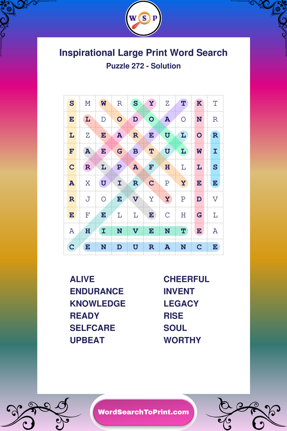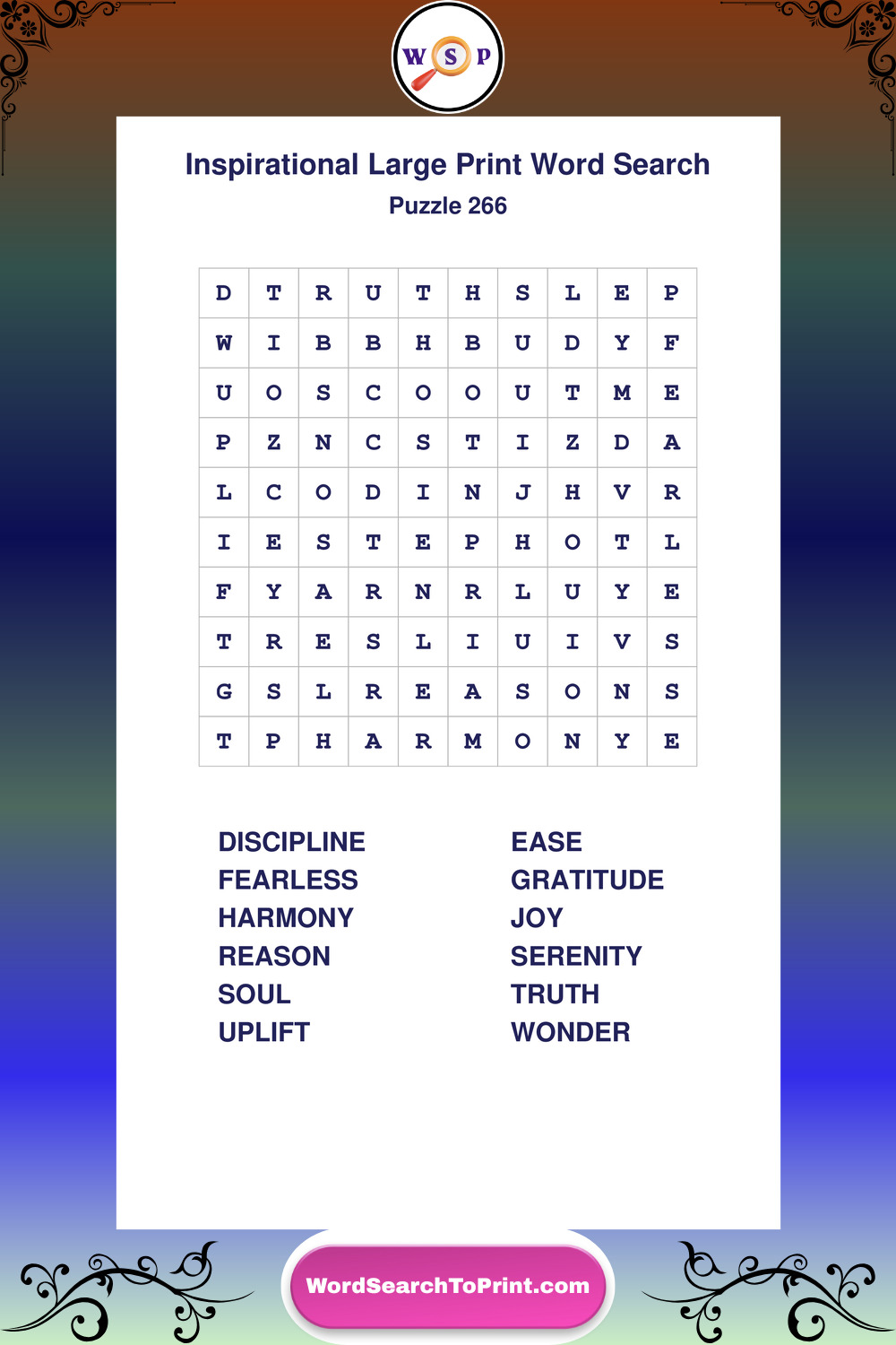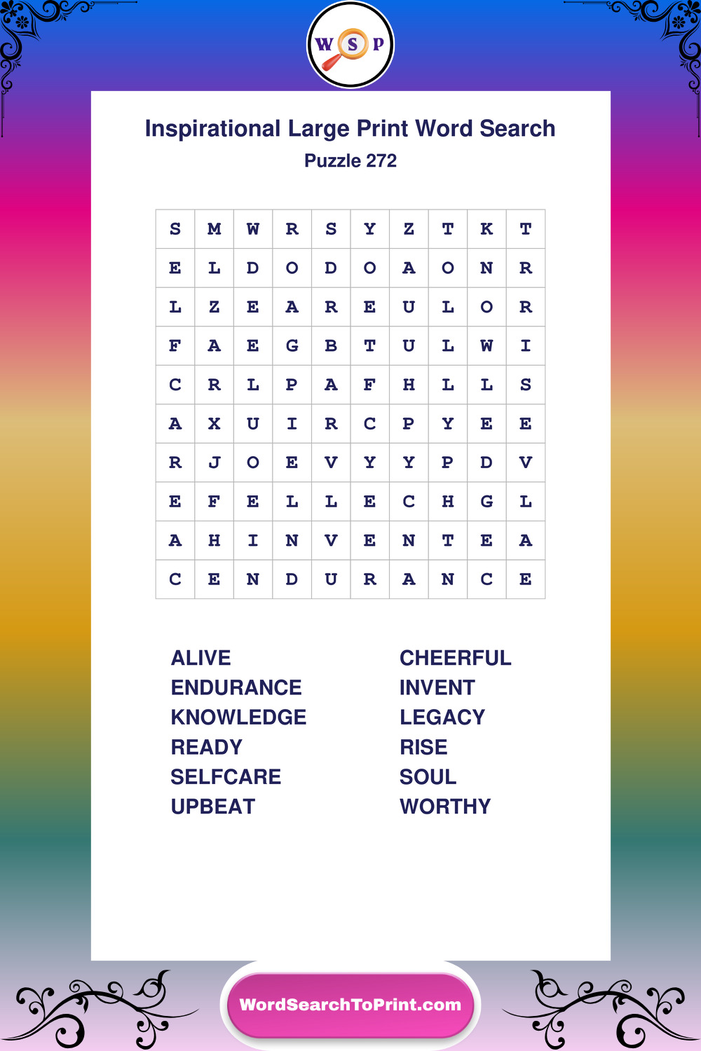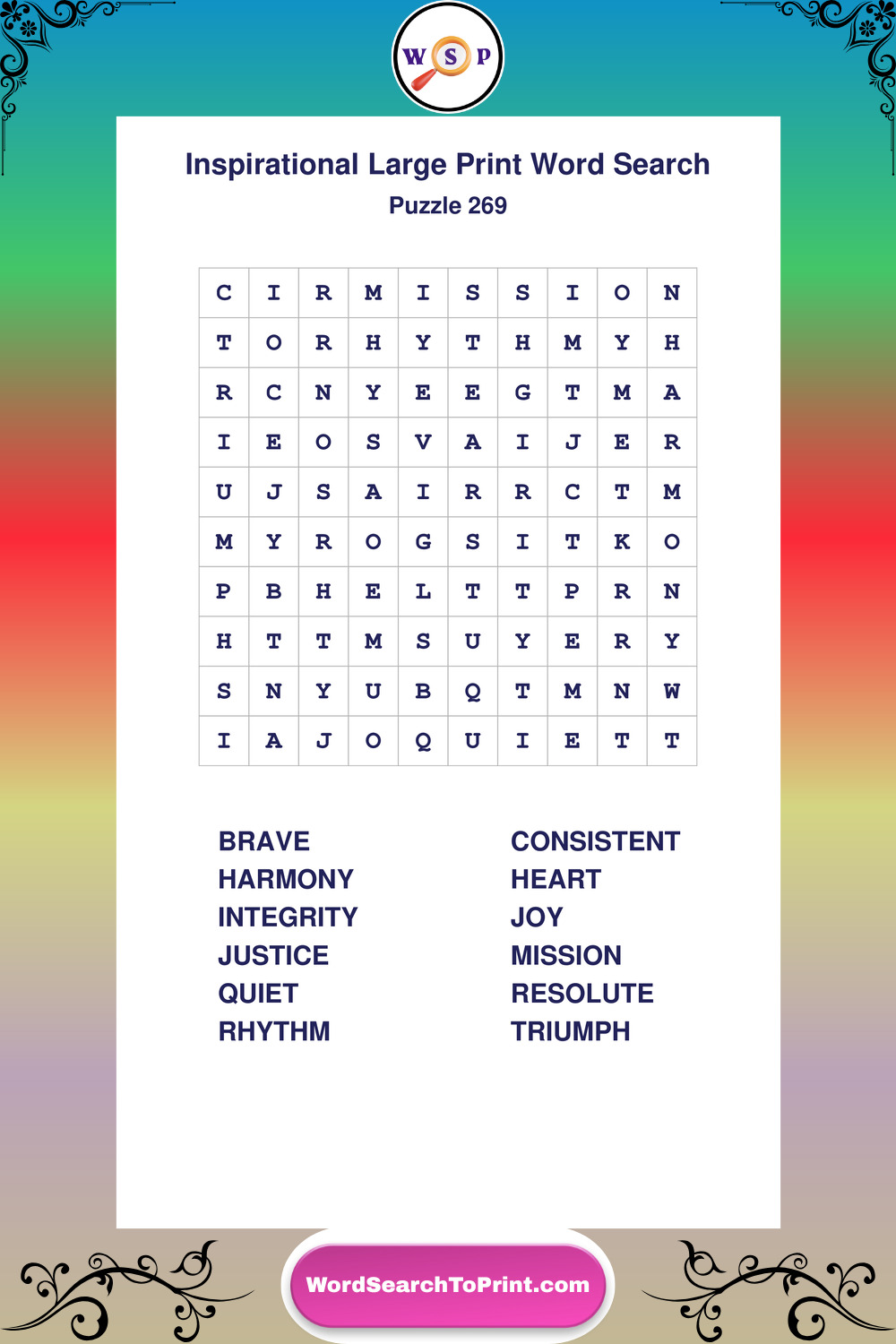 Discover free printable Large Print Inspirational wordsearches β€” a fun way to boost positivity and motivation. Click any puzzle below to print or download instantly.