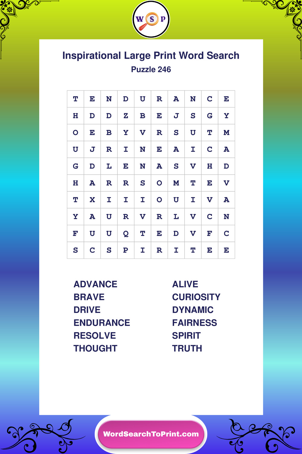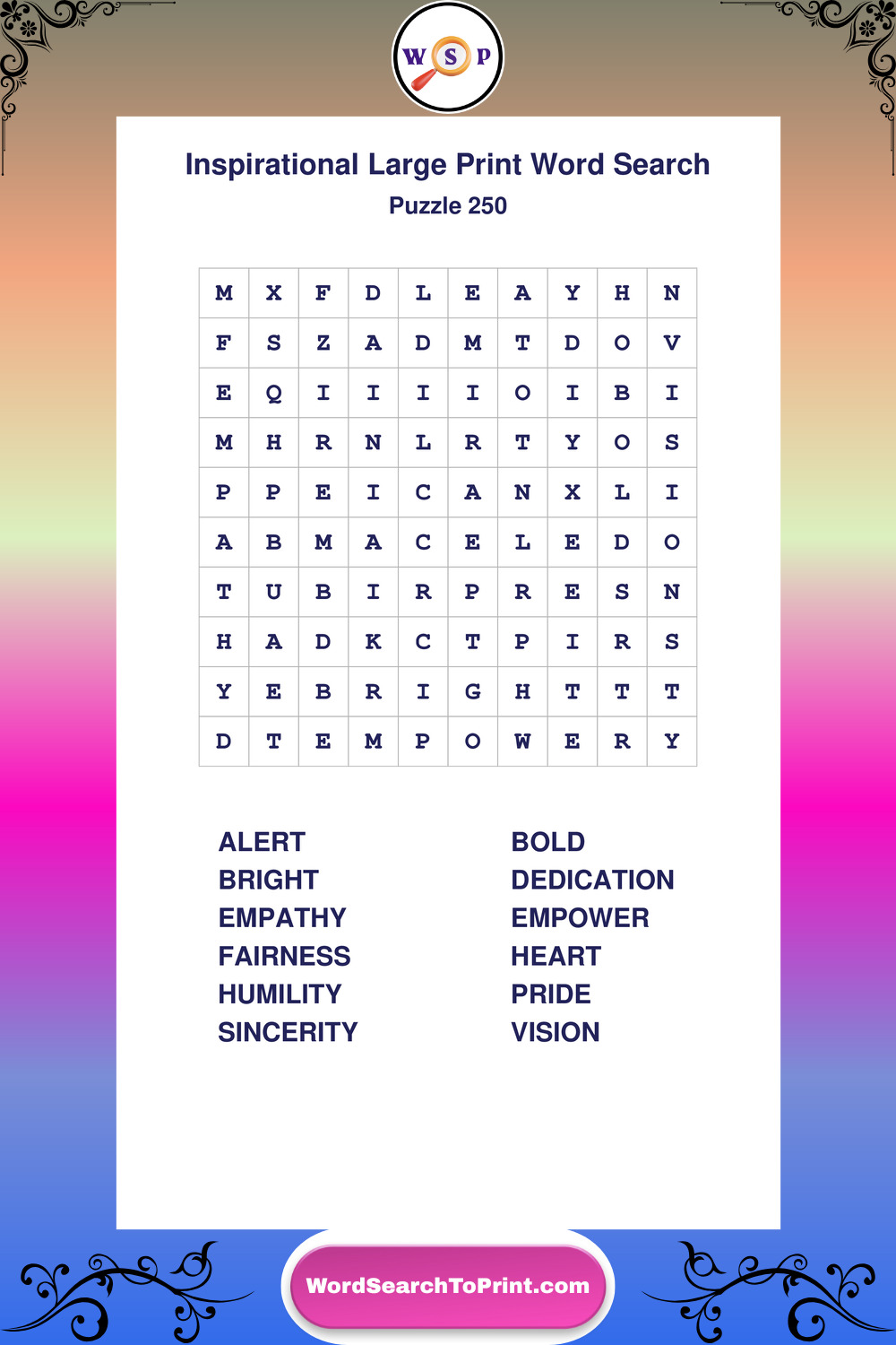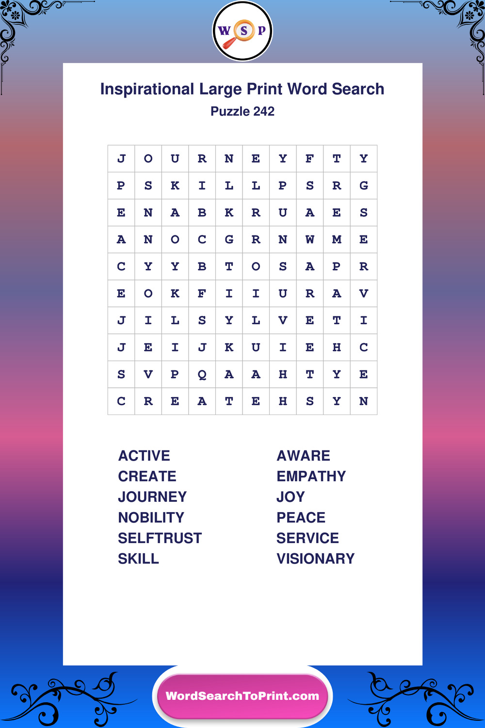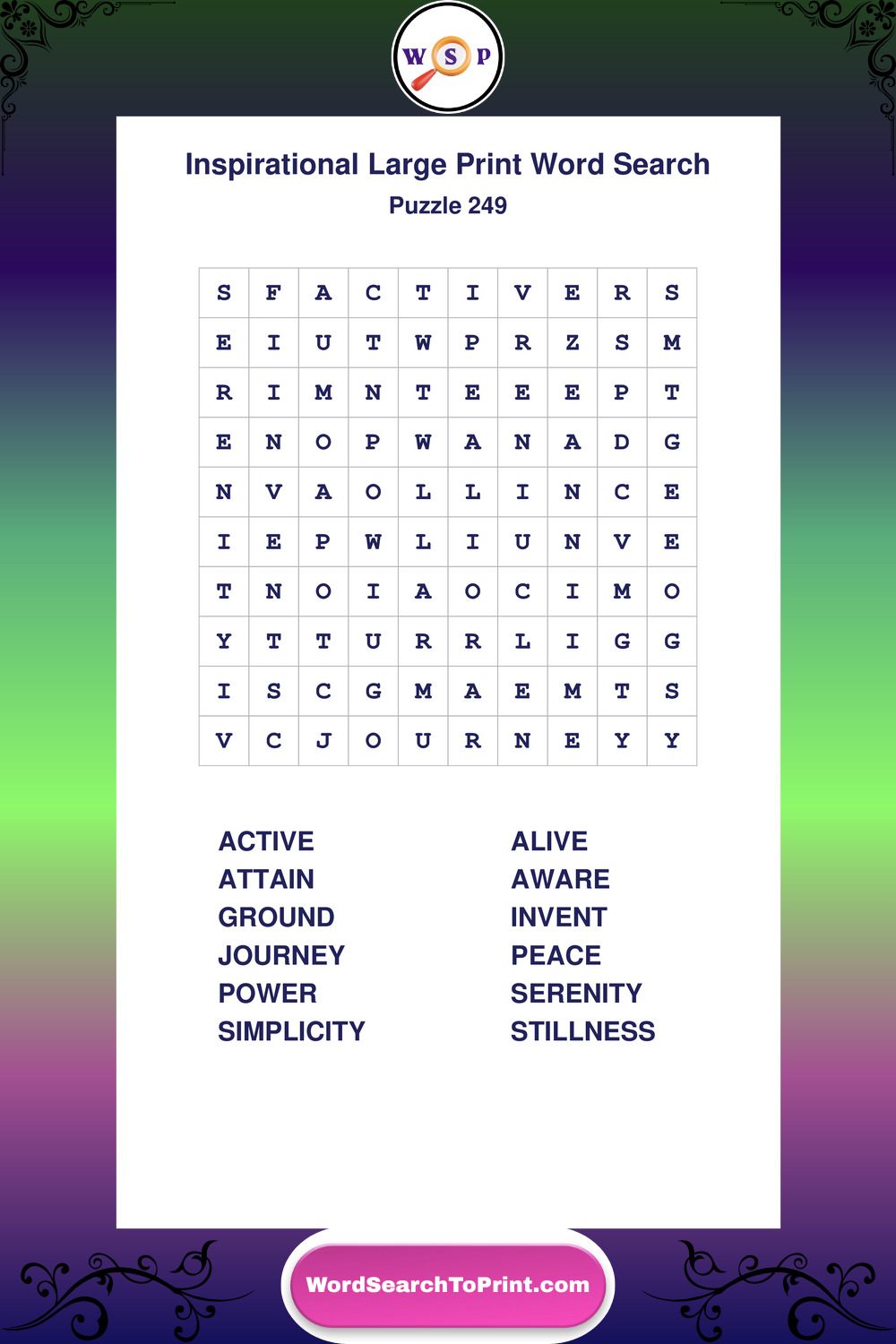 Discover free printable Large Print Inspirational wordsearches β€” a fun way to boost positivity and motivation. Click any puzzle below to print or download instantly.