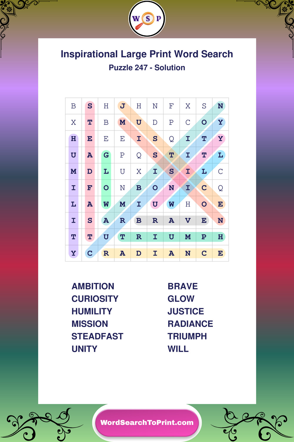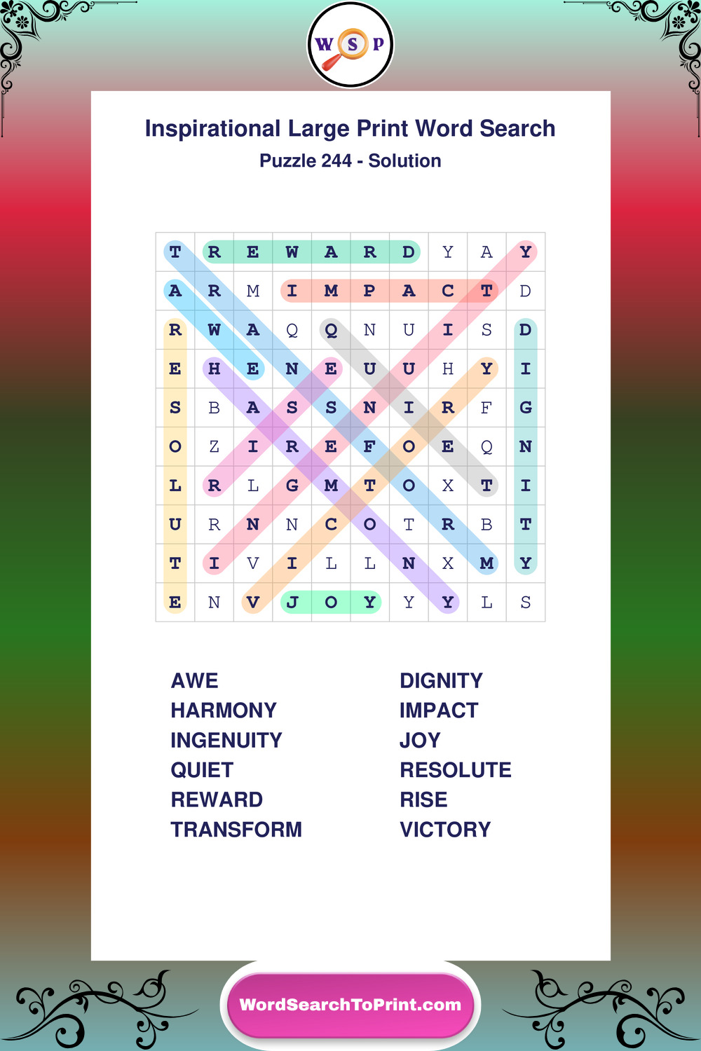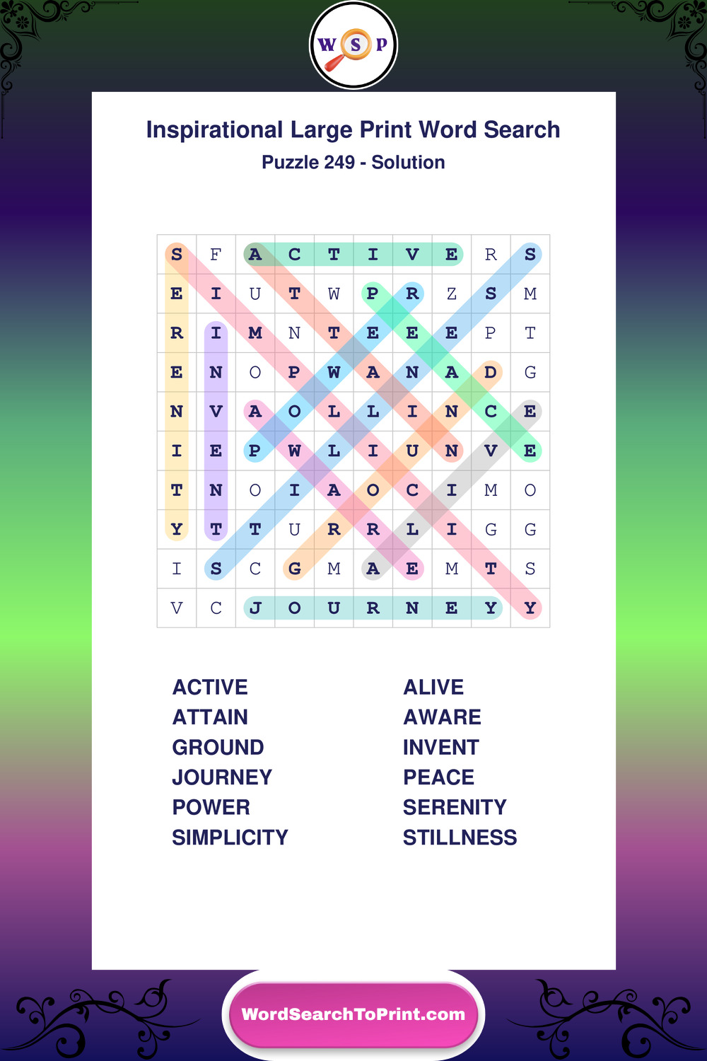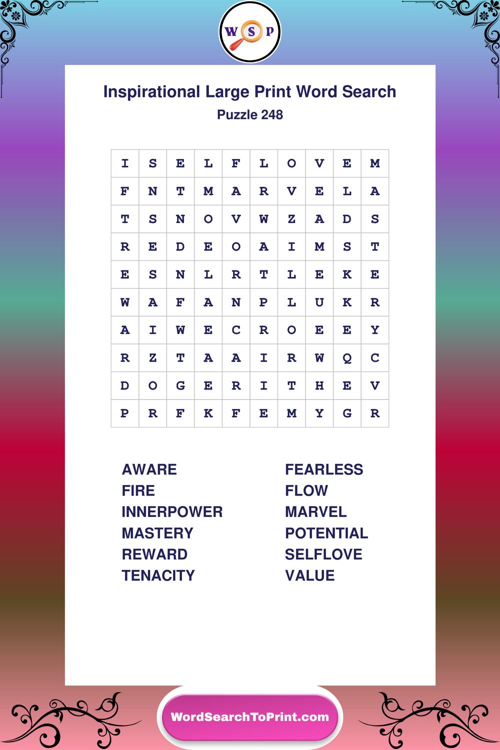 Discover free printable Large Print Inspirational wordsearches β€” a fun way to boost positivity and motivation. Click any puzzle below to print or download instantly.