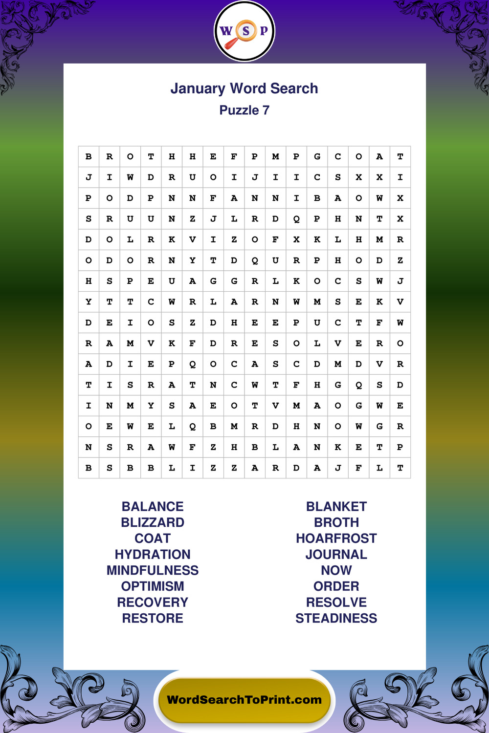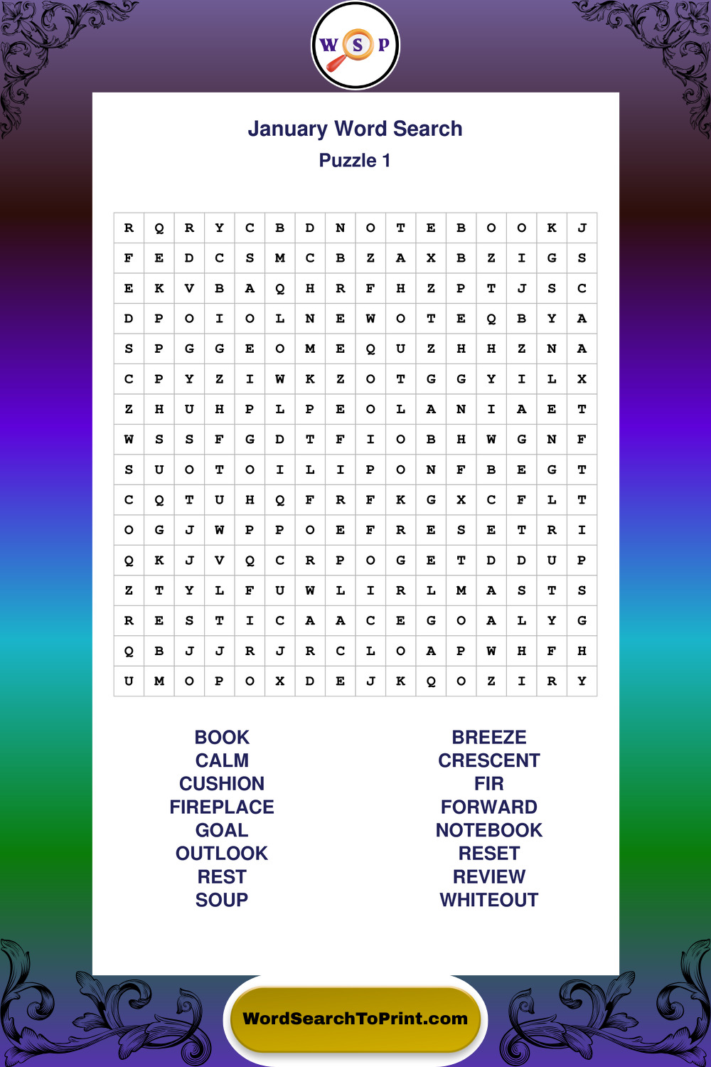 This collection of large print January wordsearches is designed for smooth reading, gentle focus, and enjoyable puzzle time.