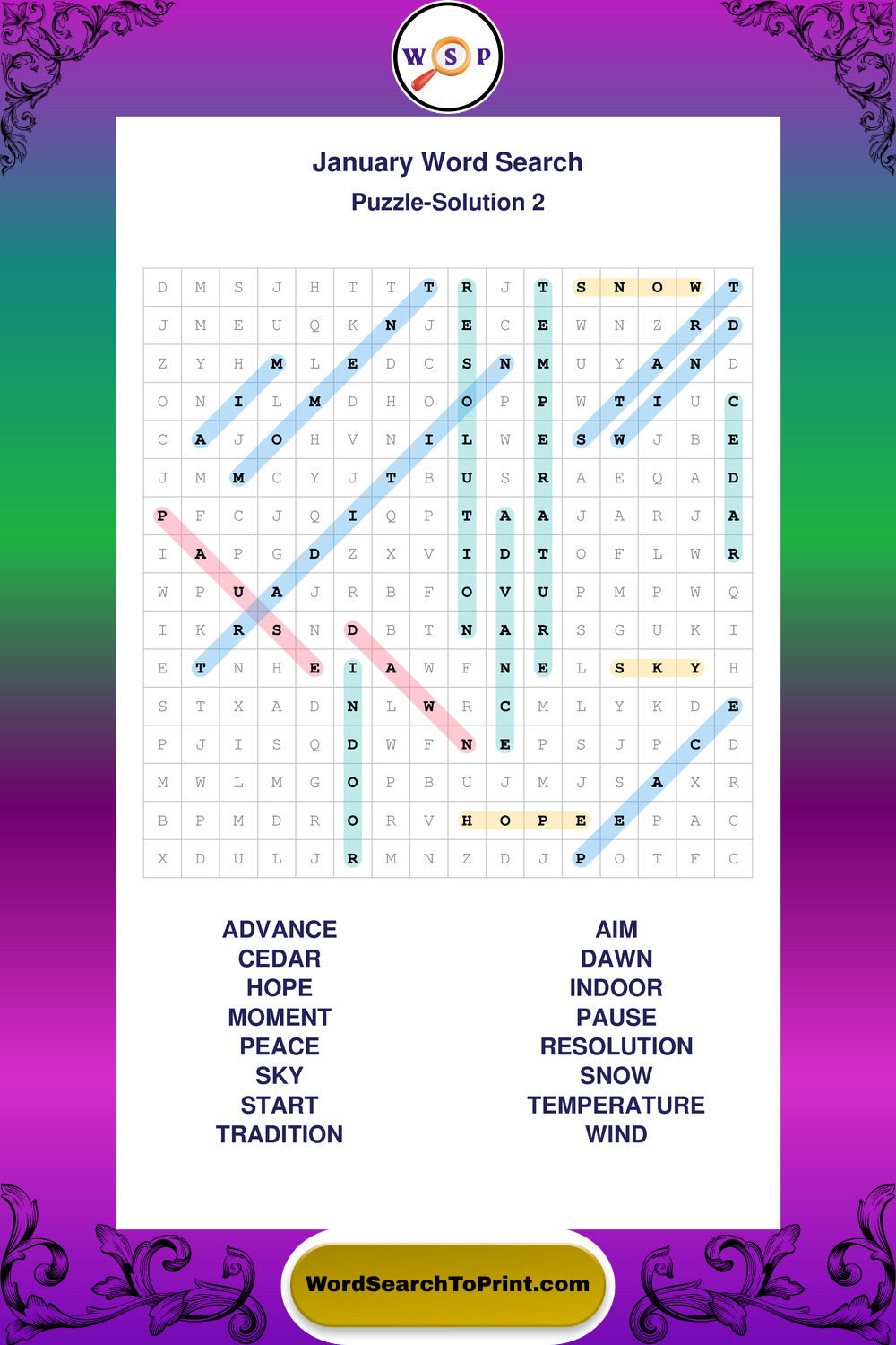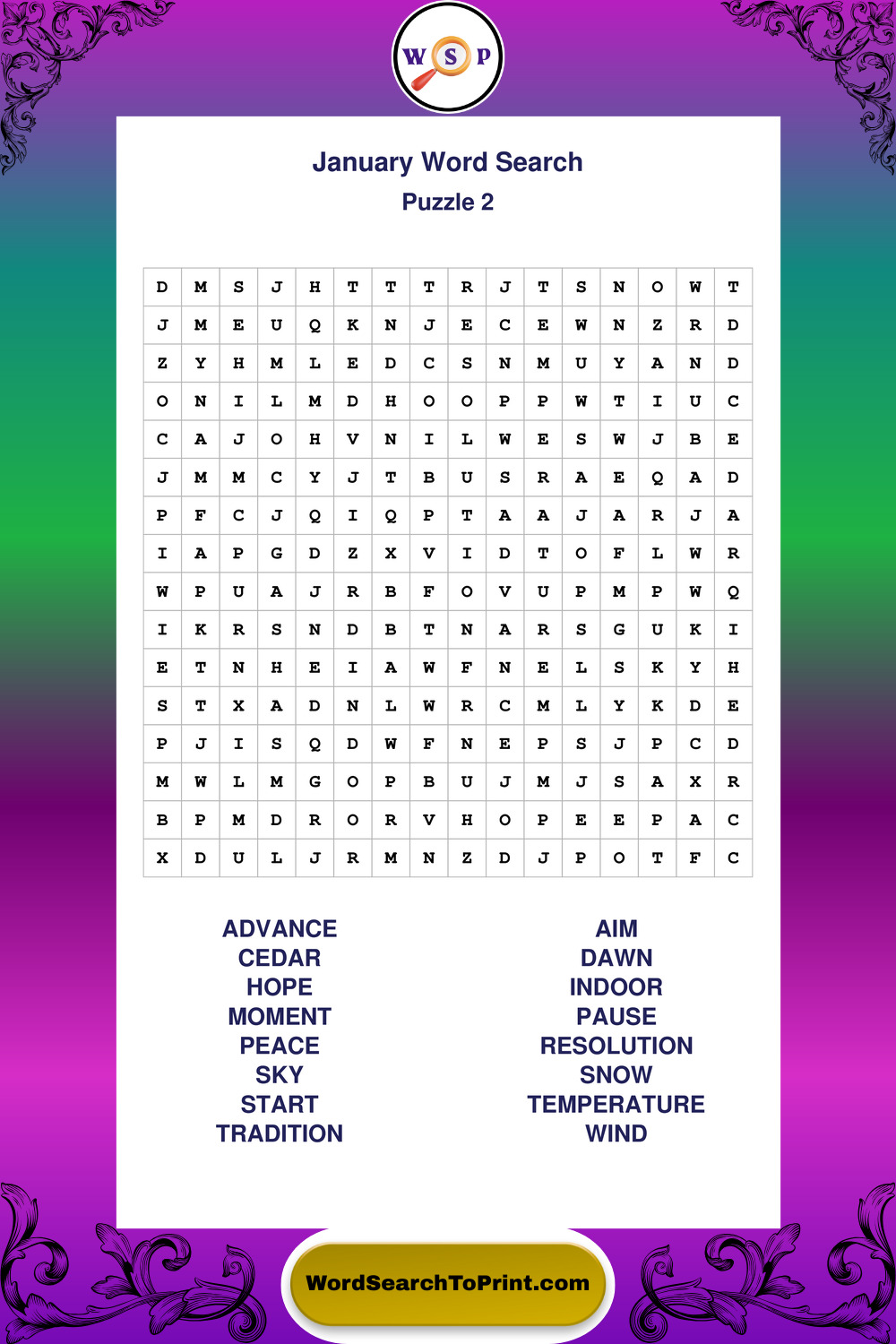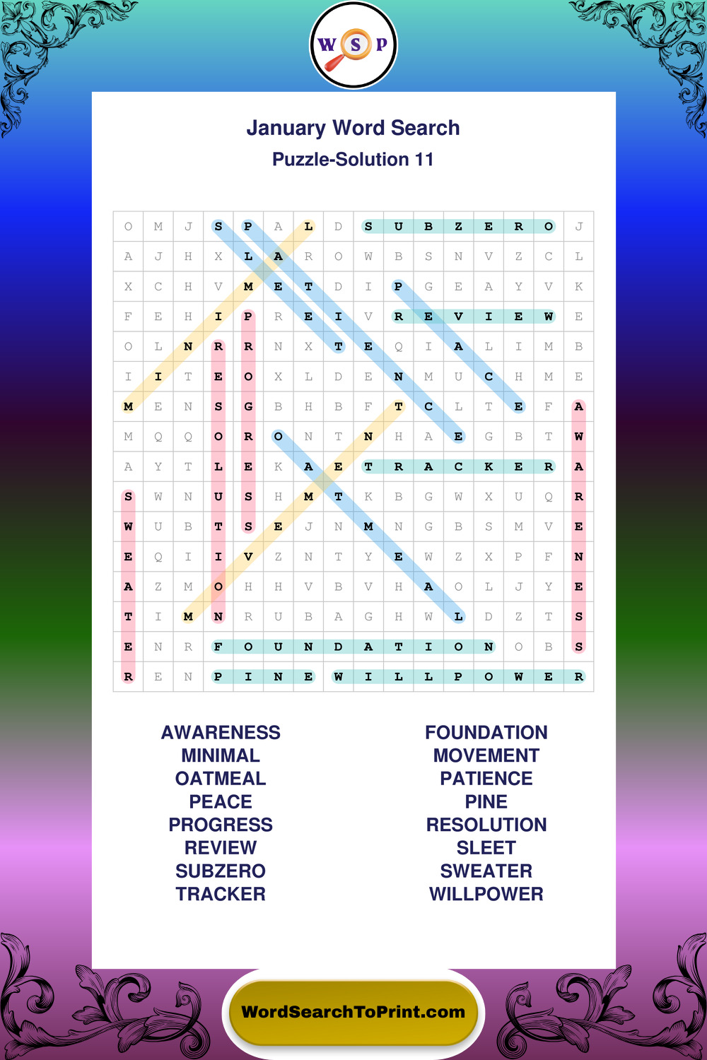 January Wordsearches