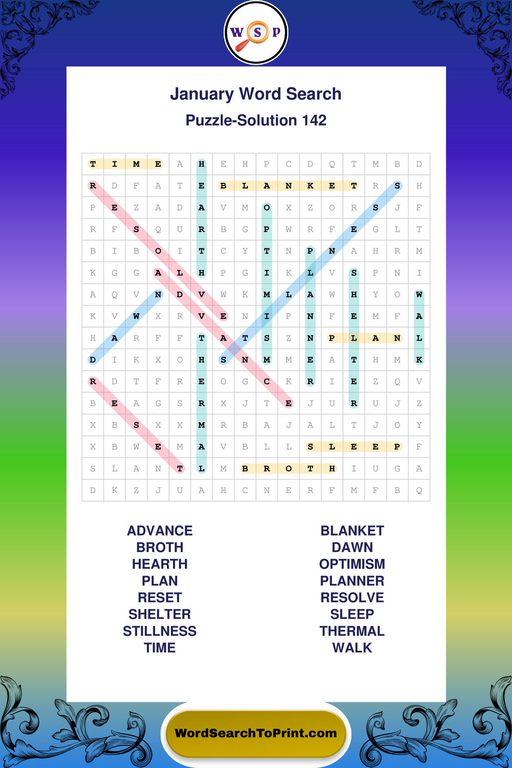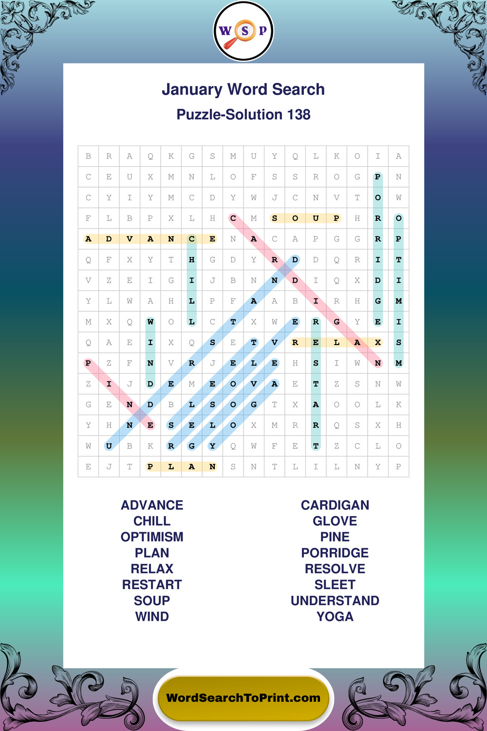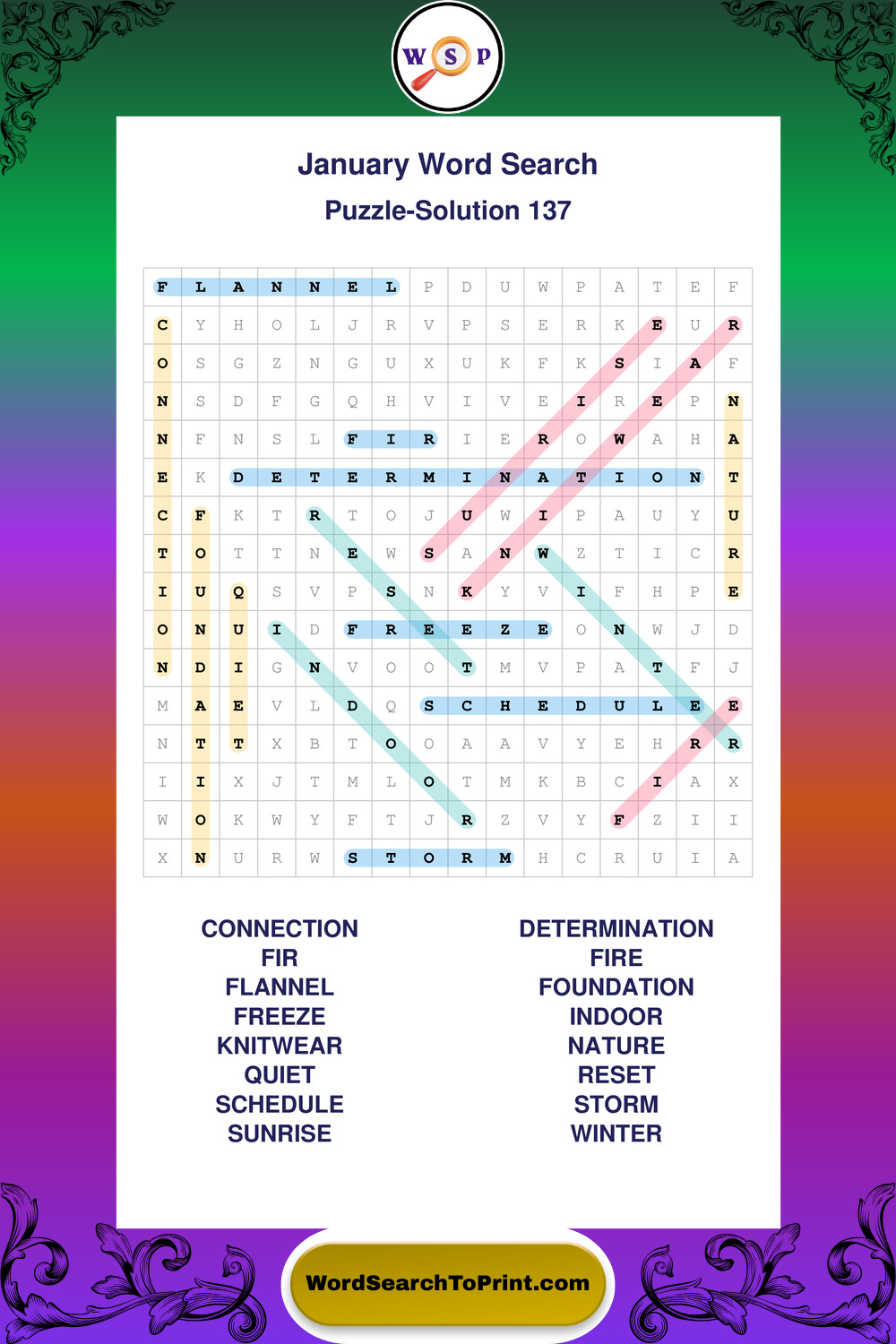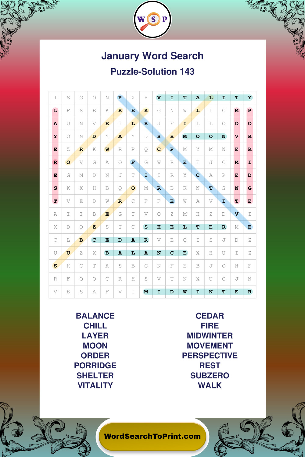 This collection of large print January wordsearches is designed for smooth reading, gentle focus, and enjoyable puzzle time.