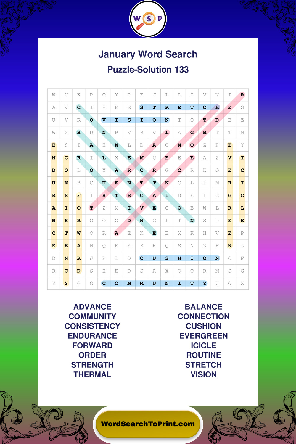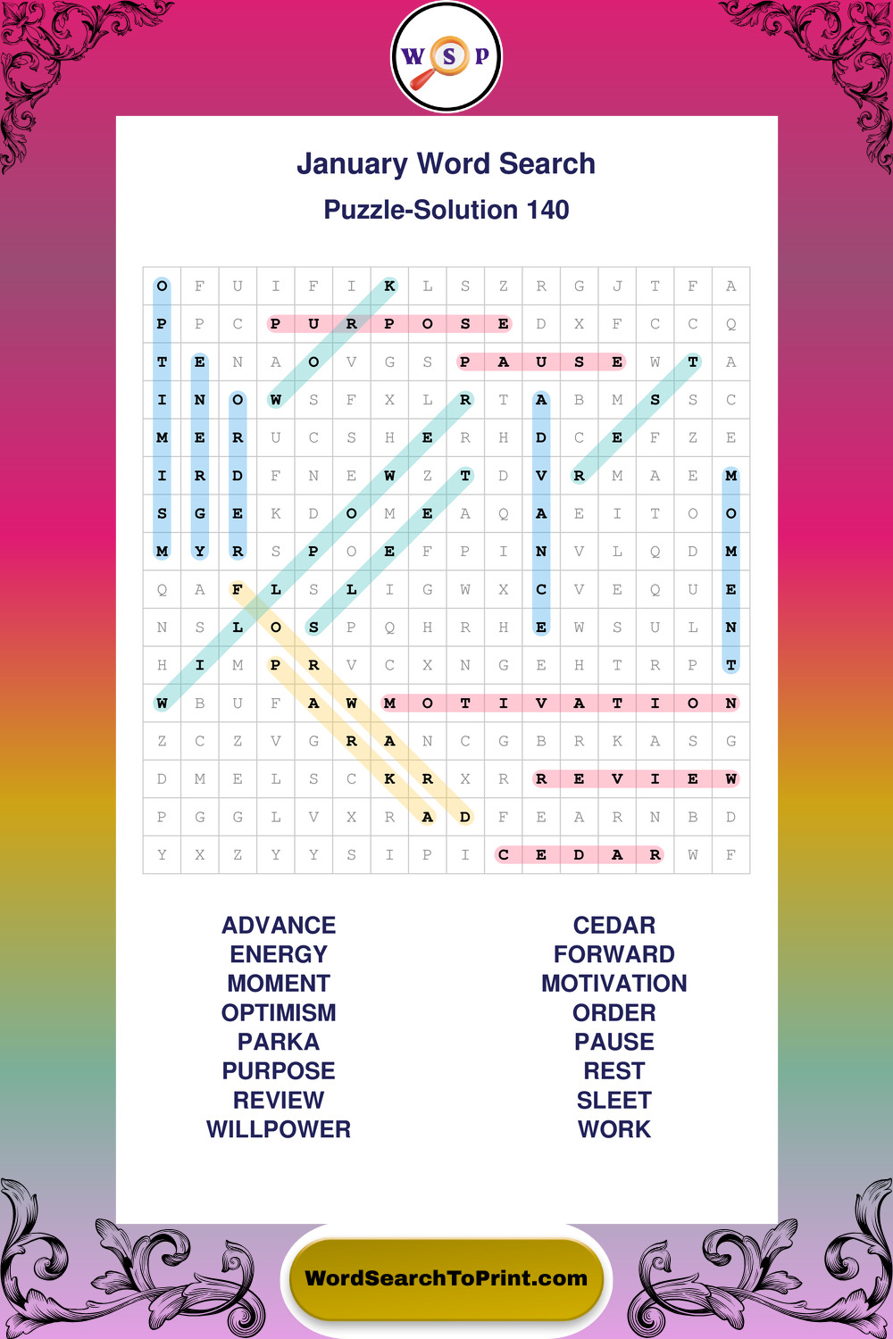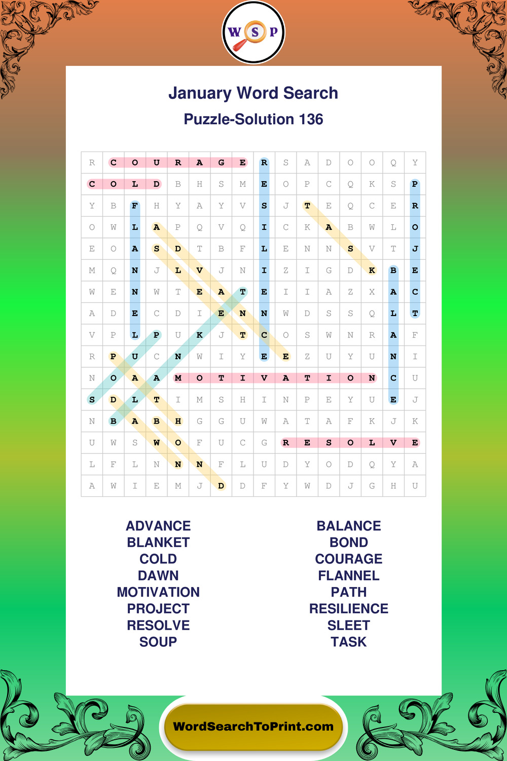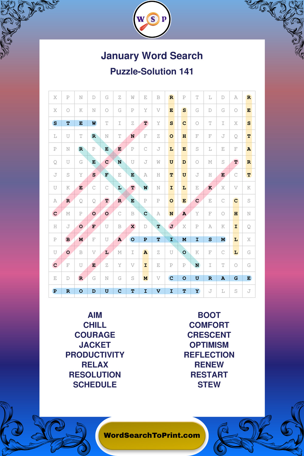 This collection of large print January wordsearches is designed for smooth reading, gentle focus, and enjoyable puzzle time.