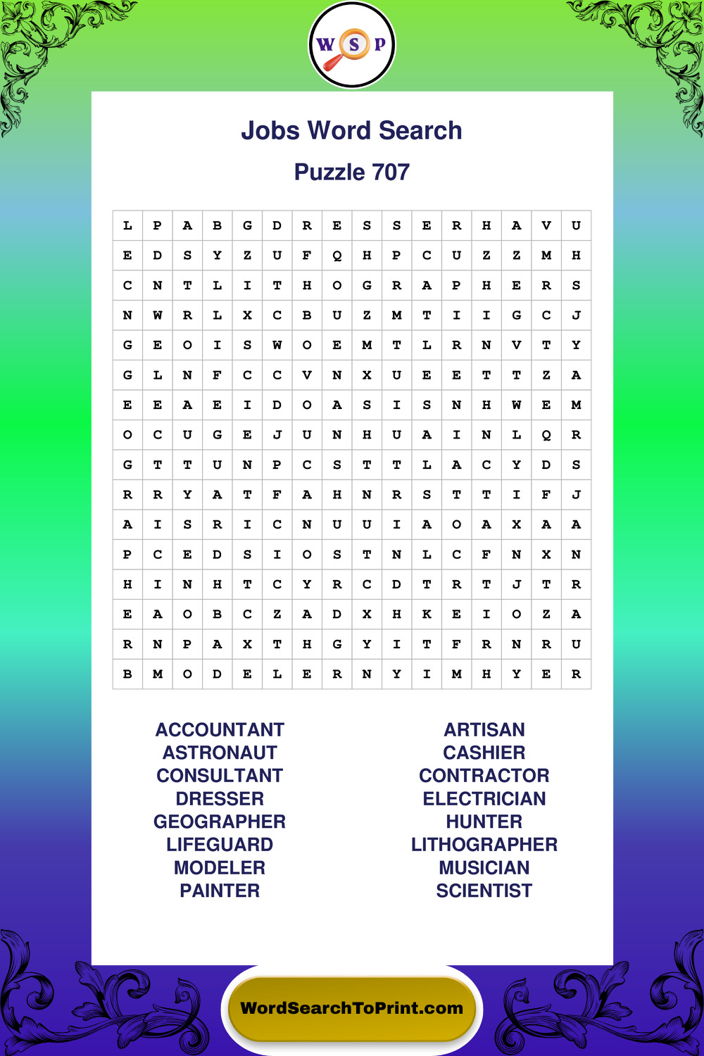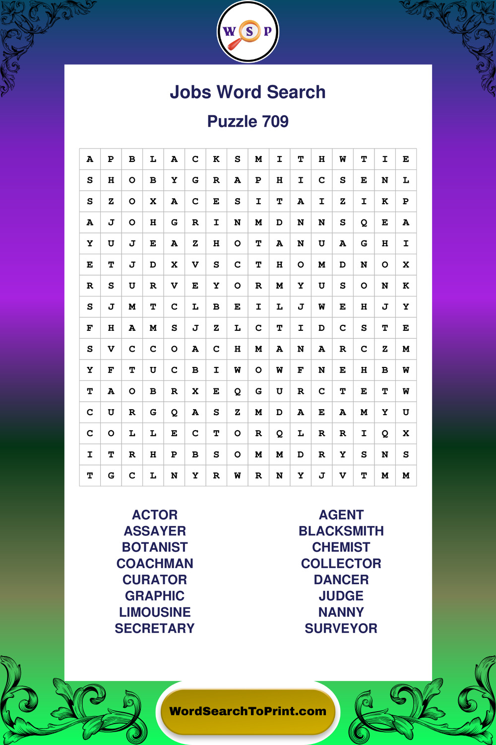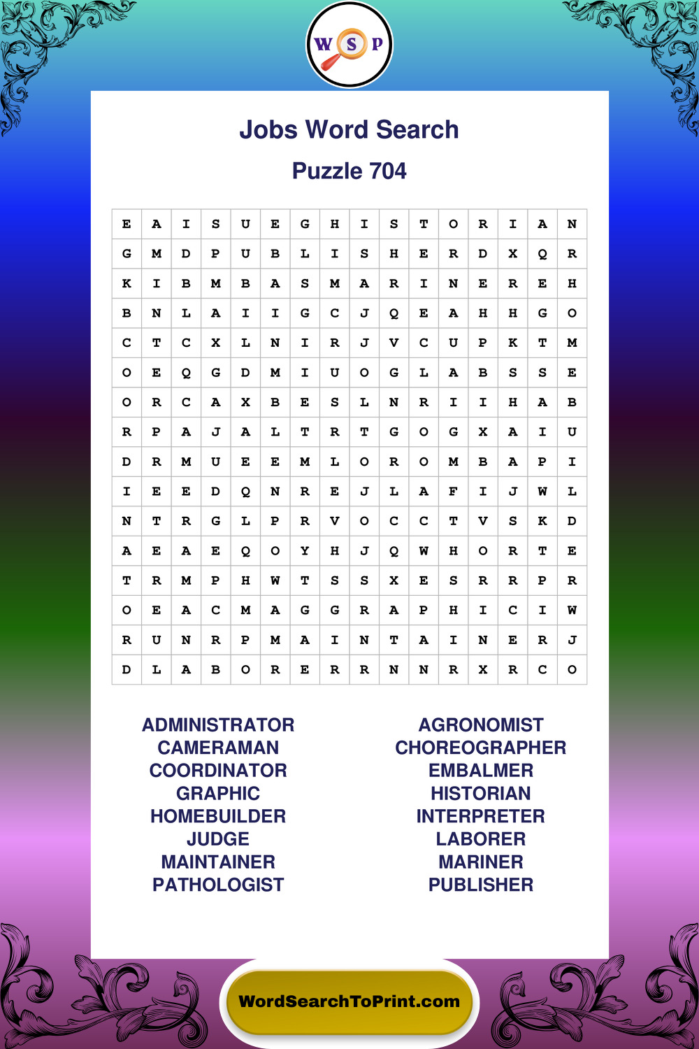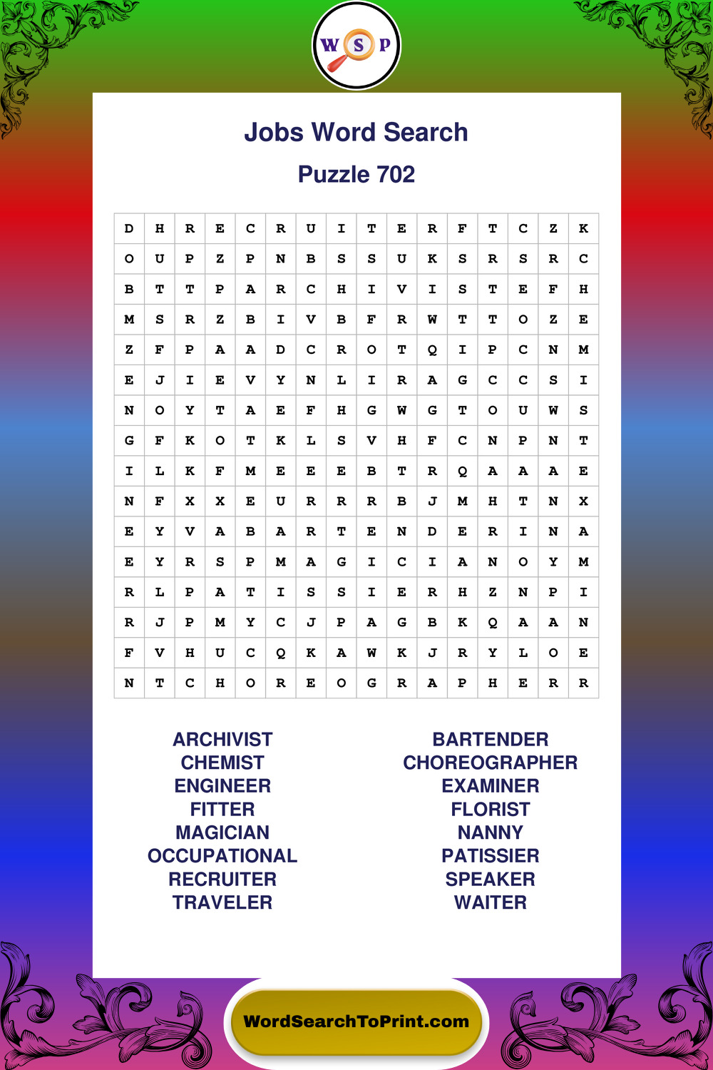 Printable Jobs Wordsearch Puzzles