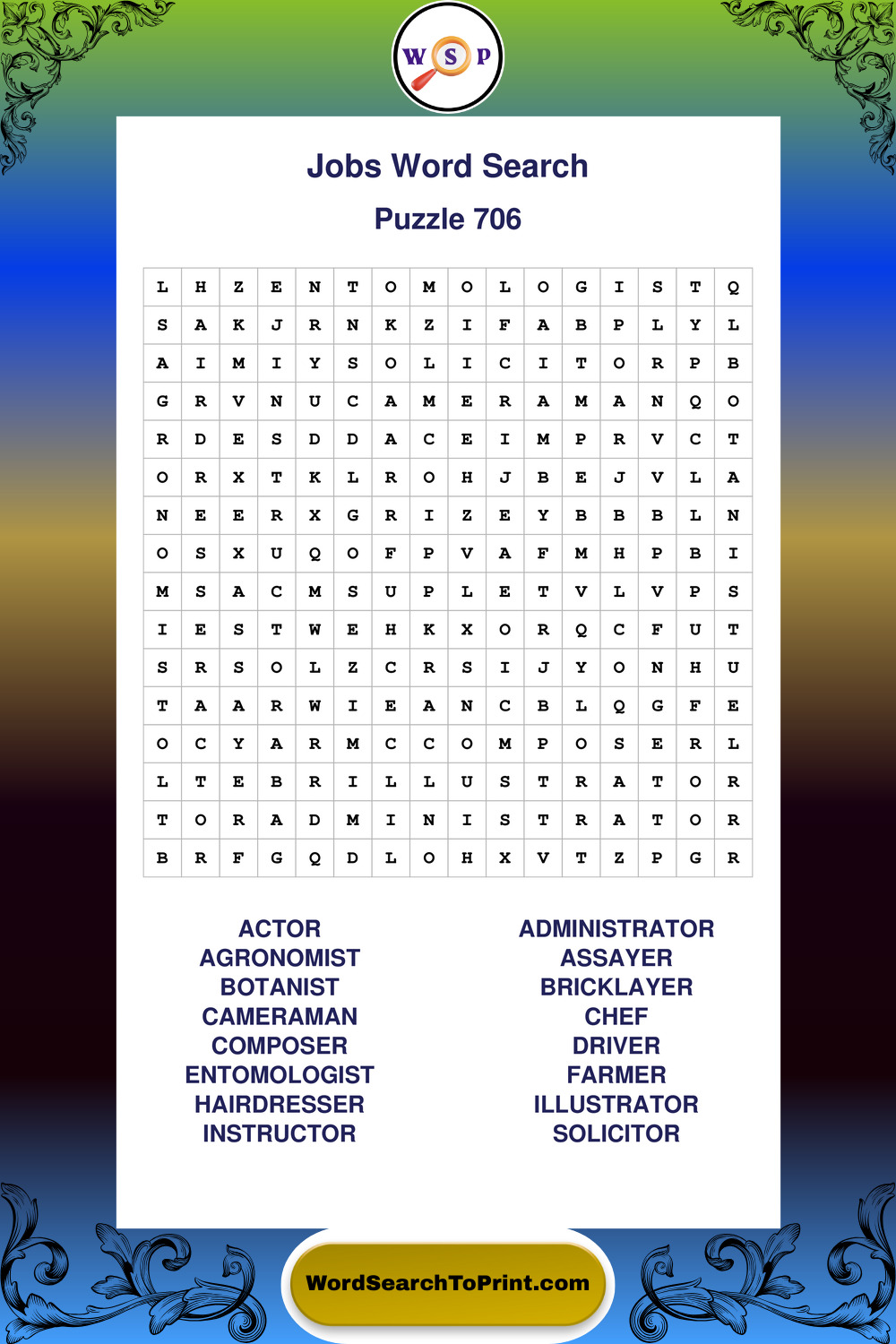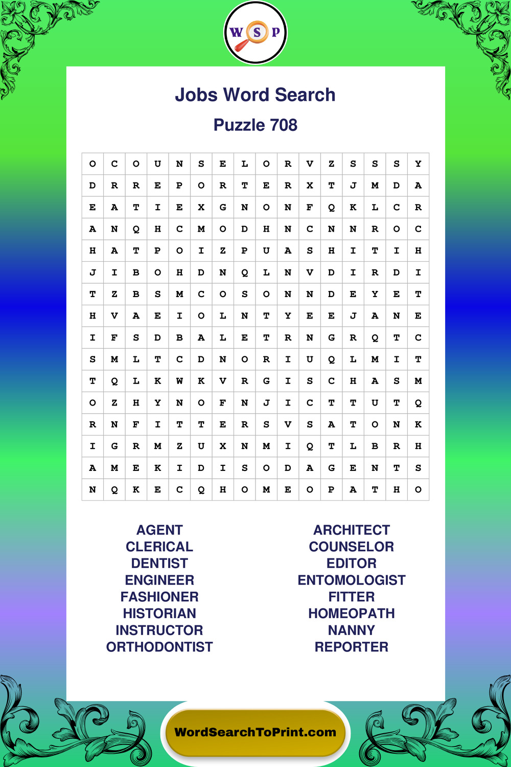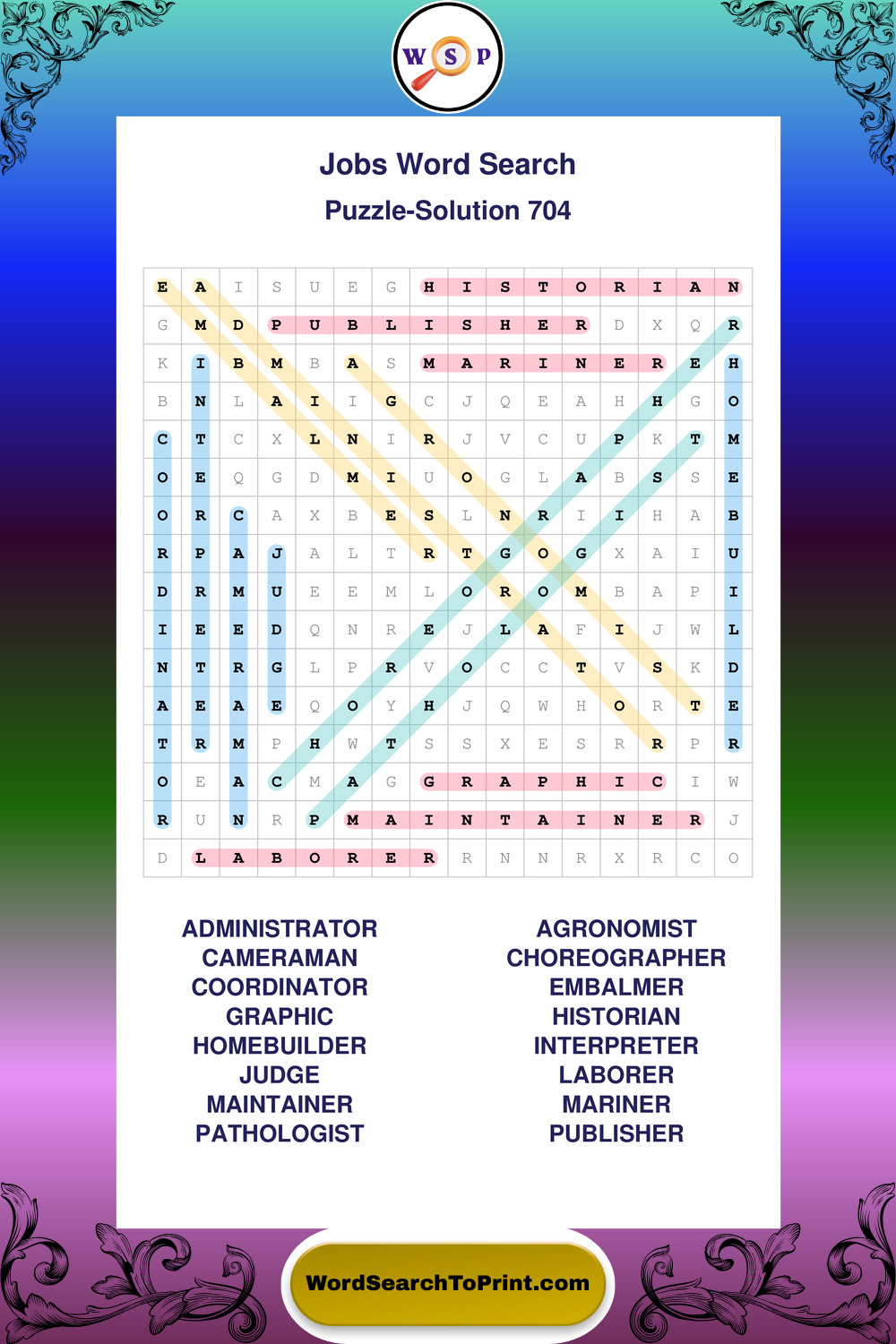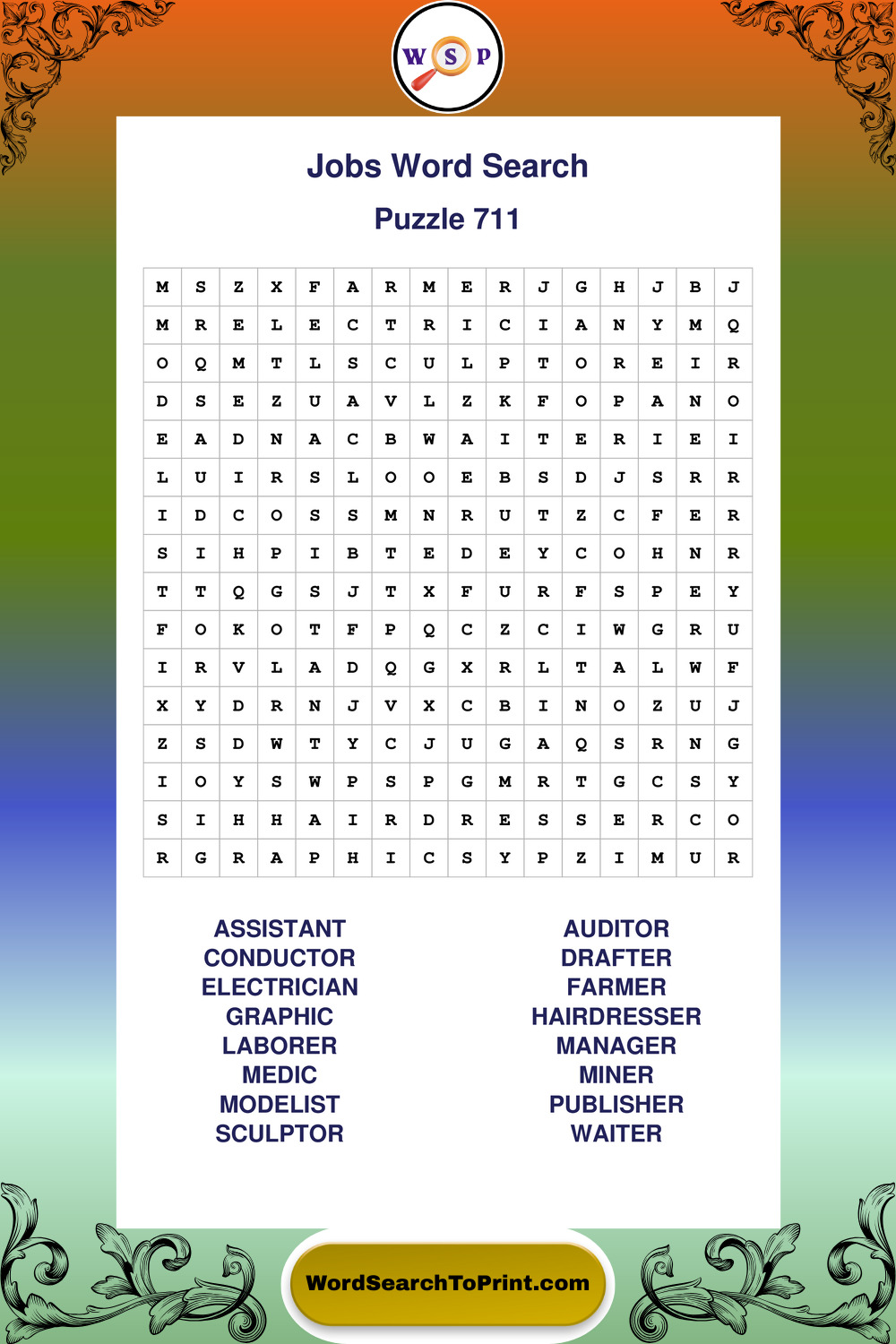 Printable Jobs Wordsearch Puzzles
