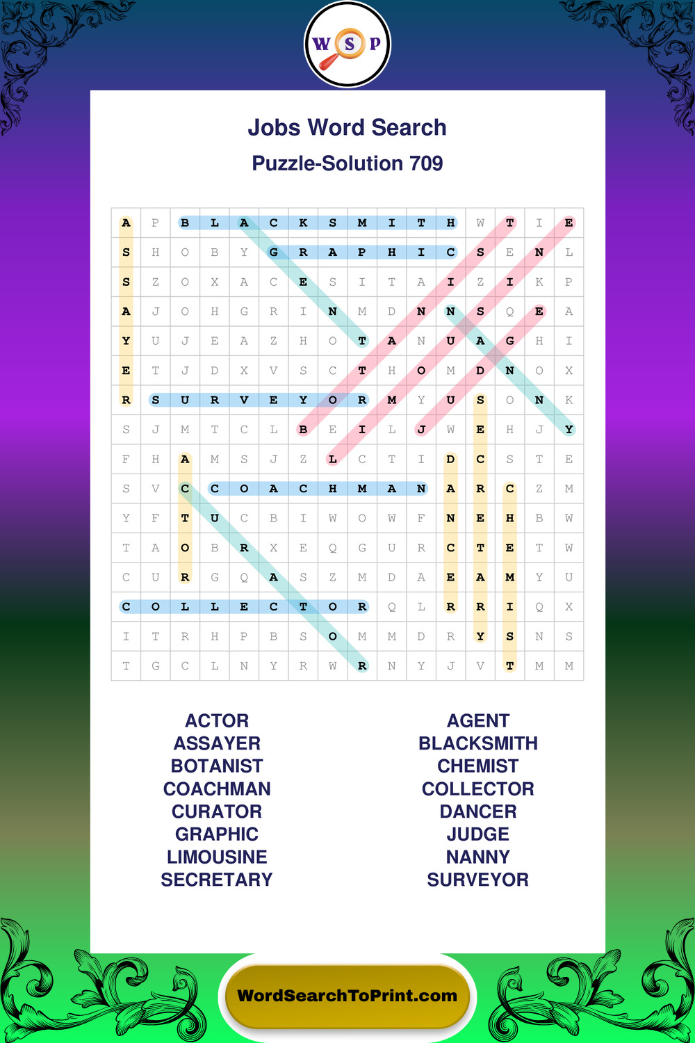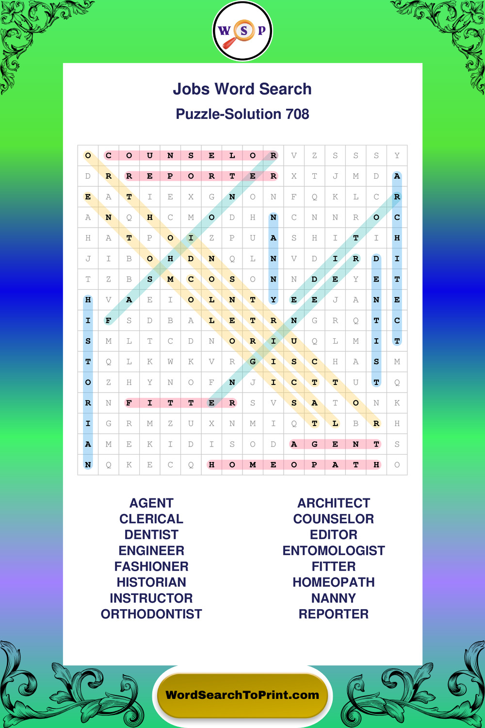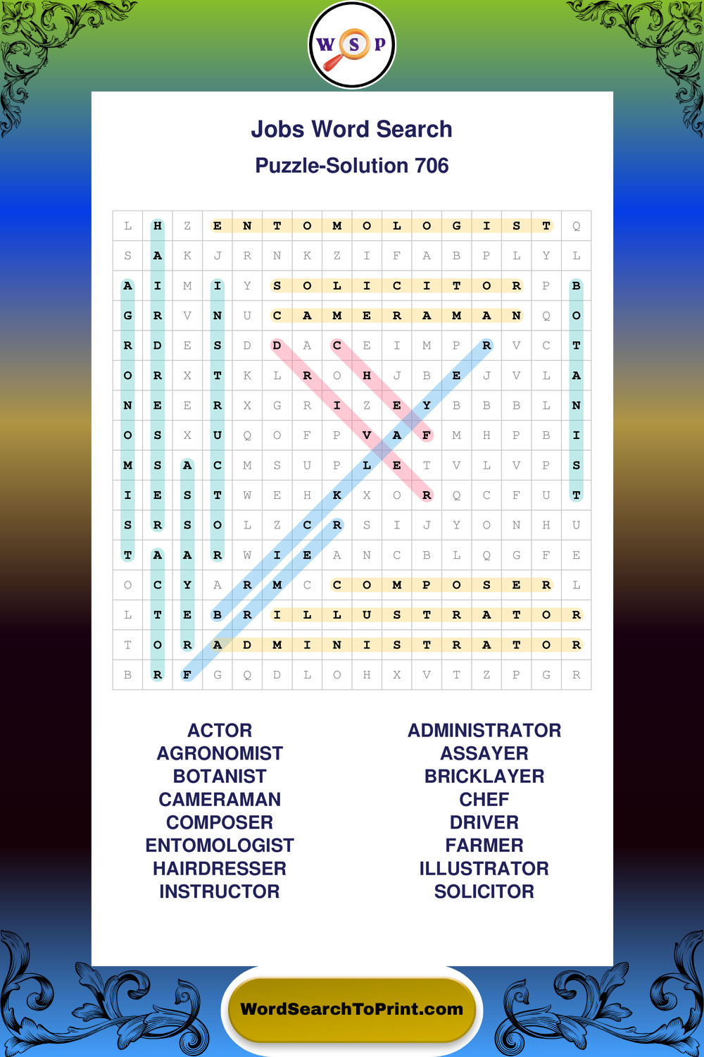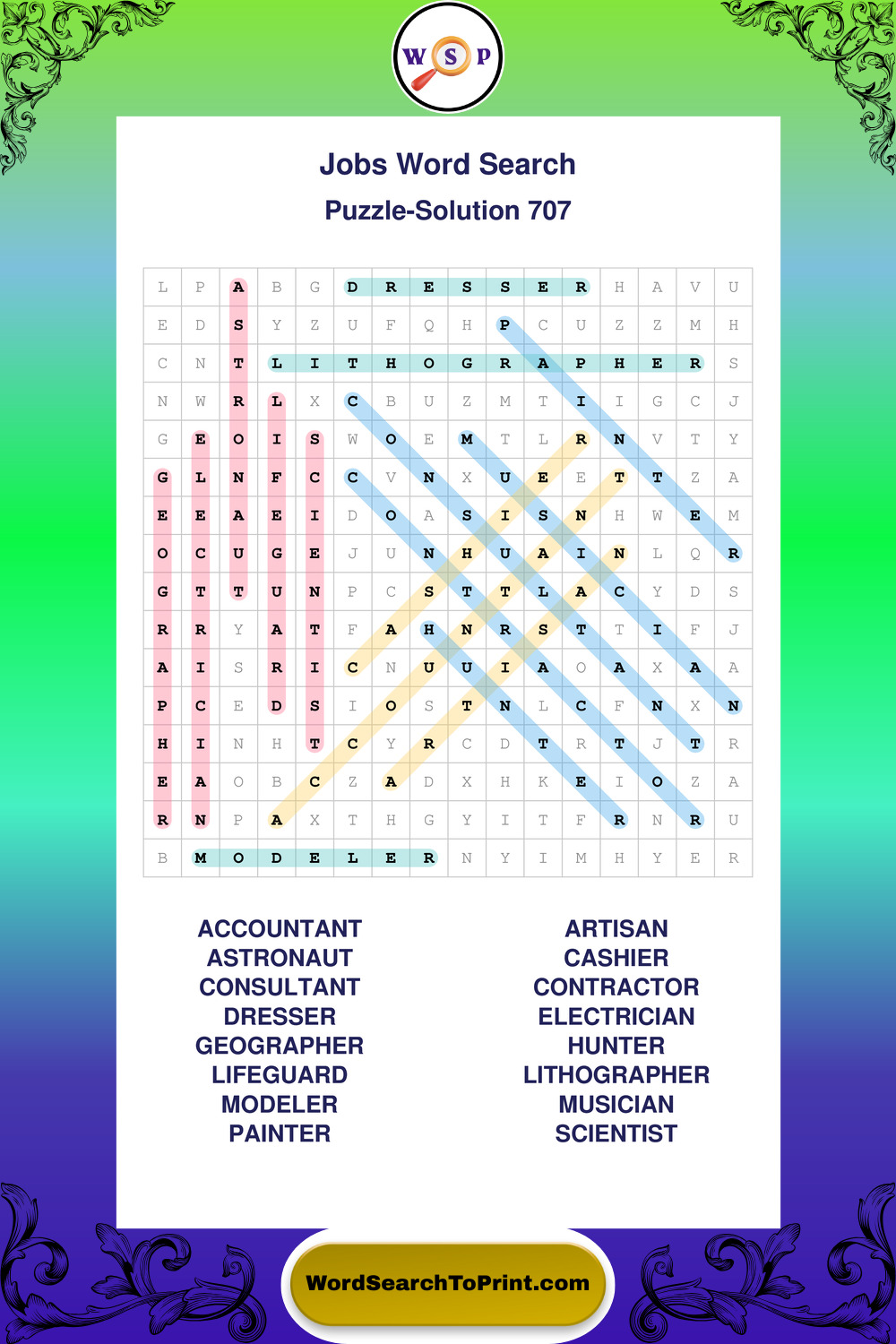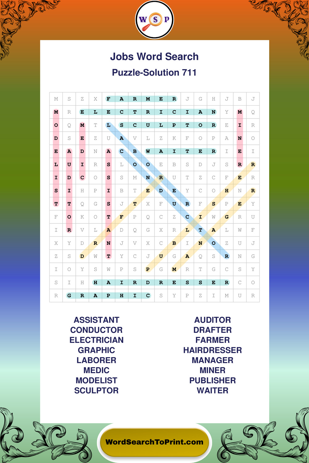 Printable Jobs Wordsearch Puzzles
