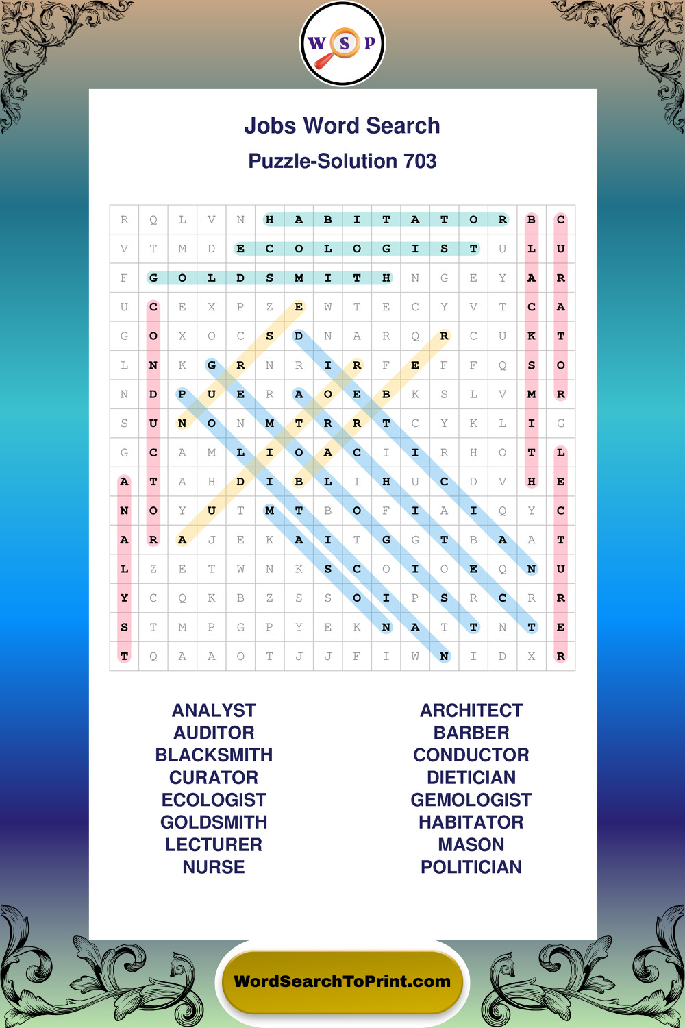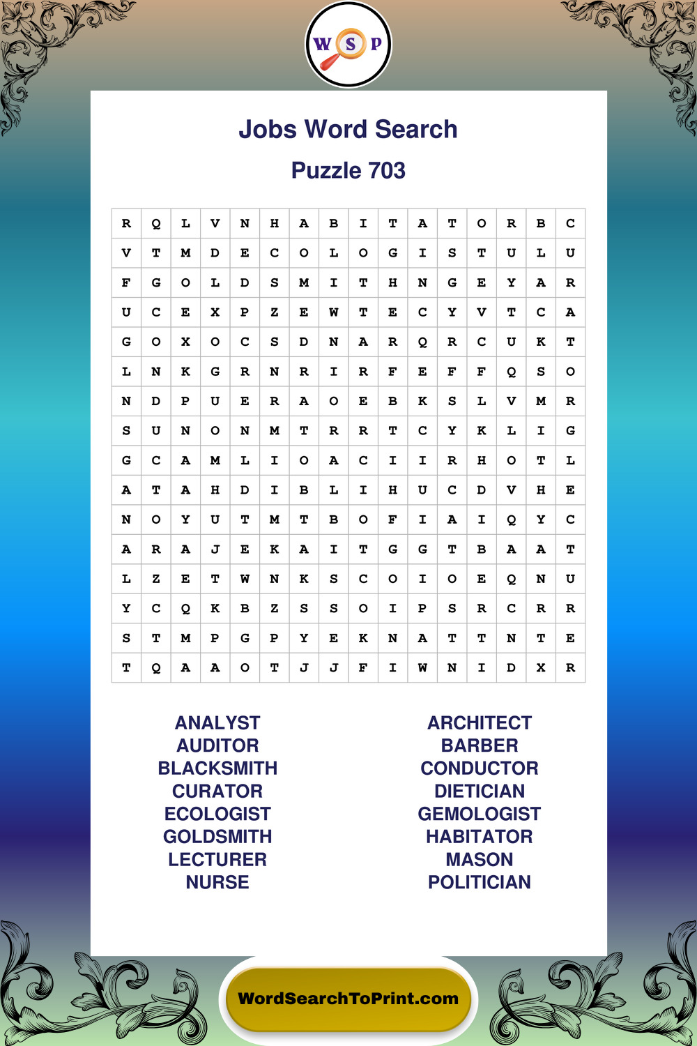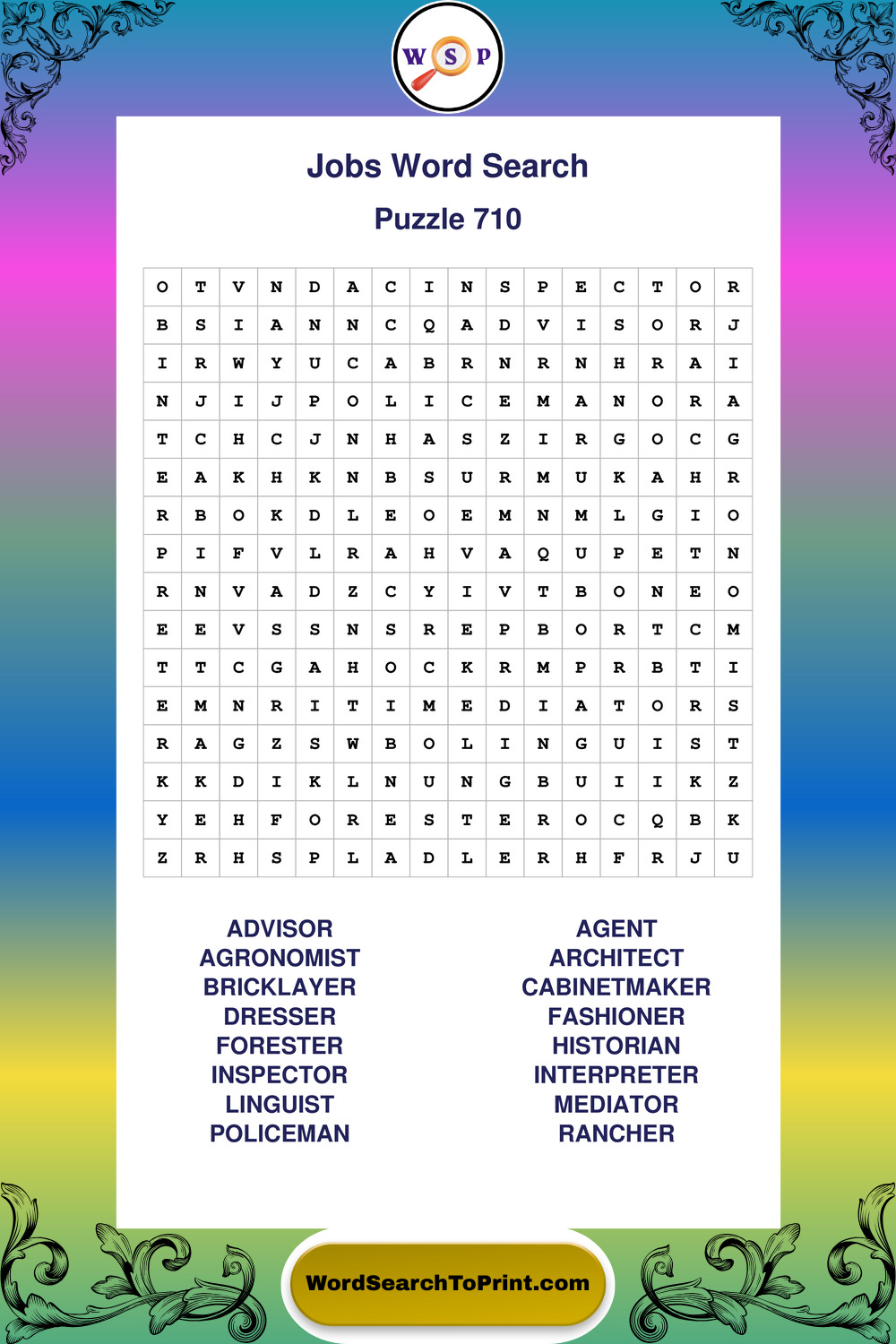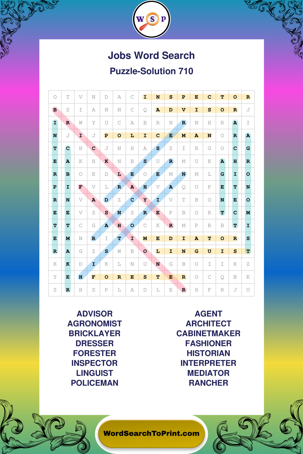 Printable Jobs Wordsearch Puzzles