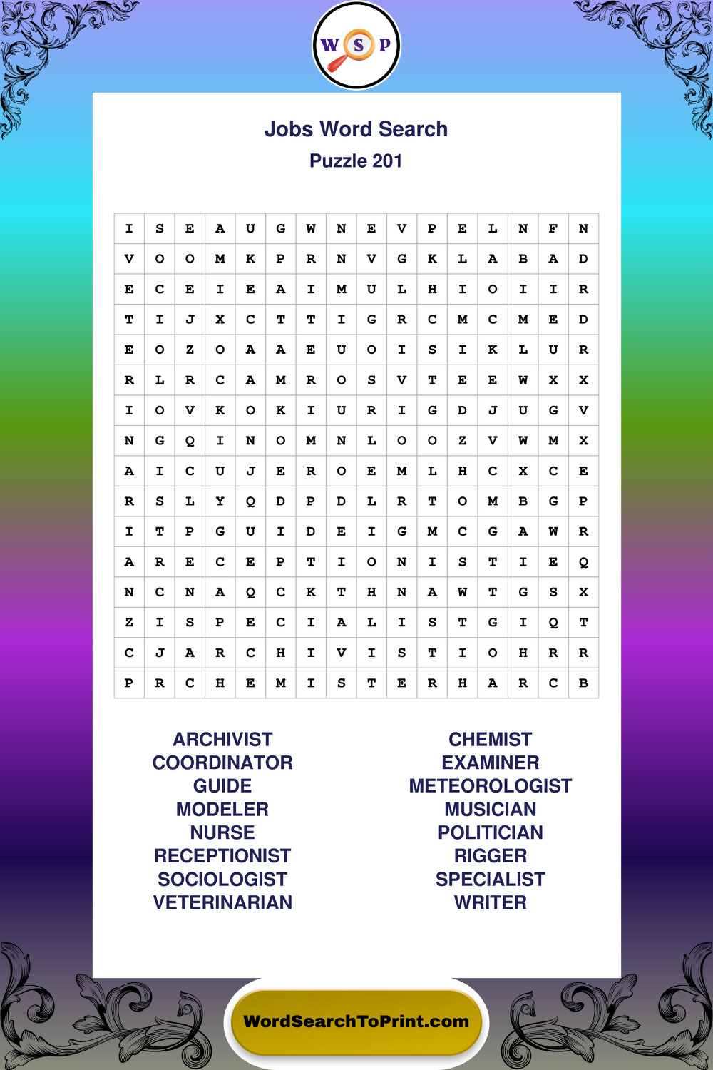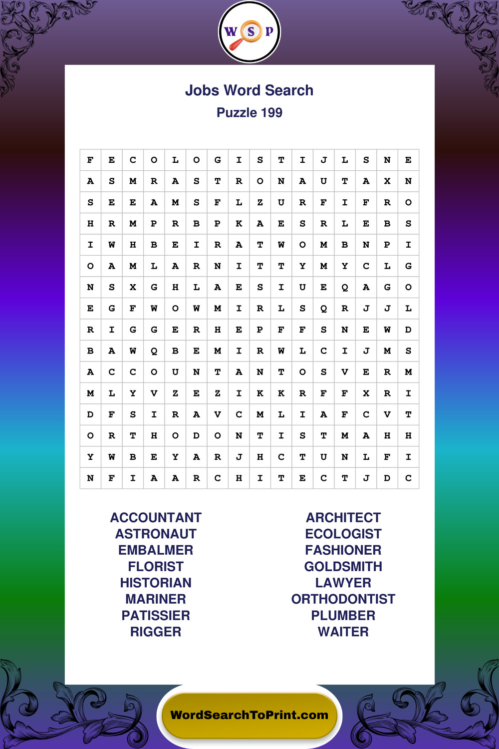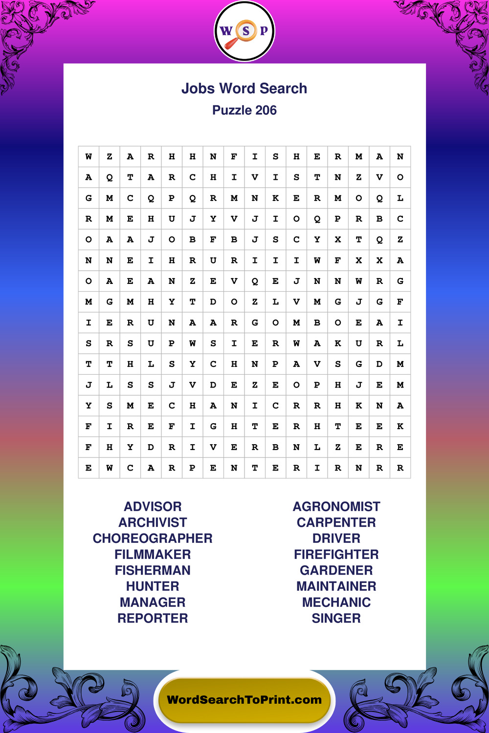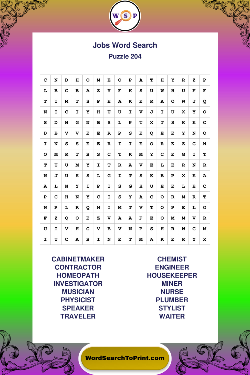 Printable Jobs Wordsearch Puzzles