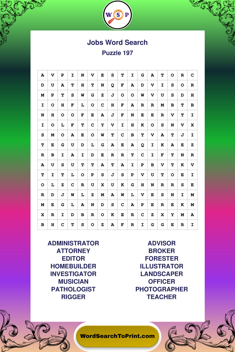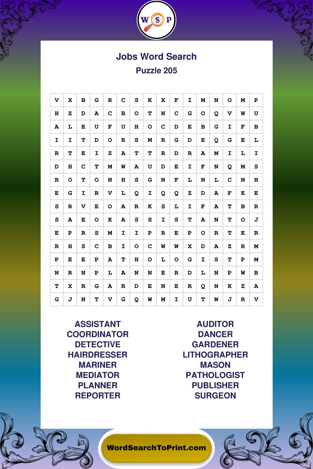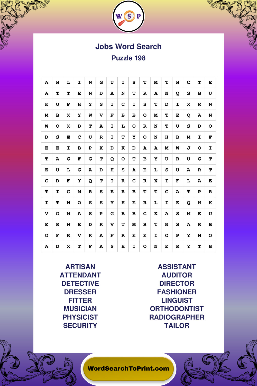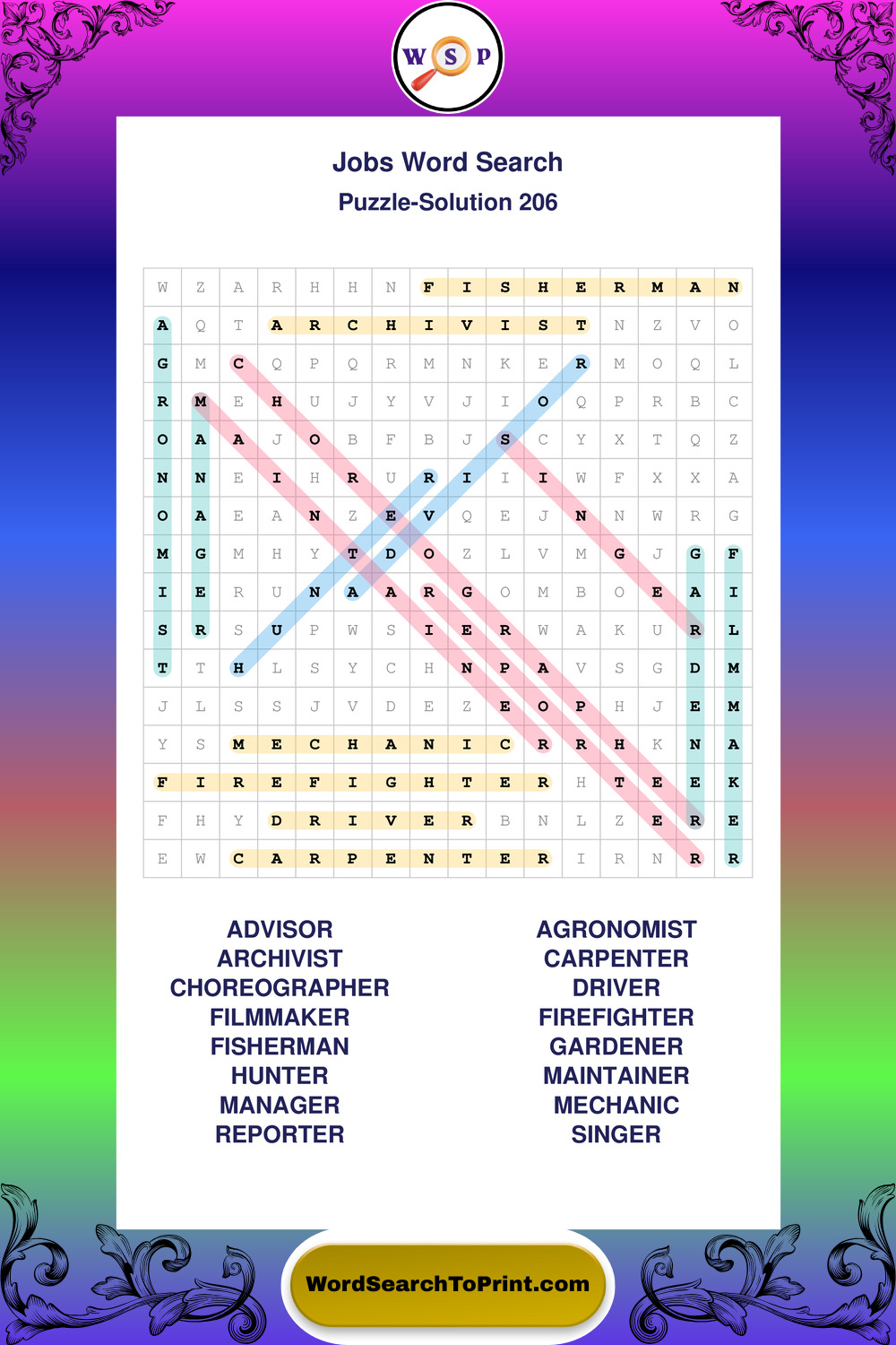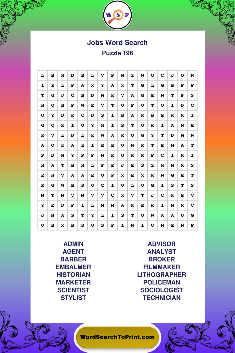 Printable Jobs Wordsearch Puzzles