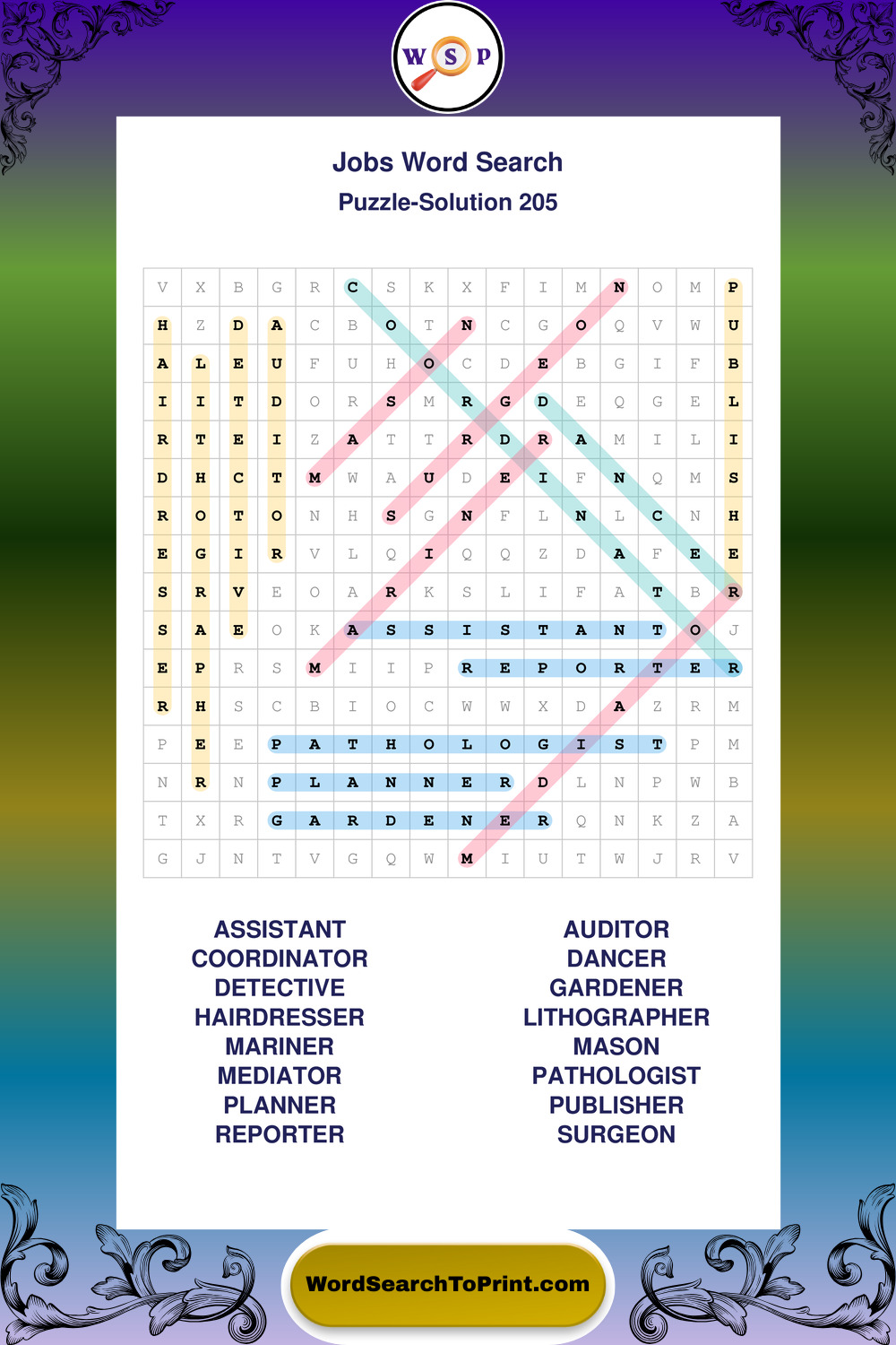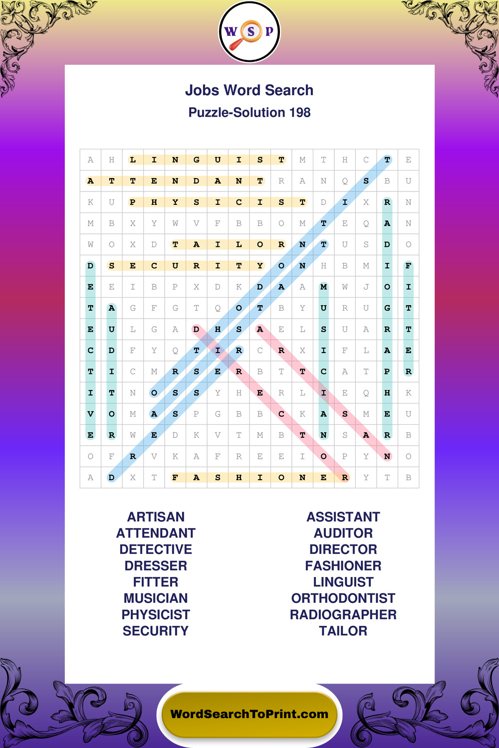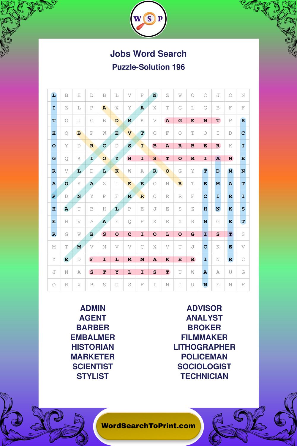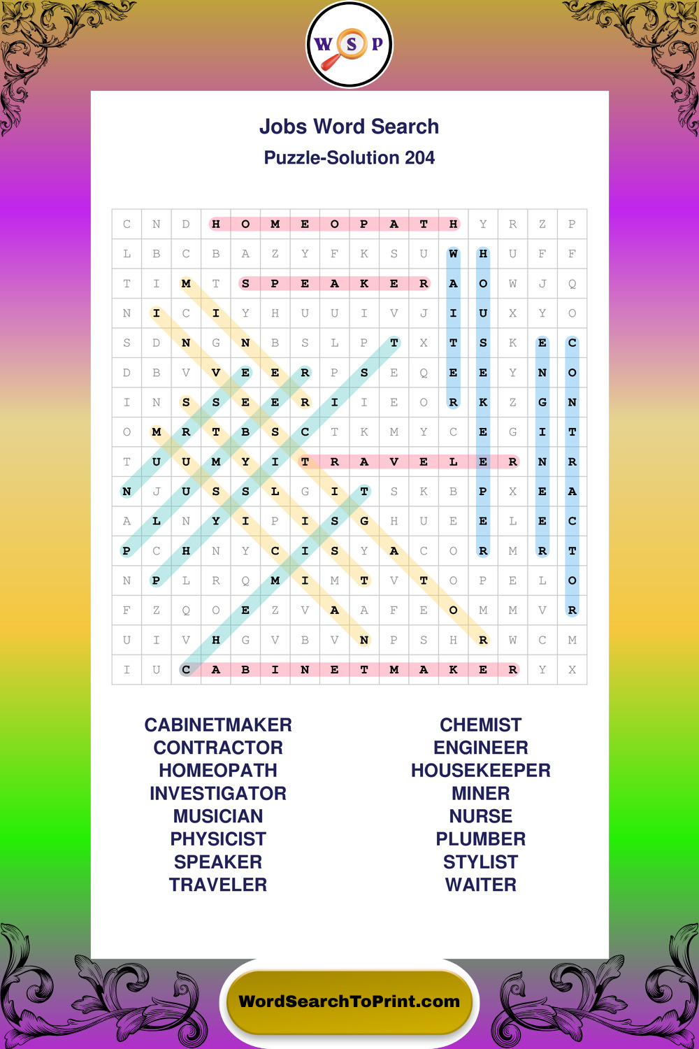 Printable Jobs Wordsearch Puzzles