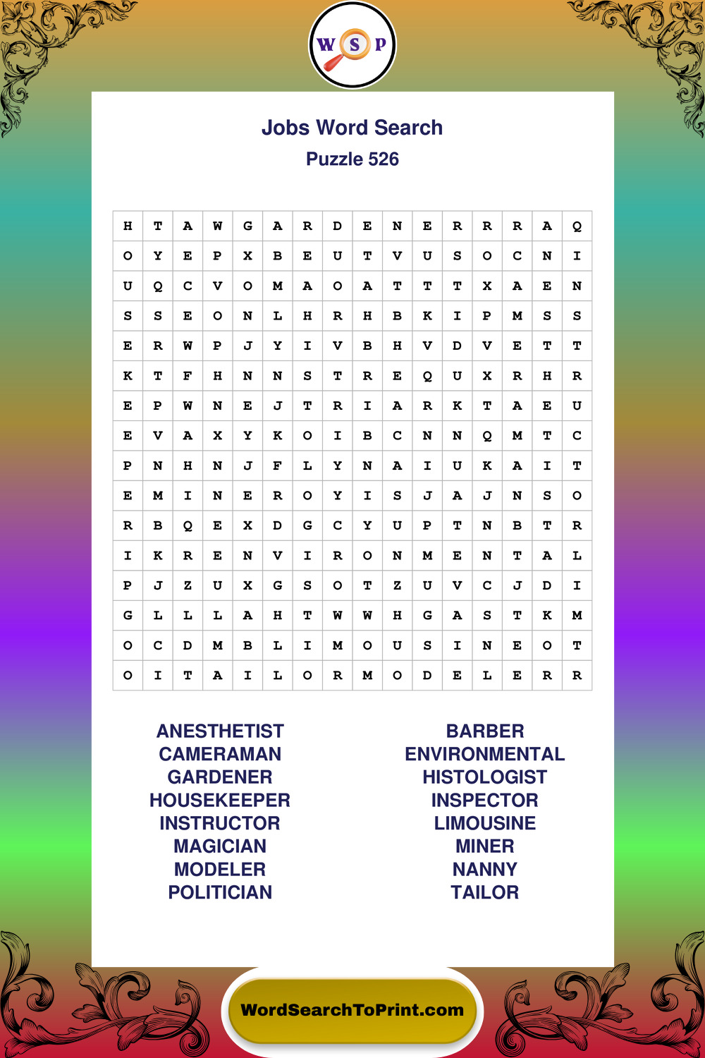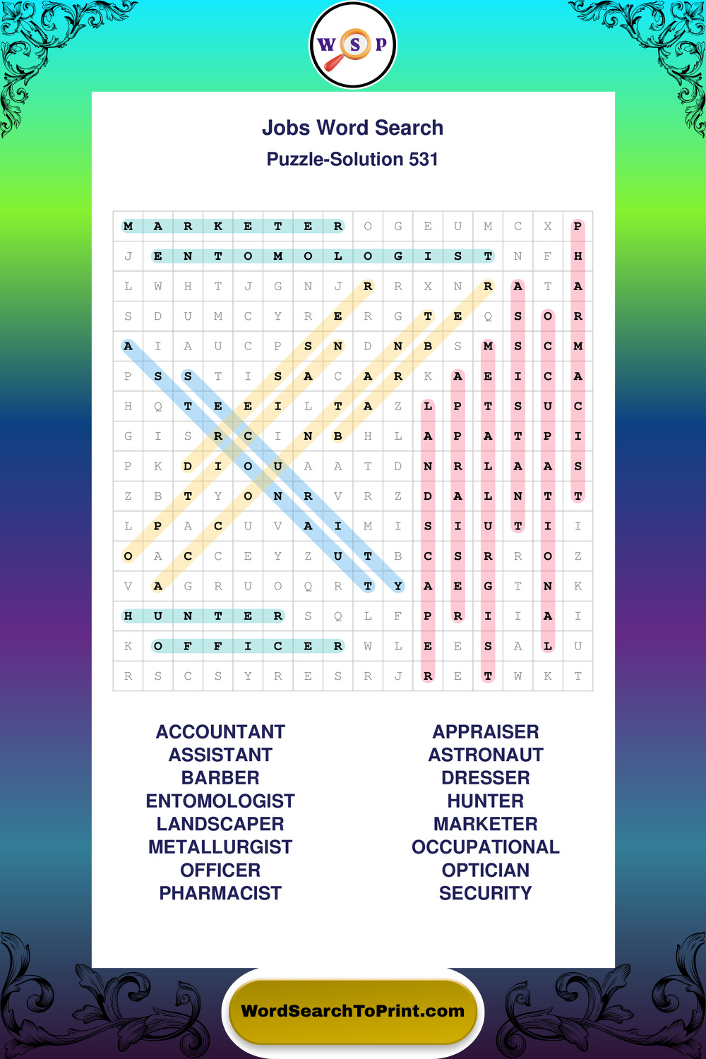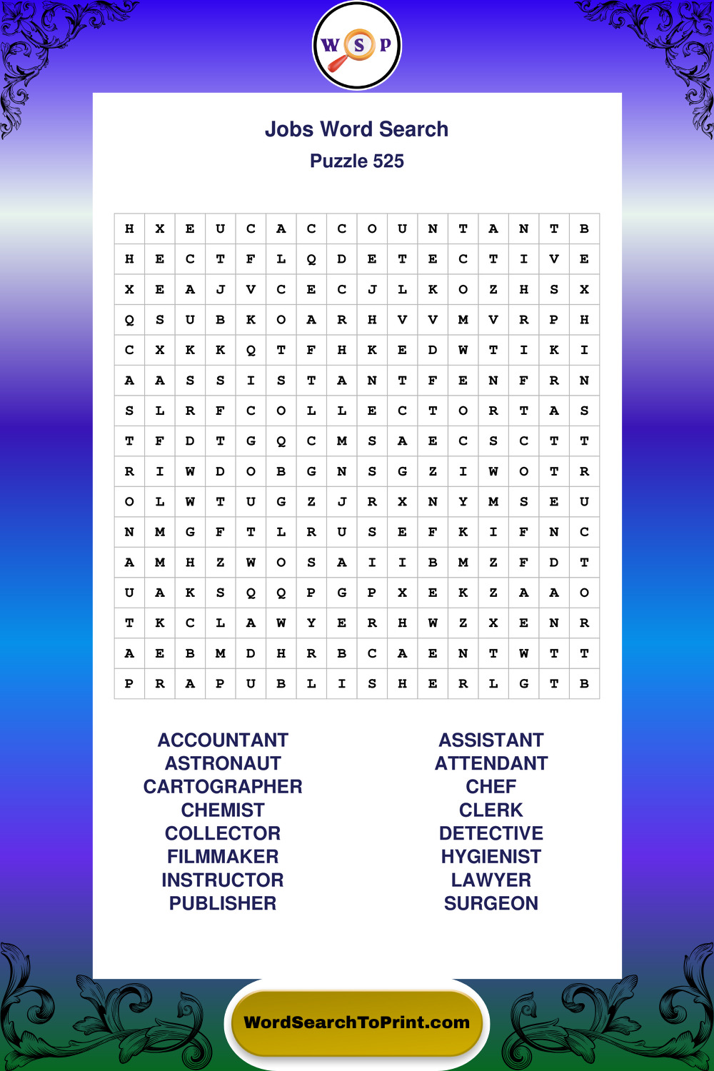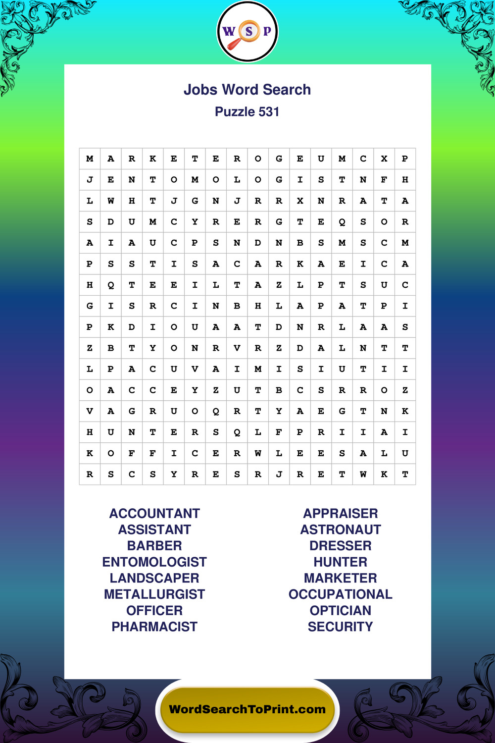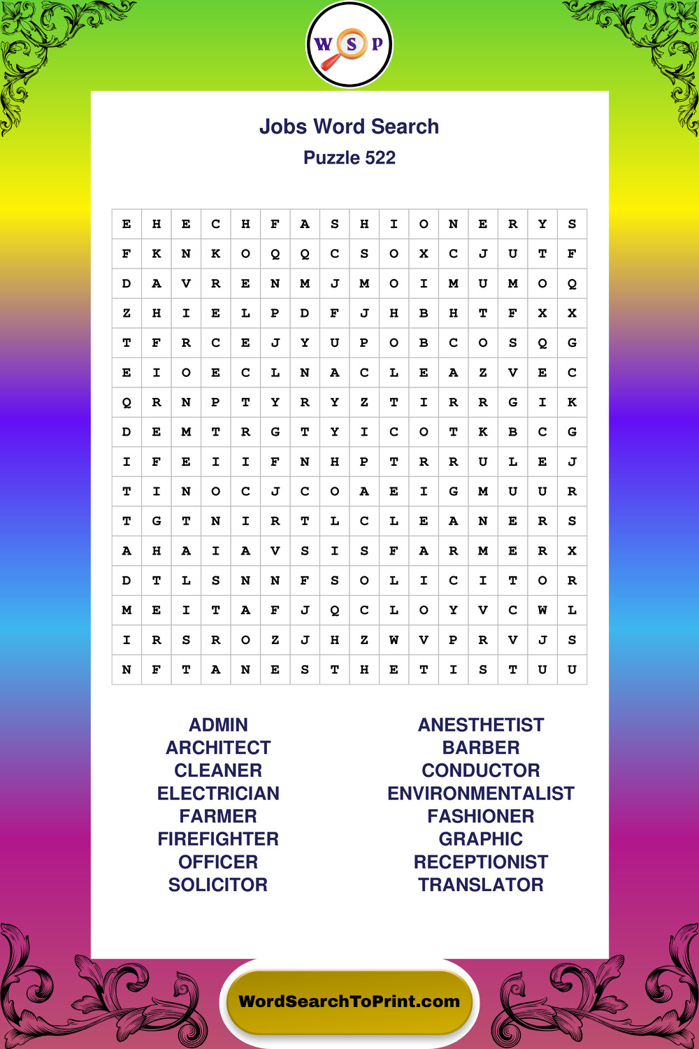 Printable Jobs Wordsearch Puzzles