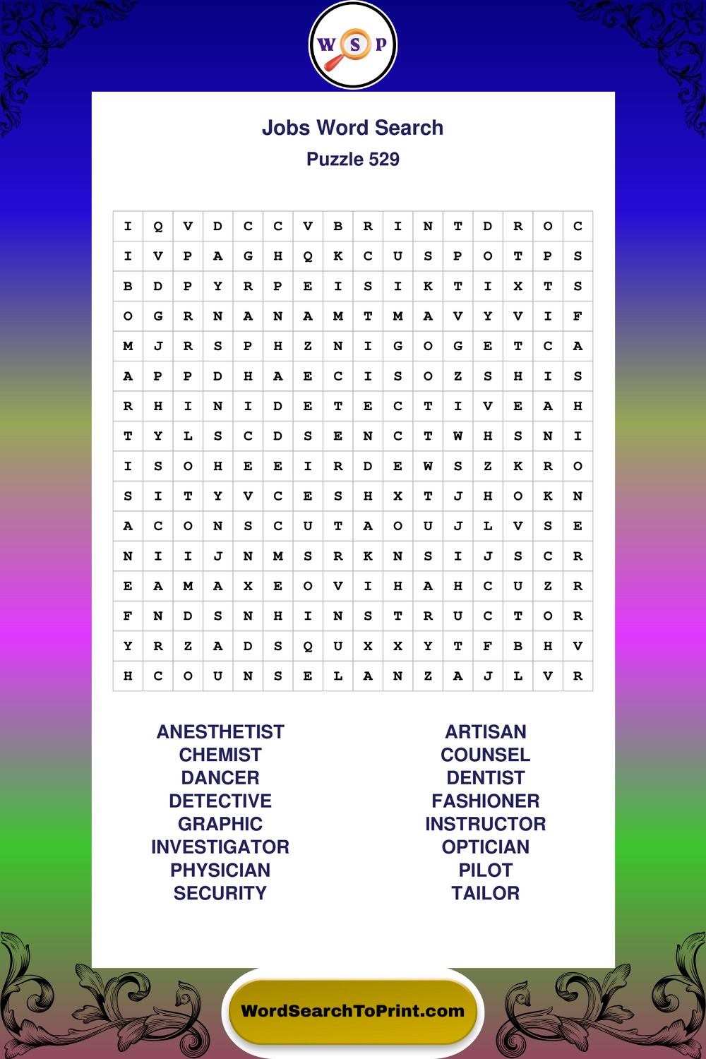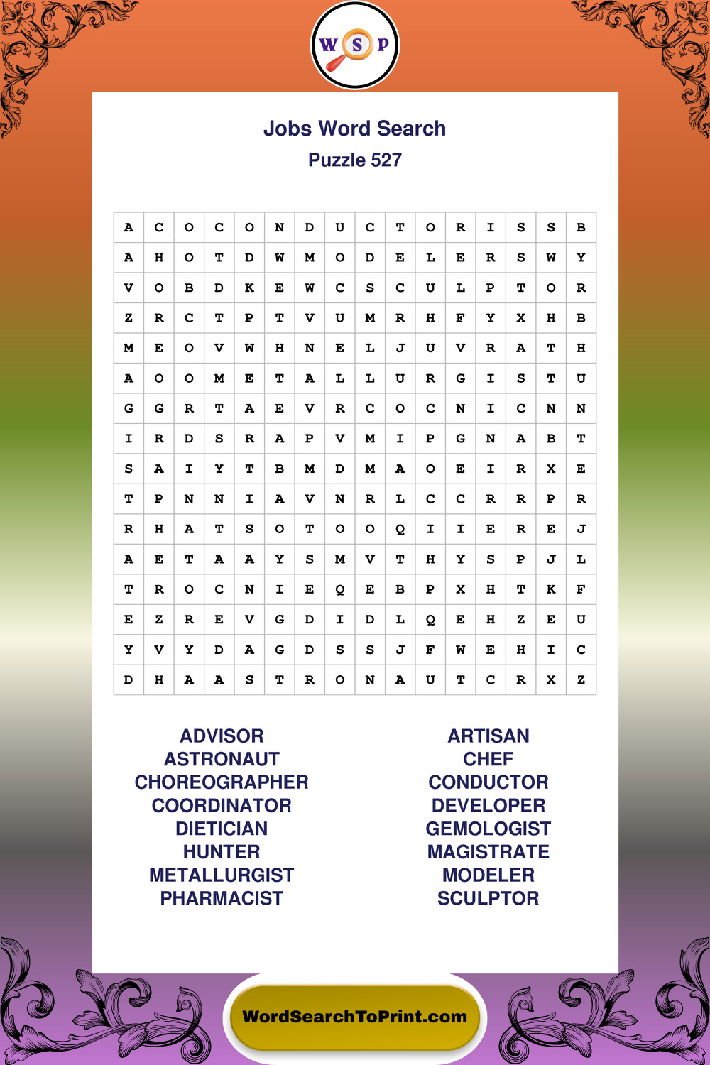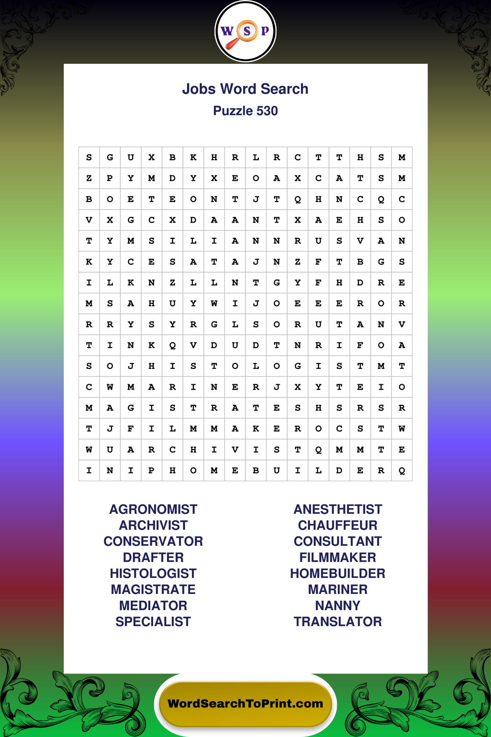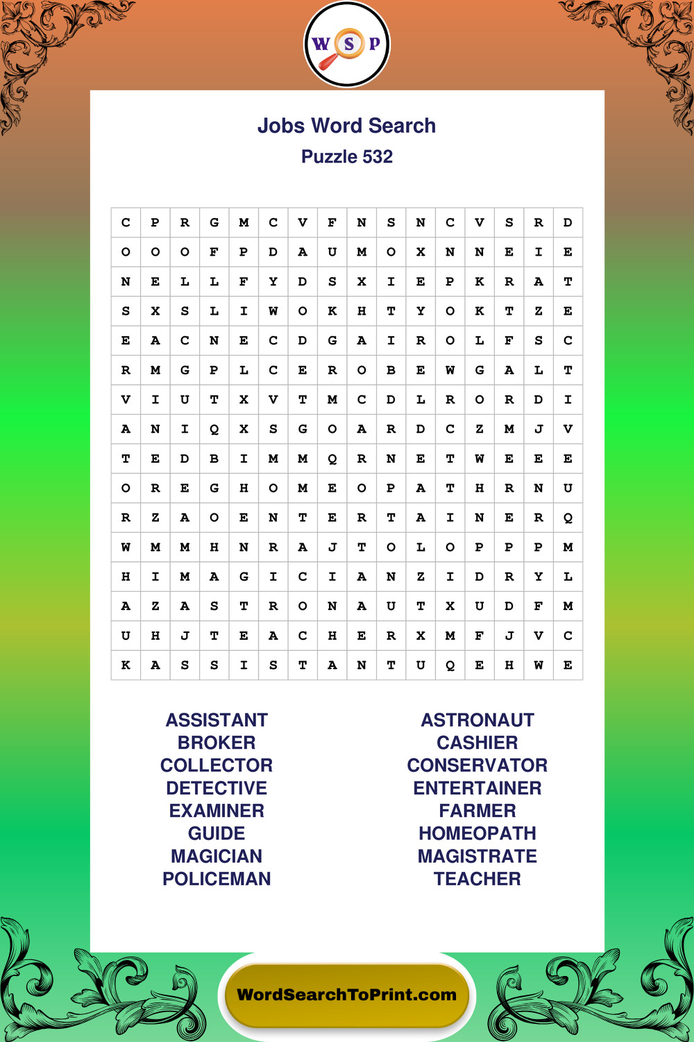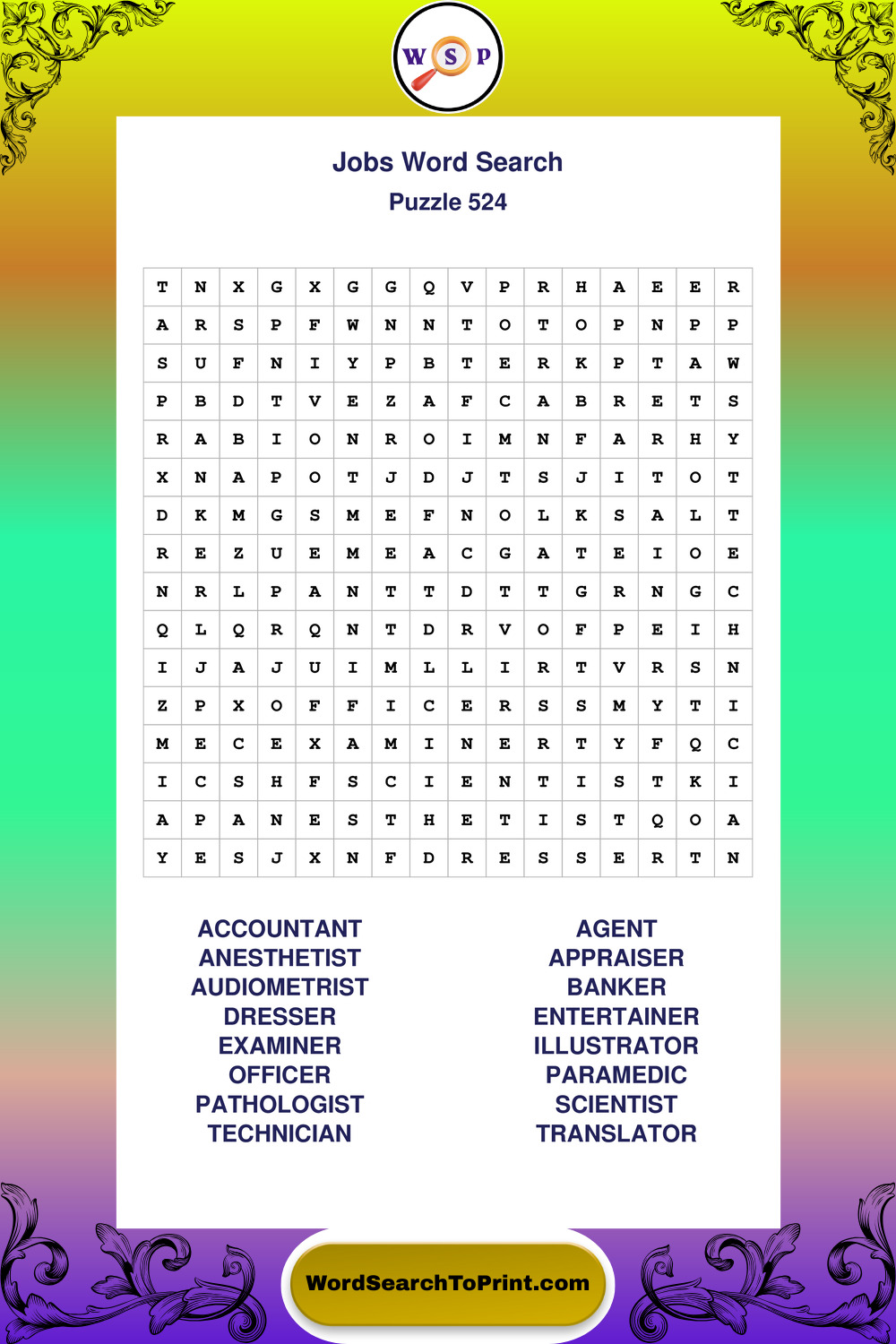 Printable Jobs Wordsearch Puzzles