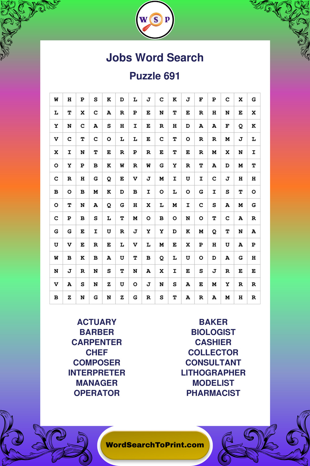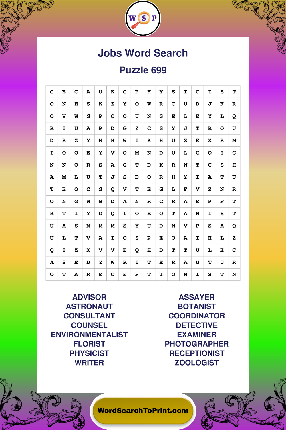 Printable Jobs Wordsearch Puzzles