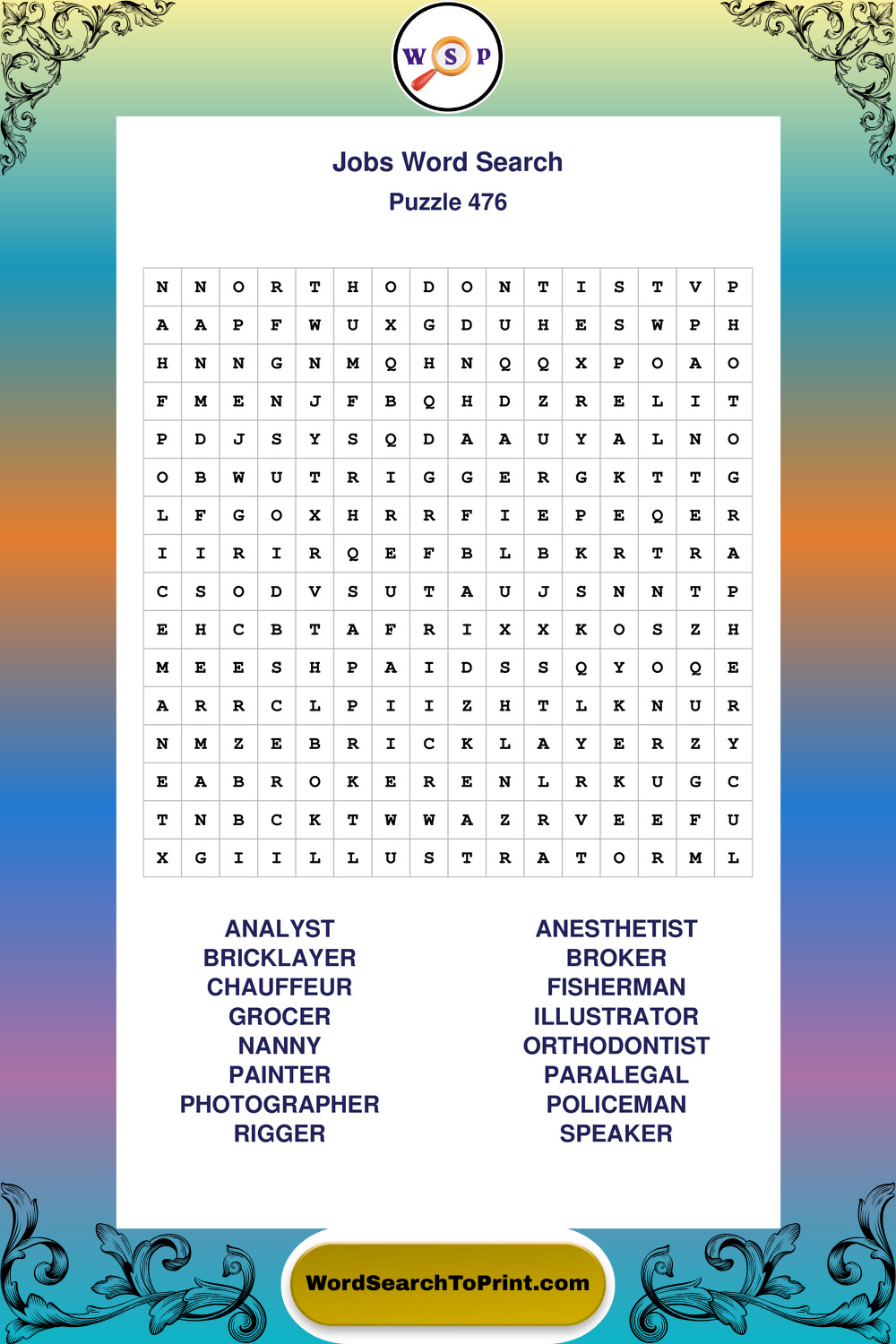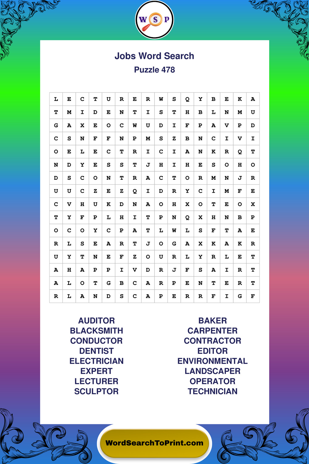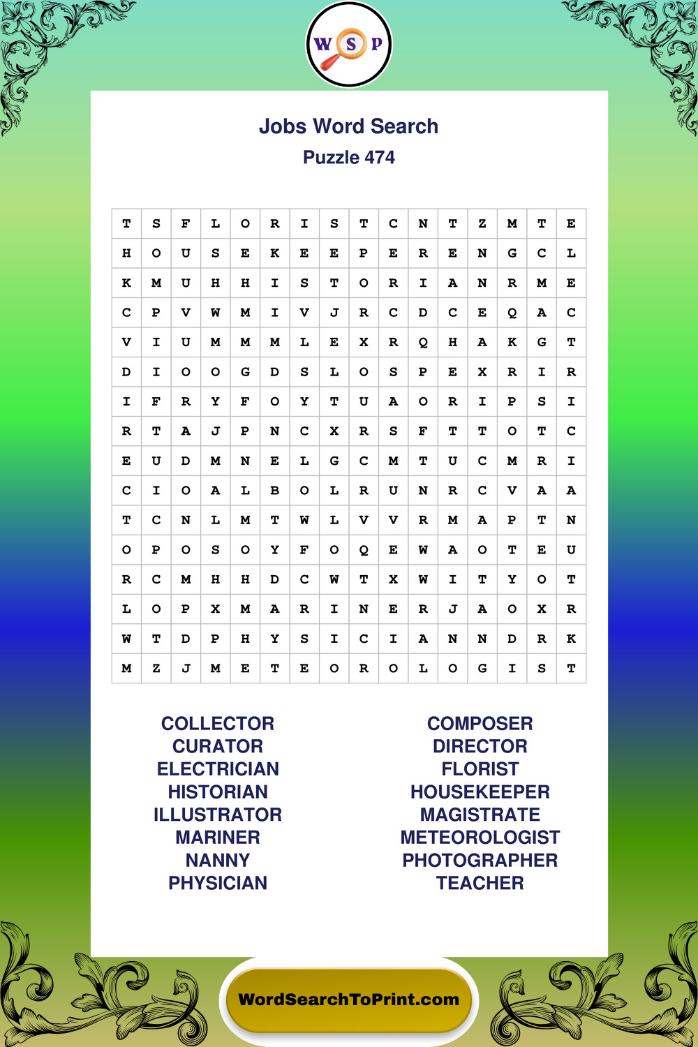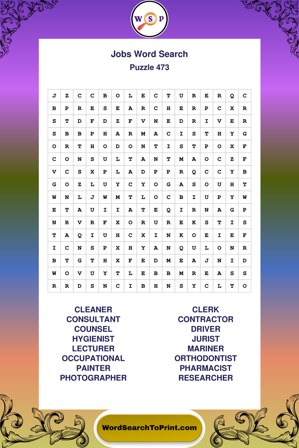 These printable large print Jobs wordsearches offer a calm and accessible puzzle experience for all skill levels.