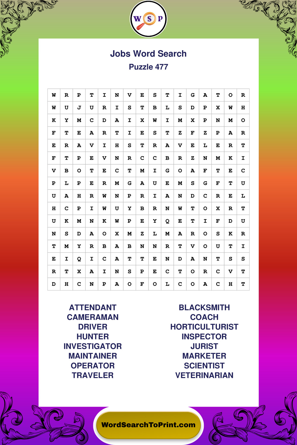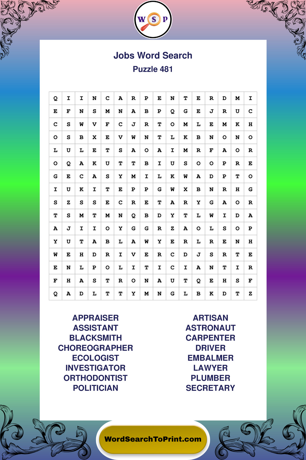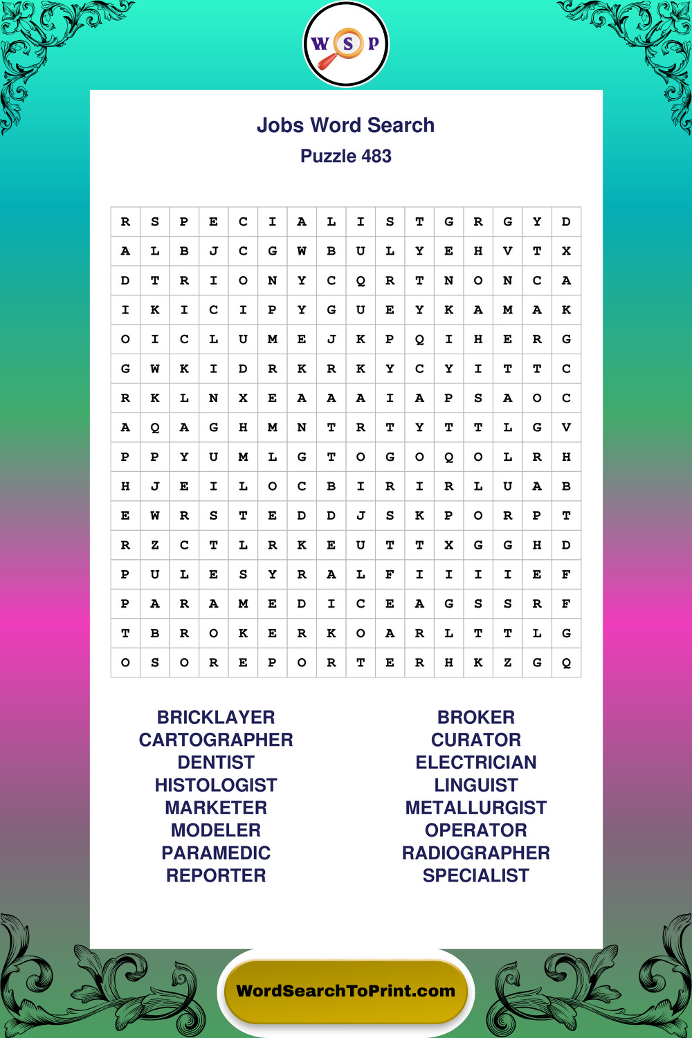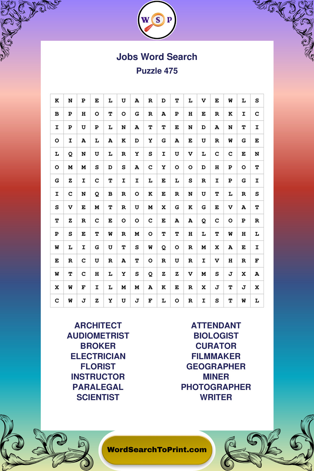 These printable large print Jobs wordsearches offer a calm and accessible puzzle experience for all skill levels.