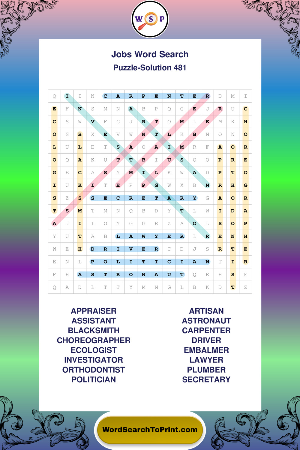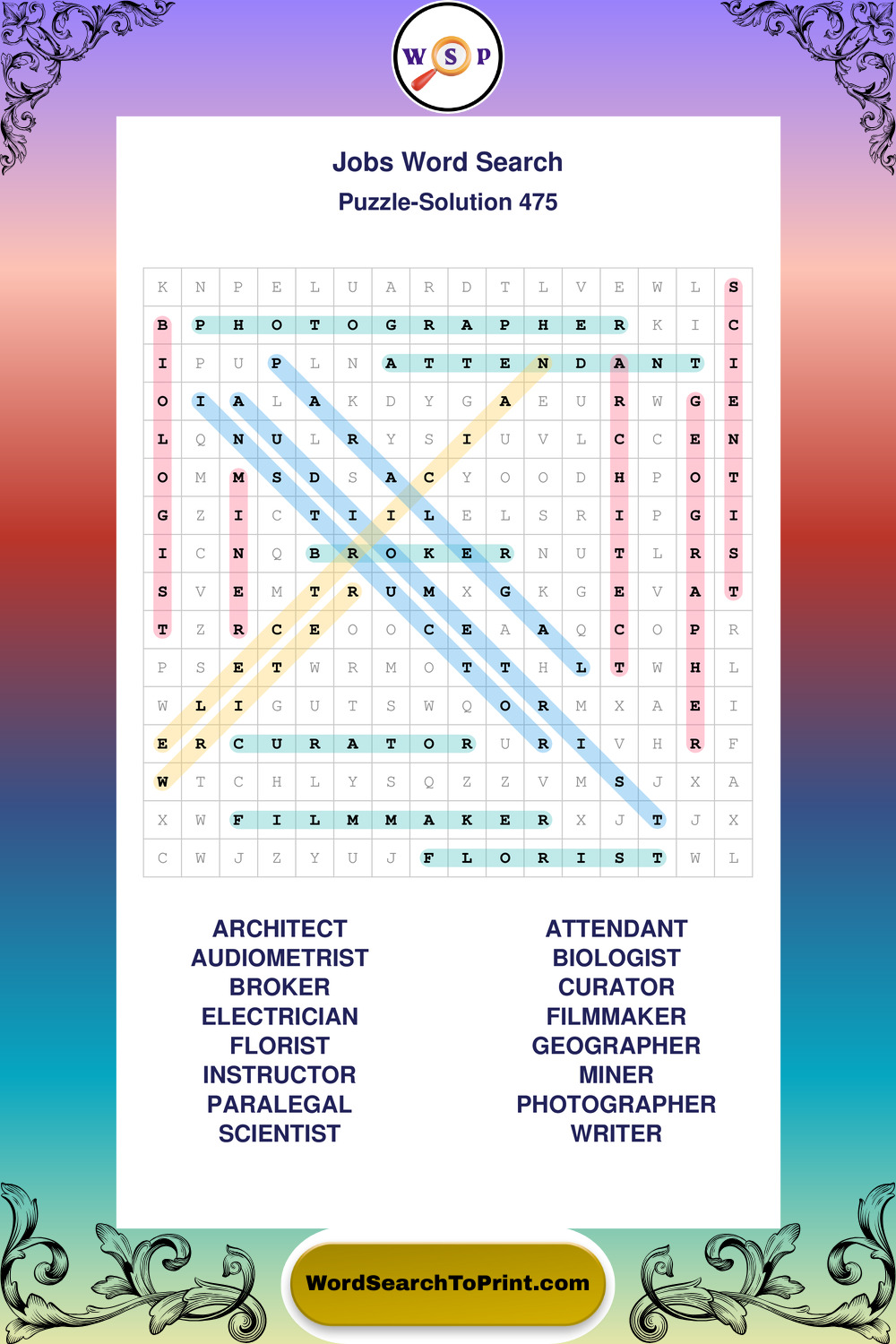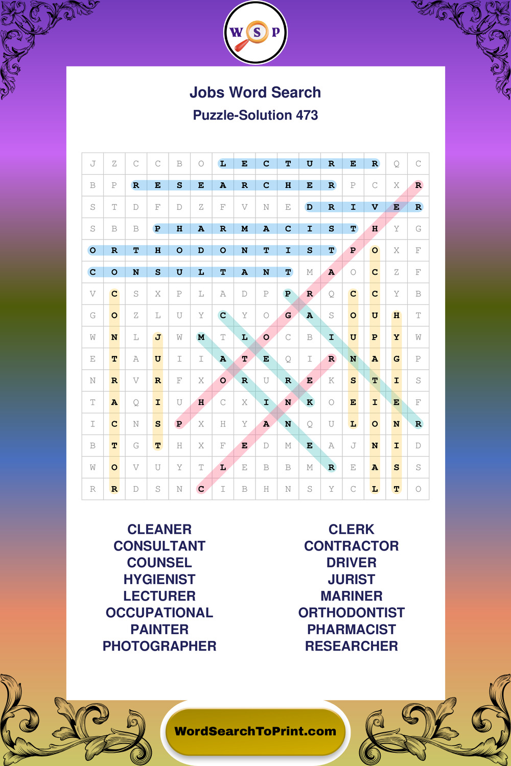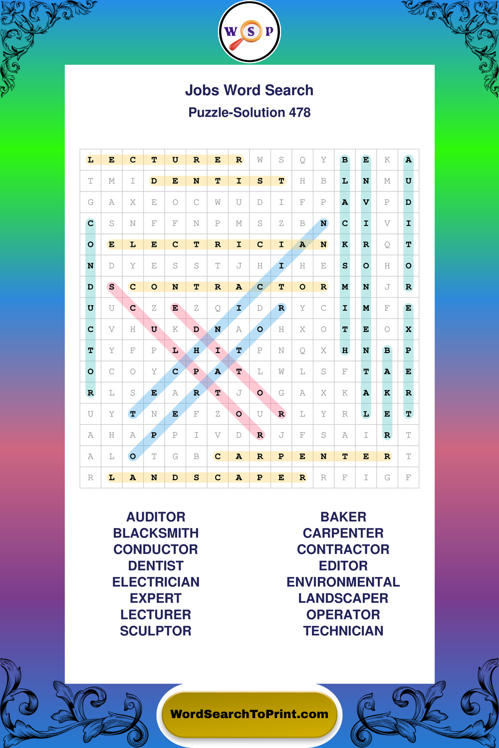 These printable large print Jobs wordsearches offer a calm and accessible puzzle experience for all skill levels.