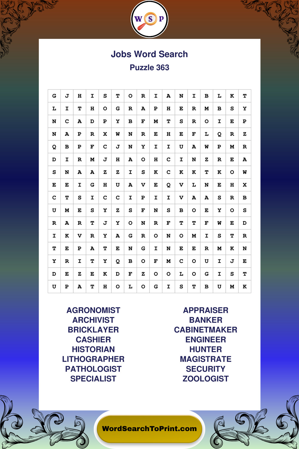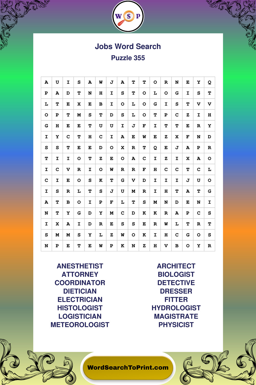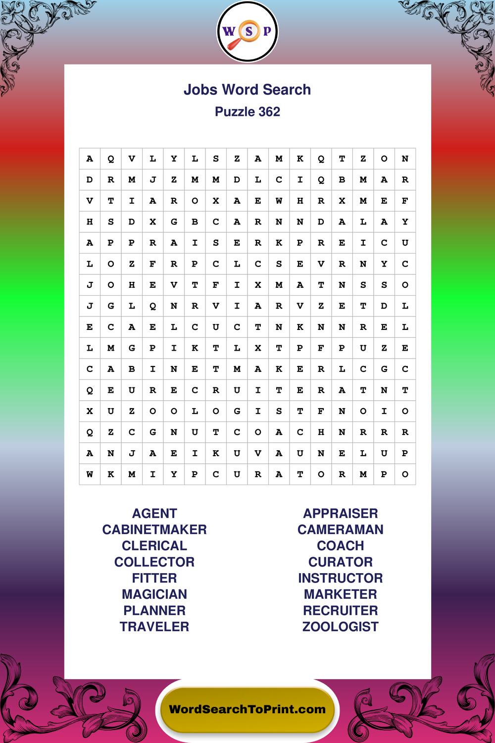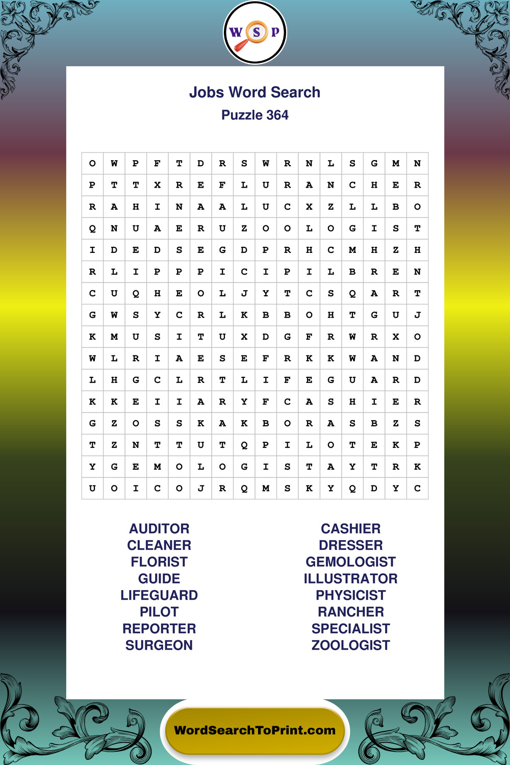 Printable Jobs Wordsearch Puzzles