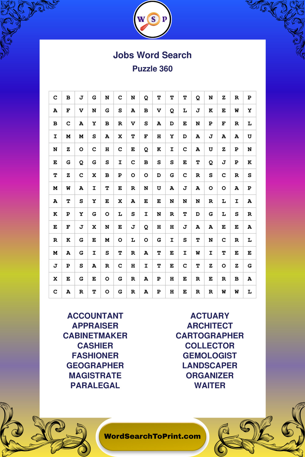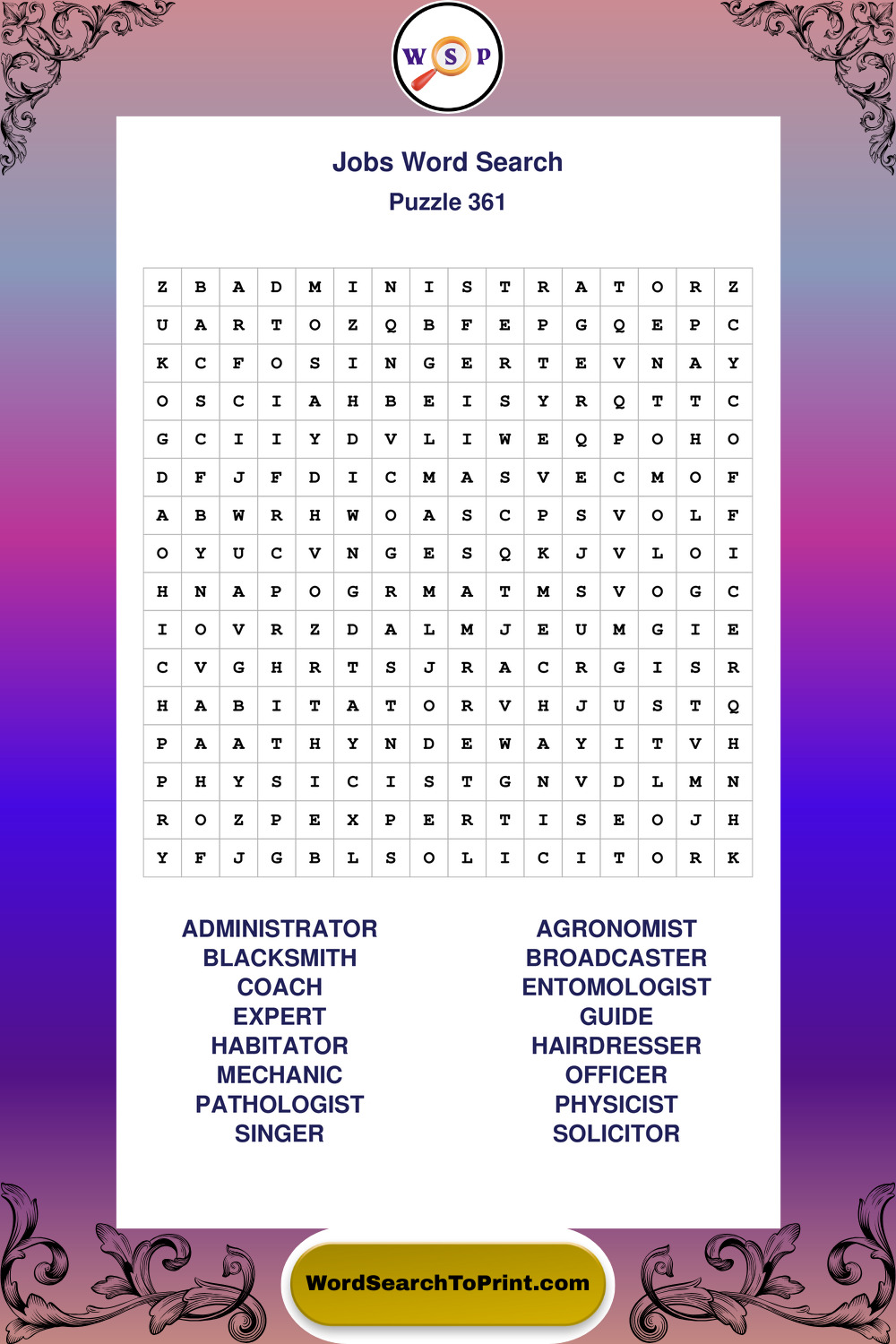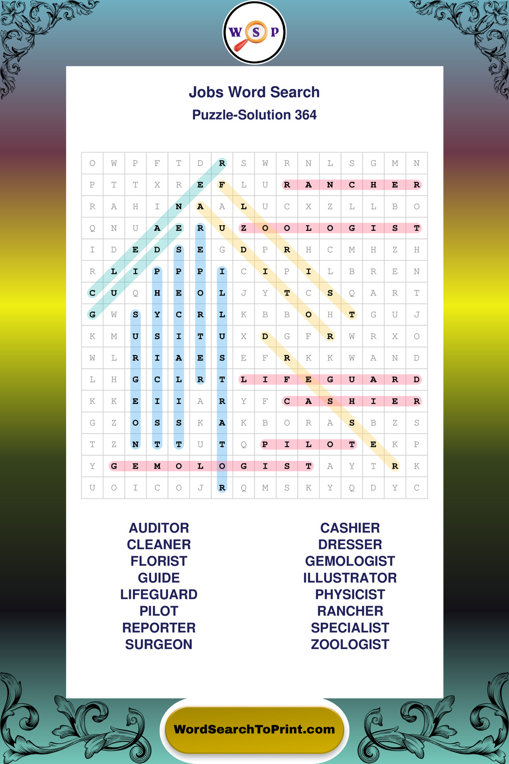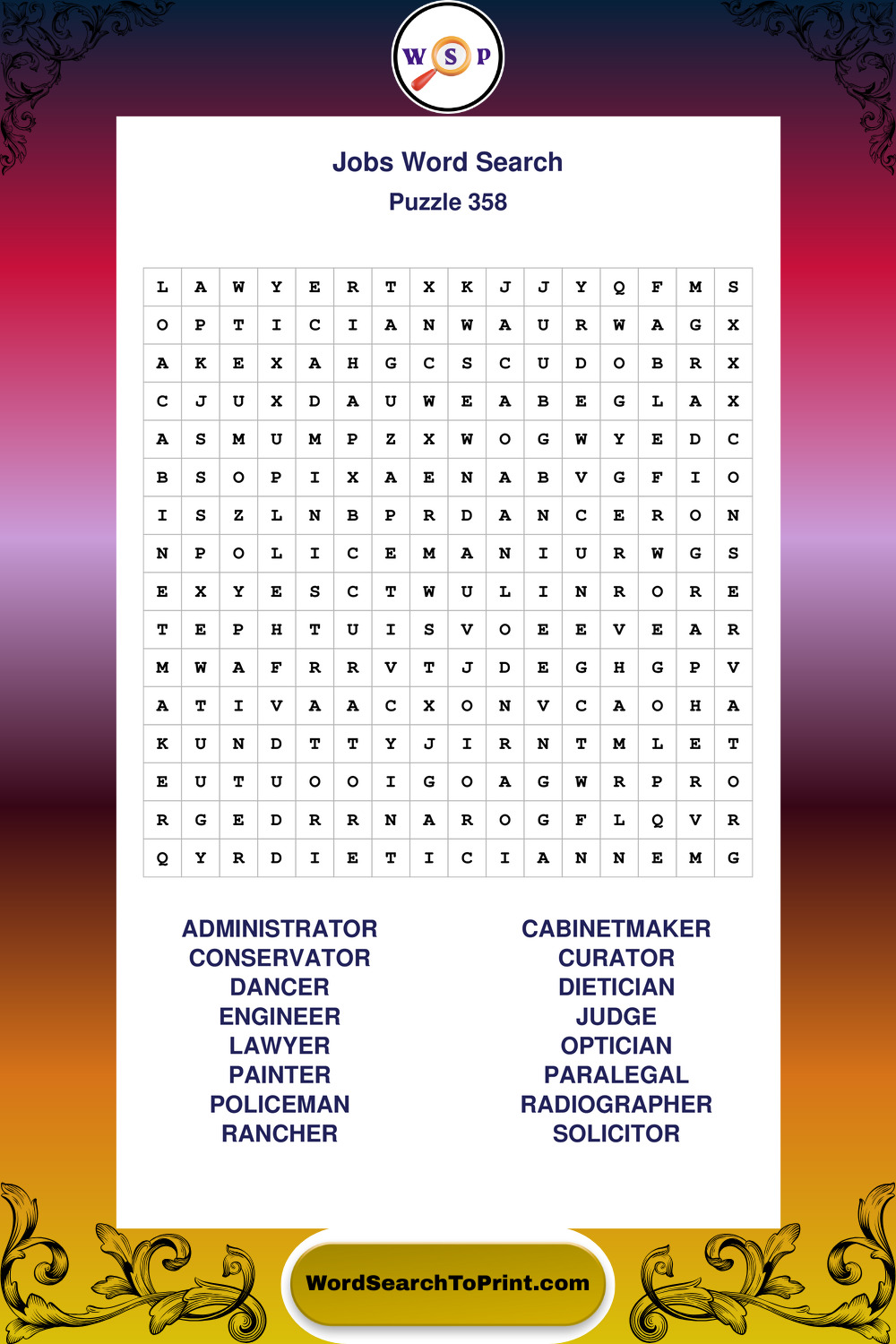Printable Jobs Wordsearch Puzzles