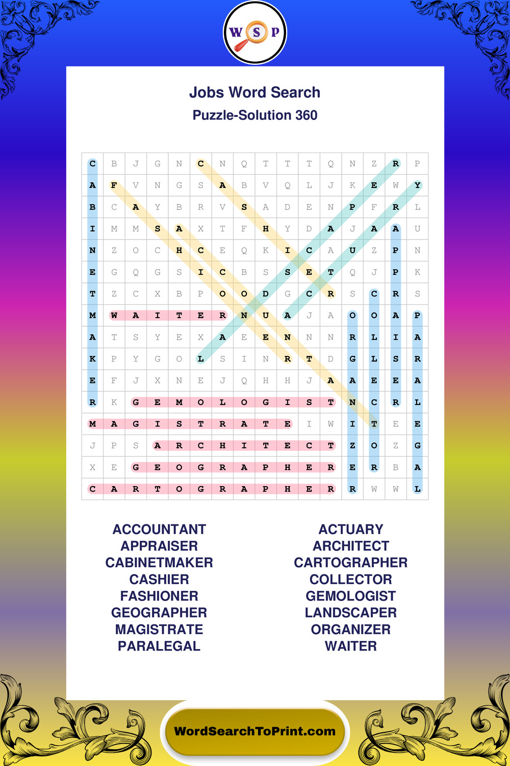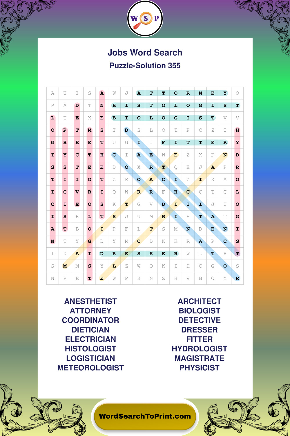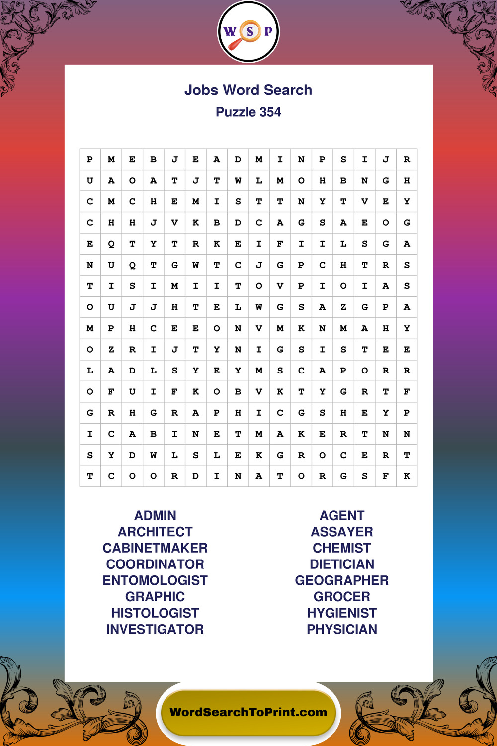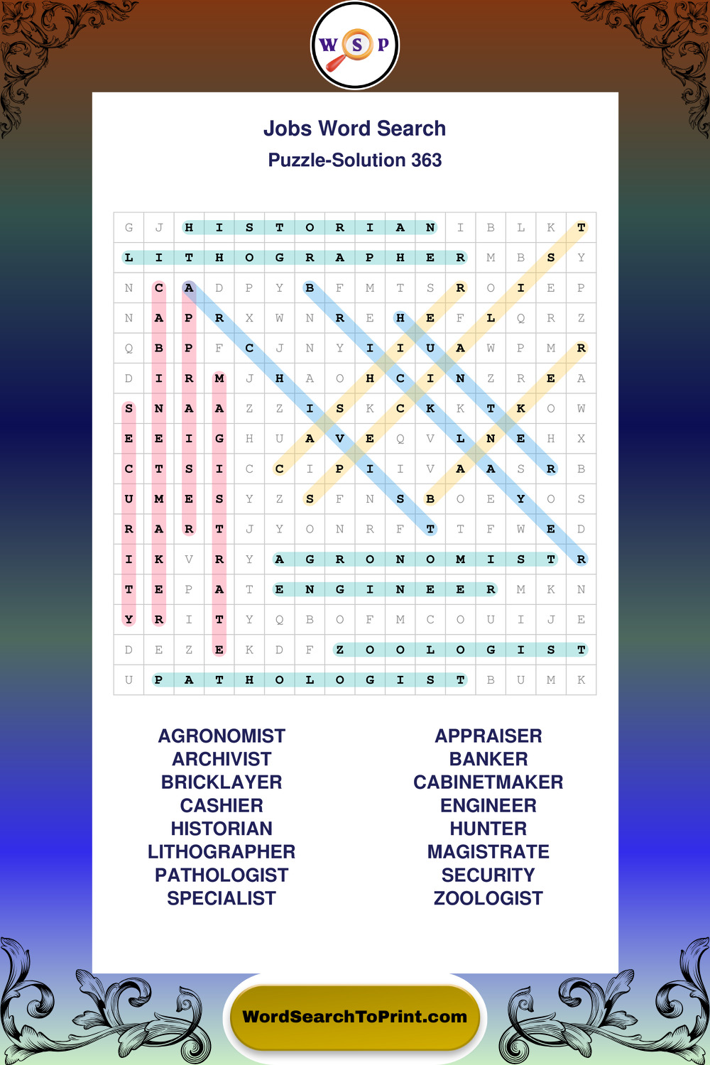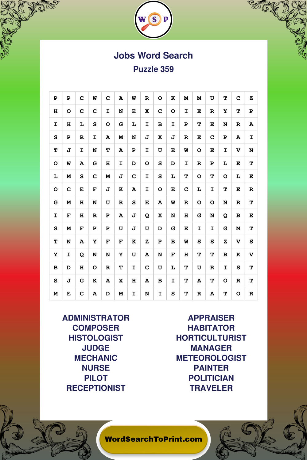 Printable Jobs Wordsearch Puzzles