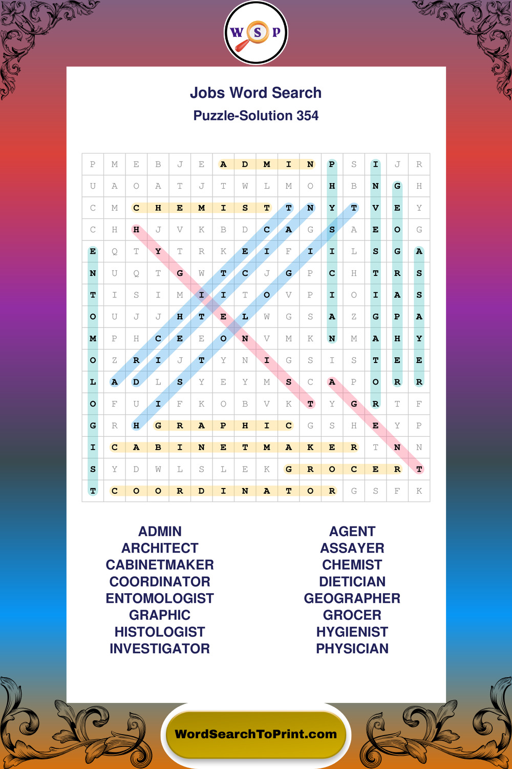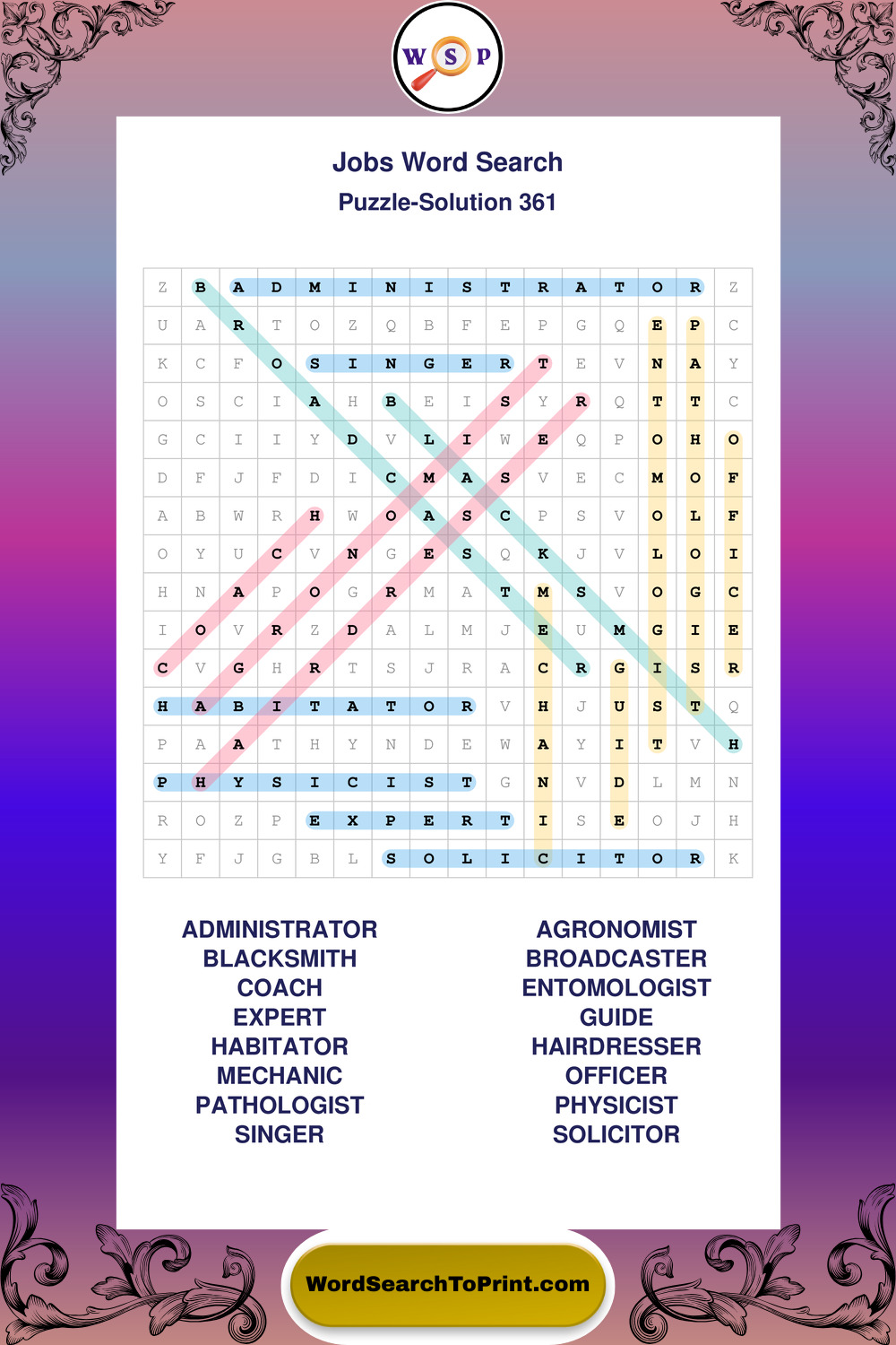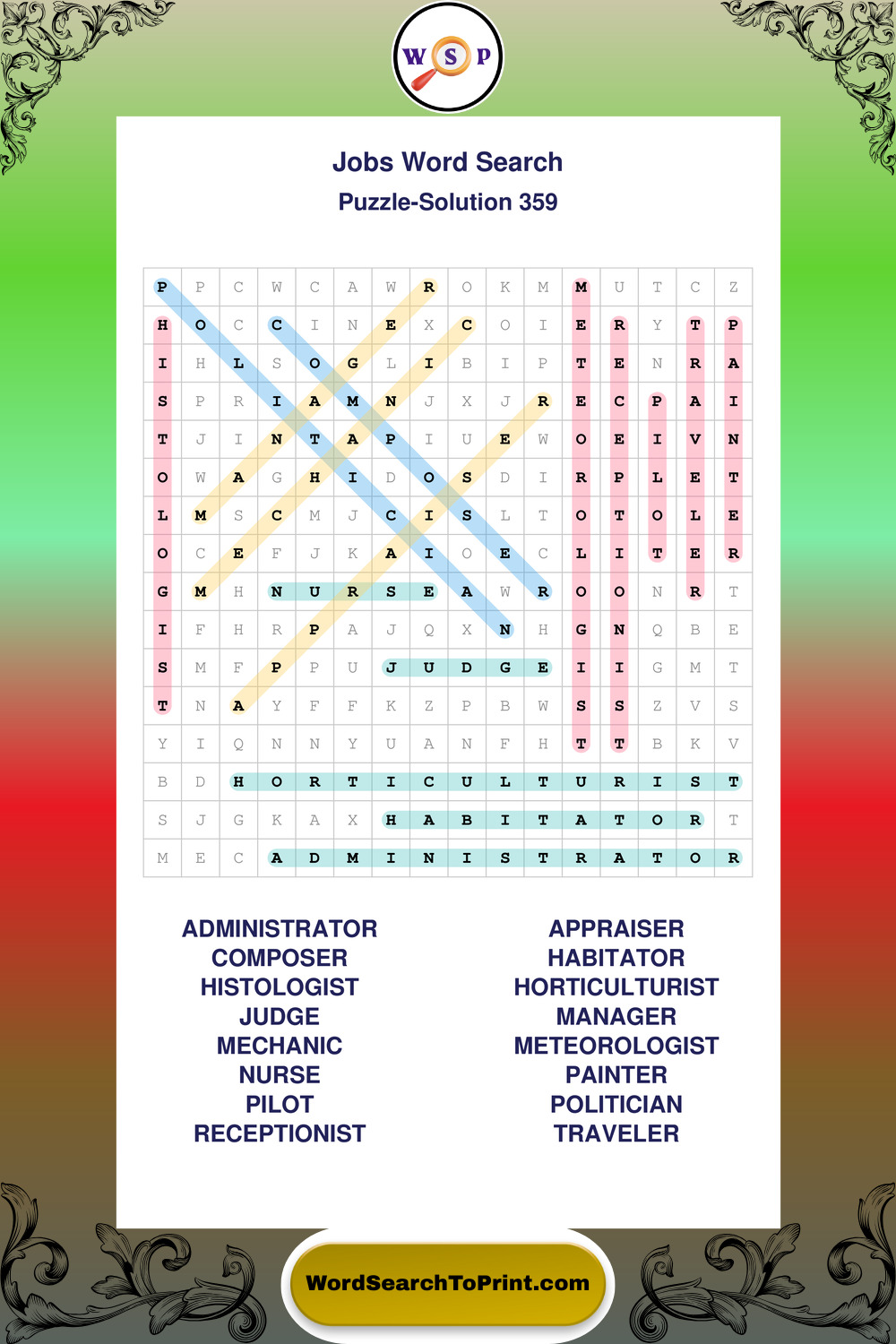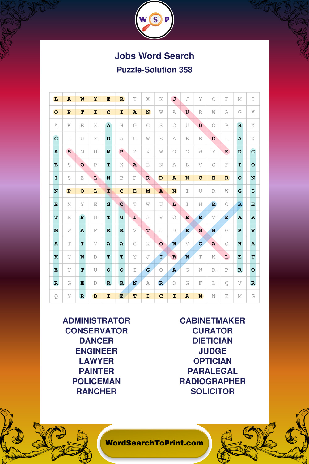 Printable Jobs Wordsearch Puzzles